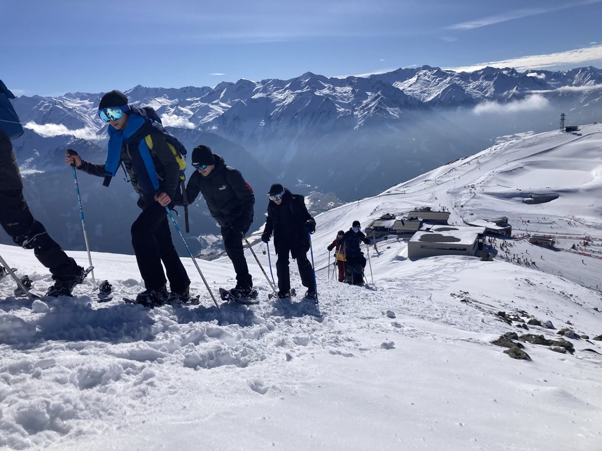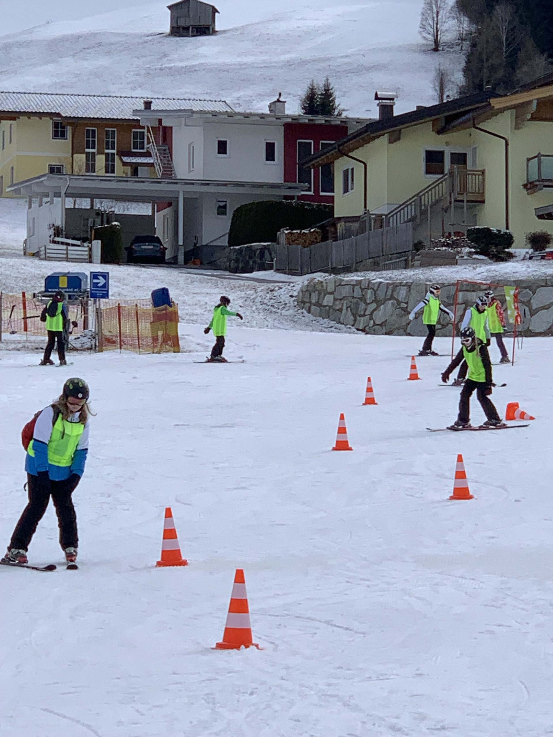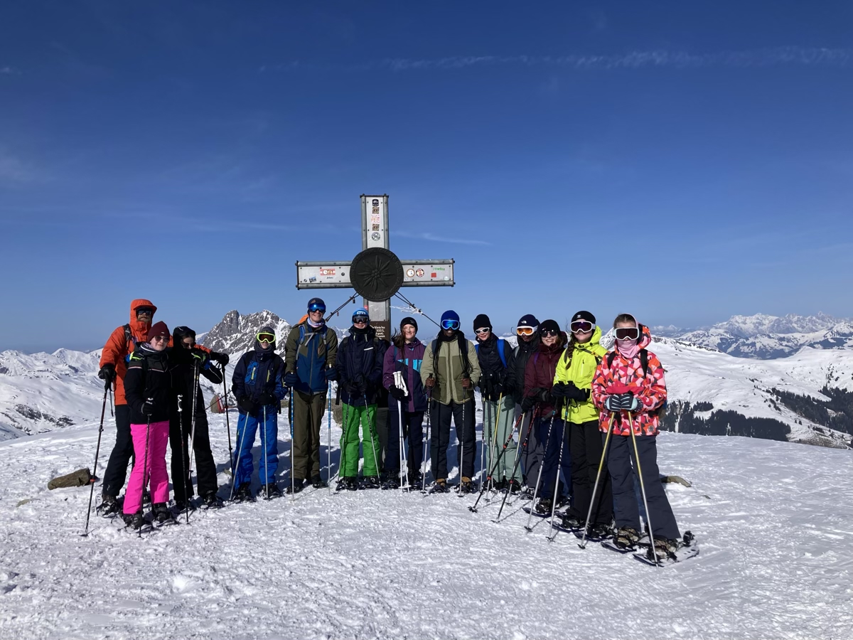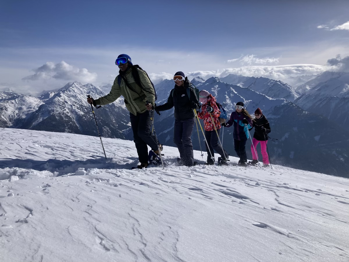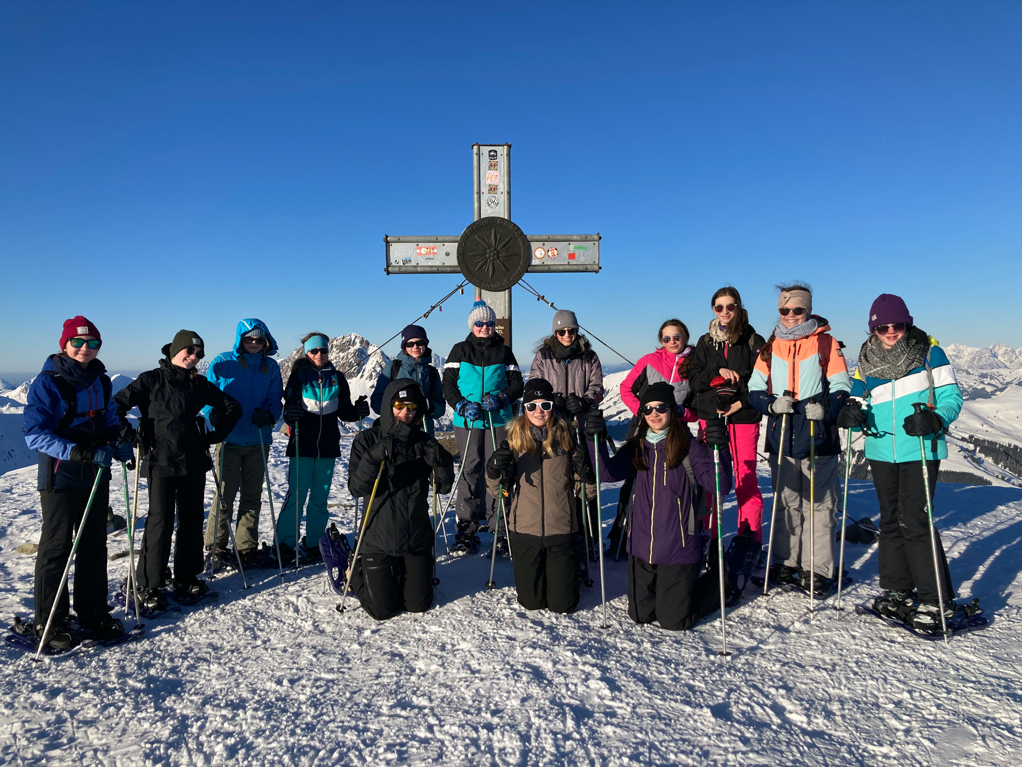 Ob “Pizza – Pommes” oder “hoch, tief – Stockeinsatz” bis hin zu “Kante – drücken”, die Rufe der ESS Skilehrer*innen klangen 5 Tage durch den Kessel der Wildkogel Arena und ihre Schüler*innen versuchten es in Form von Schneepflug, Kurven mit Umsteigen, Kurzschwüngen oder langen Carvingbahnen in den Schnee zu zaubern. Durch aus mit Erfolg, denn irgendwie haben sich alle weiterentwickelt und konnten gewissen sportliche Grenzbereiche neu ausloten. Als Bonus gab es für die Gipfelstürmer*innen noch die Möglichkeit, an zwei Tagen mit Schneeschuhen den Wildkogel zu besteigen und sich im Gipfelbuch des Hausberges zu verewigen.