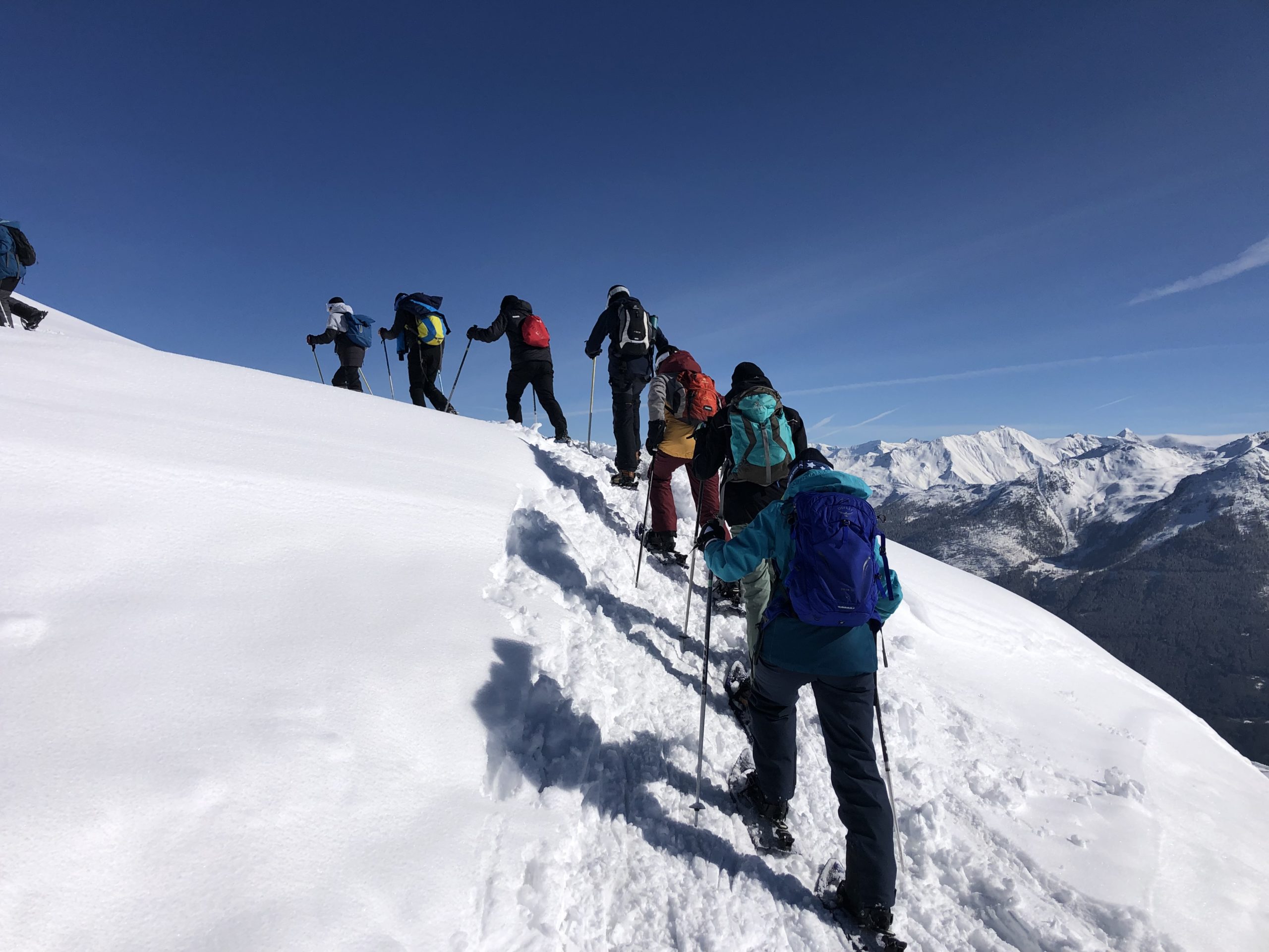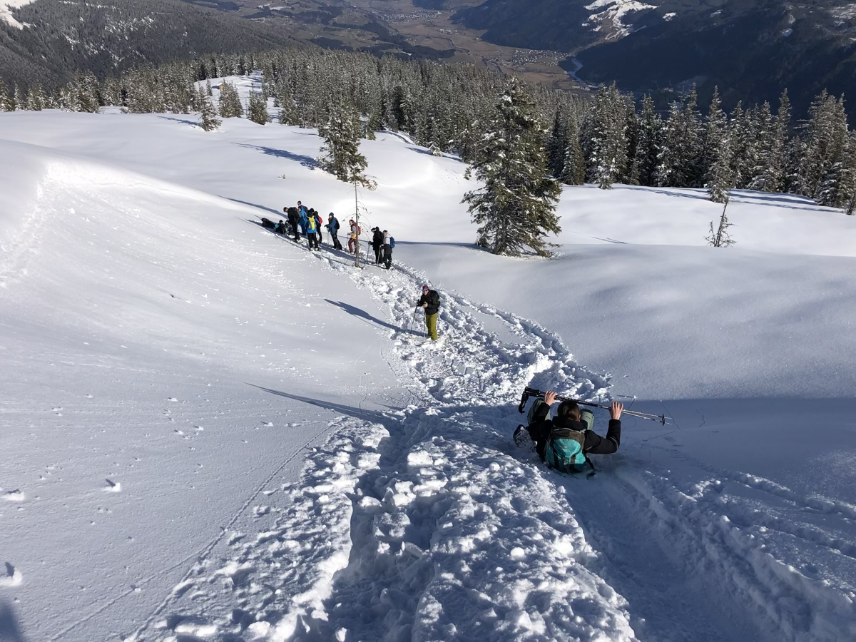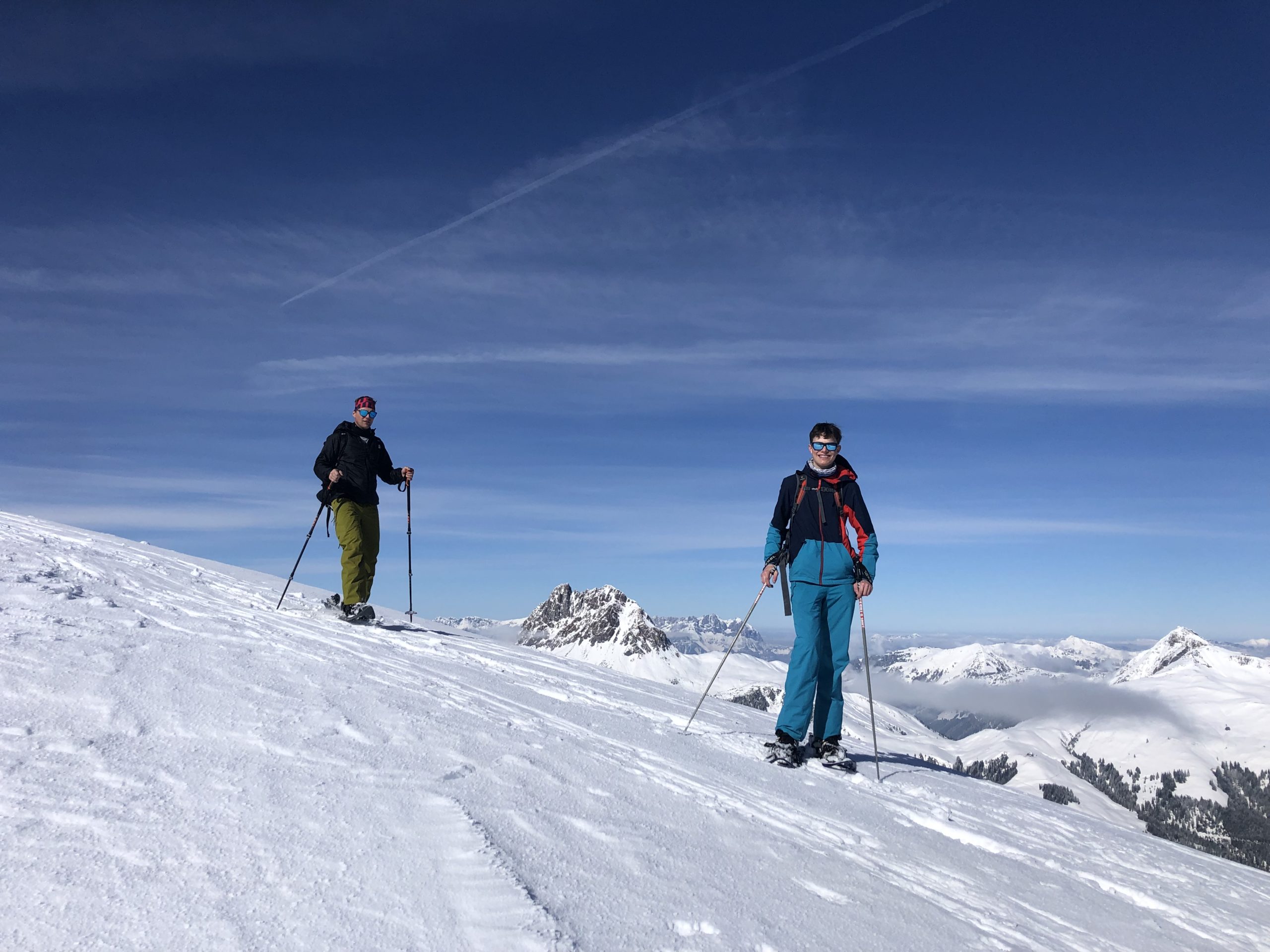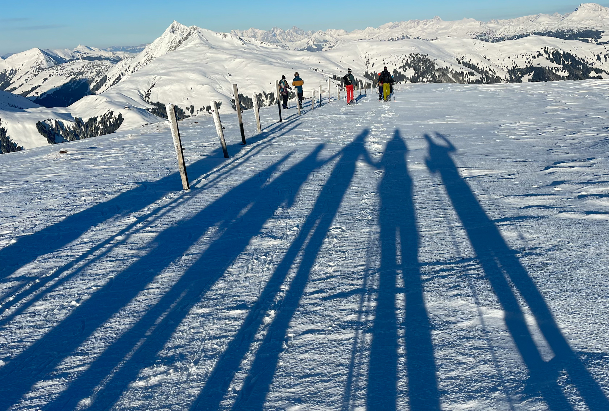 Ob “Pizza – Pommes” oder “hoch, tief – Stockeinsatz” bis hin zu “Kante – drücken”, die Rufe der ESS Skilehrer*innen klangen 5 Tage durch den Kessel der Wildkogel Arena und ihre Schüler*innen versuchten es in Form von Schneepflug, Kurven mit Umsteigen, Kurzschwüngen oder langen Carvingbahnen in den Schnee zu zaubern. Durch aus mit Erfolg, denn irgendwie haben sich alle weiterentwickelt und konnten gewissen sportliche Grenzbereiche neu ausloten. Als Bonus gab es für die Gipfelstürmer*innen noch die Möglichkeit, an zwei Tagen mit Schneeschuhen den Wildkogel zu besteigen und sich im Gipfelbuch des Hausberges zu verewigen.
