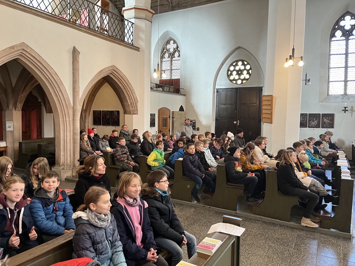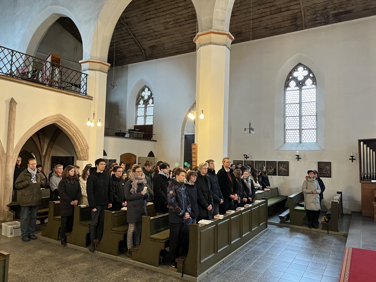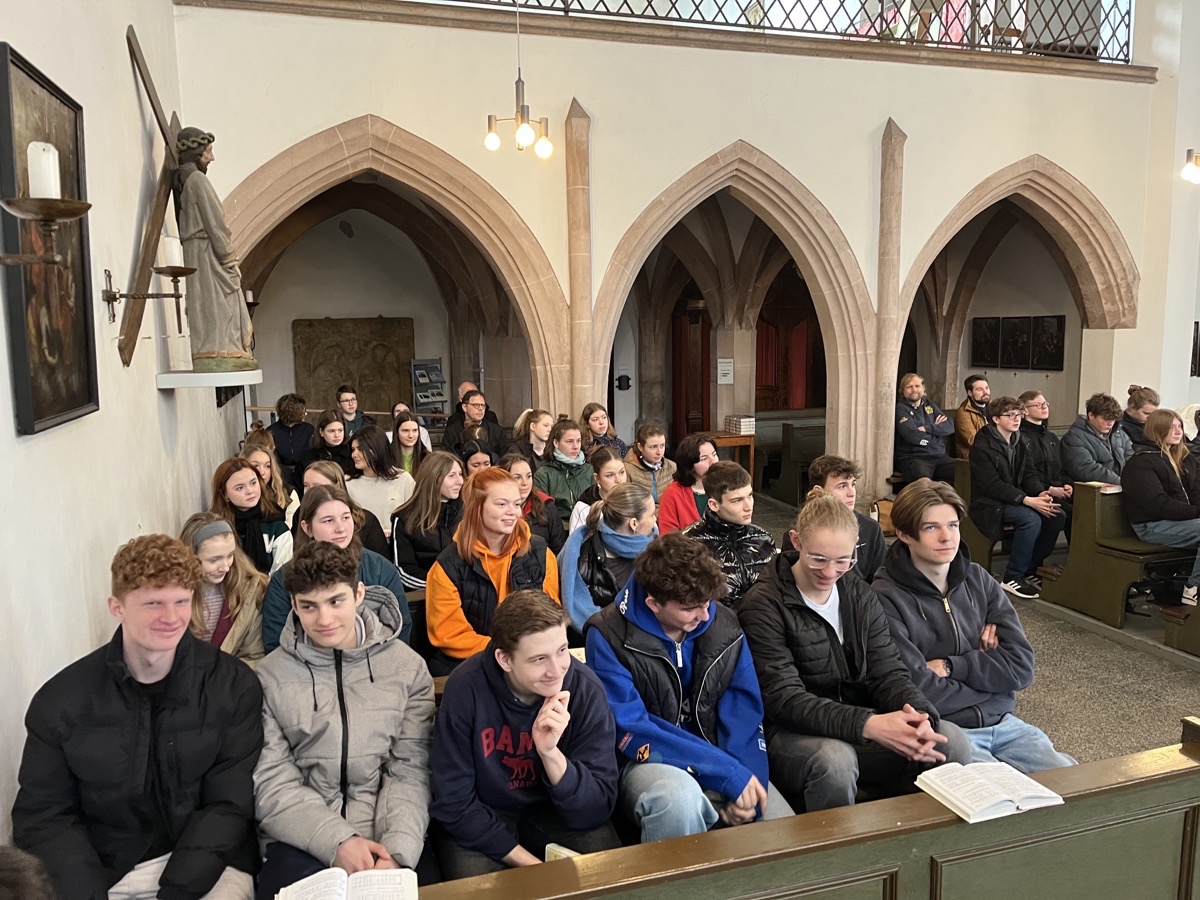 Die 40 Tage vor Ostern sind für Christen nicht nur eine individuelle Zeit des Verzichts und Reflektierens des Glaubens in Vorbereitung auf das österliche Hochfest. Auch in unserer Schulgemeinschaft finden sich gemeinsame Momente der Besinnung und des Betens. So wurde in den letzten Wochen in allen Klassenstufen Eucharistiefeiern begangen. Neben Subregens Bierschenk und Pfarrer Förster war es vor allem Pater Jeremias, der die Gottesdienste gemeinsam mit den Klassen zelebrierte und mit seinen Worten einige Impulse zum Nachdenken gab. Ungewöhnlich wurde es zudem für die Klassen 9 a-c, da Pater Jeremias hier bilingual agierte und unter anderem das Vaterunser auf Englisch gebetet wurde.
