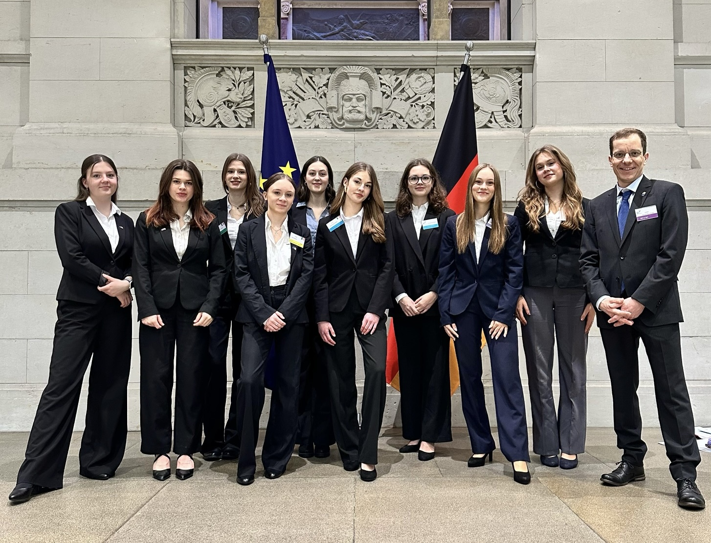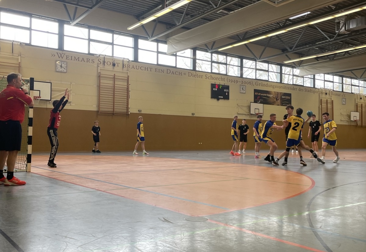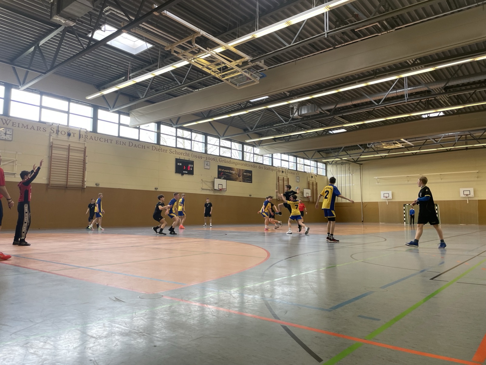 Nachdem bei den Regionalausscheiden und beim Landesfinale unsere Mädchen die Spiele gegen die anderen Thüringer Schulen nach Belieben dominierten, fuhren Trainergespann Wollborn/Dabel und die Mannschaft mit gewissen Erwartungen nach Berlin, in der Hoffnung, vielleicht das ein oder andere Spiele gewinnen zu können. Was jedoch in der Gruppenphase am ersten Tag auf die Erfurterinnen wartete, war Handball auf einem anderen Level. Eingespielte Handballteams und teils routinierte Nationalspielerinnen, welche die Unerfahrenheit der Edith-Stein-Schülerinnen eiskalt ausnutzten. Vor allem die Tempogegenstöße machten es unseren Mädchen zu schaffen. Da halfen auch die teils tollen Paraden von Lena nur bedingt und der Ball zappelte immer wieder hinter ihr im Netz. Dass sie auch Handball spielen können und einige inzwischen Stammspielerinnen in der Jugend beim beim frisch gebackenen Landesmeister Thüringer HC sind, zeigten sie in einzelnen gelungenen Angriffszügen und erfolgreichen Abschlüssen. Auch die Bemühungen in der Verteidigung wurden trotz des hohen Einsatzes oft zunichte gemacht, da es mehrfach 2-Minuten Strafen hagelte und es in Unterzahl noch schwieriger wurde, die beweglichen Angriffsspielerinnen aus Berlin, Hamburg und Hessen im Zaum zu halten. Drei klare Niederlagen standen am Ende des ersten Tages auf dem Papier und es bedurfte einiger Arbeit der Trainer, die Truppe für die Spiele am nächsten Tag zu motivieren.