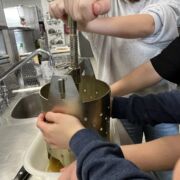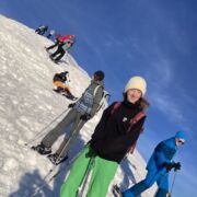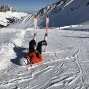 In den nächsten vier Tagen wurden die Bretter dann von allen Gruppen ordentlich gefordert. Bei durchschnittlich 5-6 Stunden auf der Piste wurde Mensch und Material täglich an die Grenzen gebracht. Während die einen schon von Anfang an ihre Carvingtechniken und Kurzschwünge verbesserten, begann für andere der Tag mit Pizza und Pommes und ständigen Versuchen, die glatten Ski zum Stehen zu bringen. Doch im Laufe der Woche geschahen wahre Wunder in den Bergen. Eben noch von den Skilehrerinnen gerade so ausgebremst, wurden zum Ende die ersten roten und schwarzen Pisten bezwungen. Gerade noch die Geheimnisse des Be- und Entlastens erfahren, zogen die Kanten bald scharfe Carvinglinien in den Schnee und was zunächst noch nach verkrampften Pflugbogen aussah, entwickelte sich in kürzester Zeit zu geschmeidigen Parallelschwüngen.