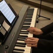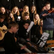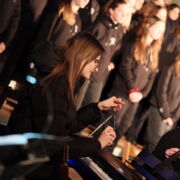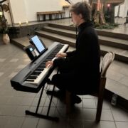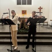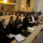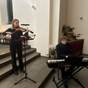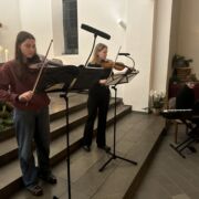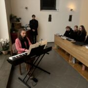Die musikalische Untermalung war geprägt von bewegenden solistischen Beiträgen an Klavier, Geige und Querflöte von Schülerinnen und Schülern der Jahrgangsstufe 12 (Amalia Saitz, Anna Ranniger, Valentina Viernickel, Leona Del Barba und Magnus Degwerth). Letzterer hat für die Andacht sogar ein Klavierstück und ein Chorstück komponiert und uraufgeführt.