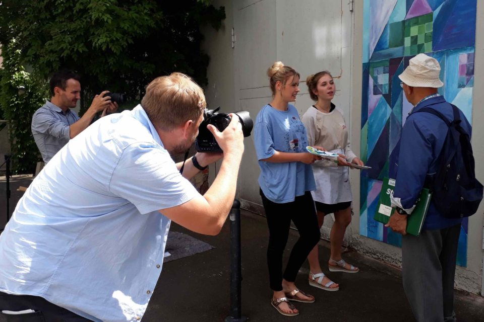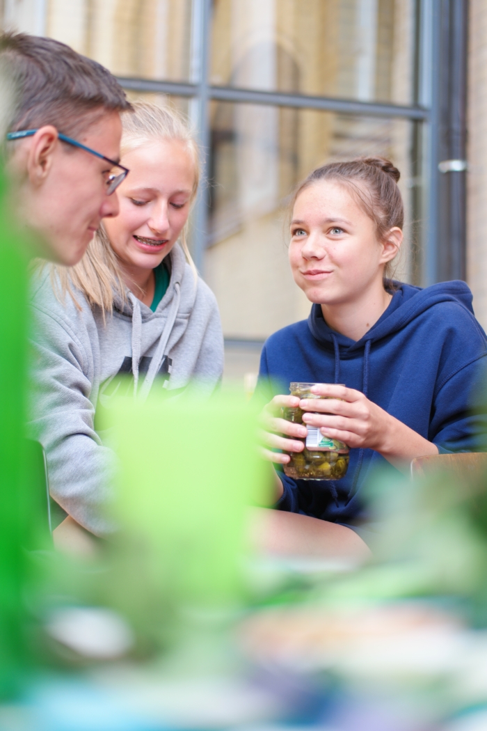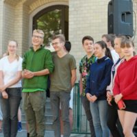 (Paula Finster, Clara Steffens, Moritz Pohl aus der 7a mit A. Dubiel)