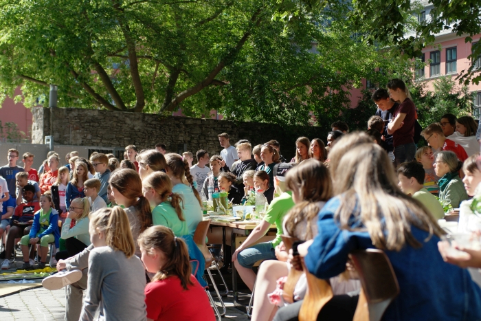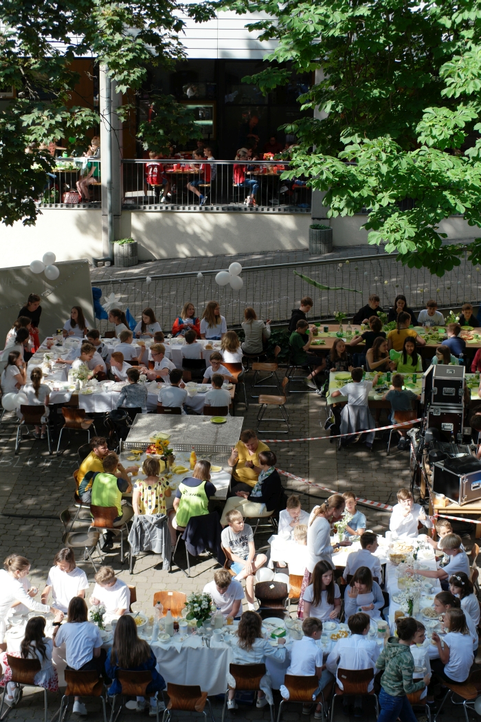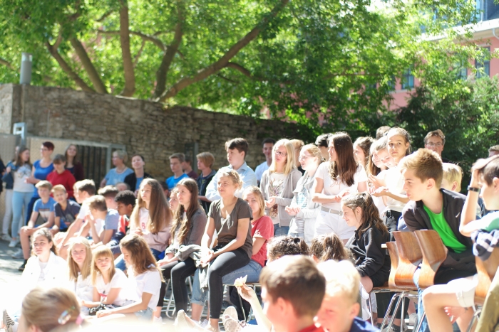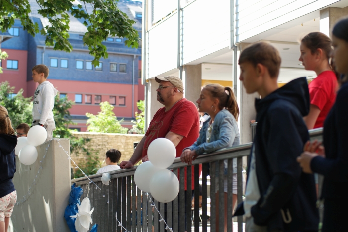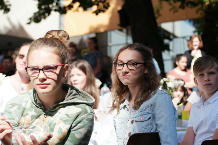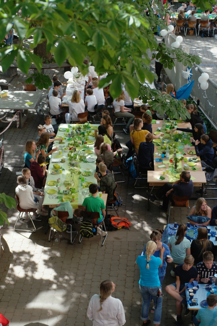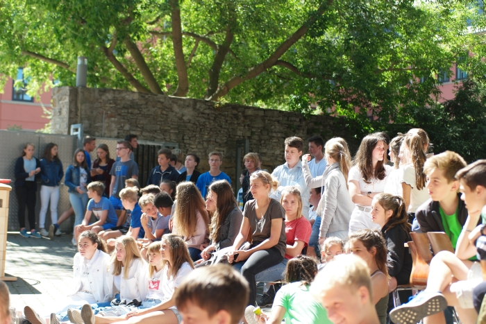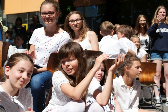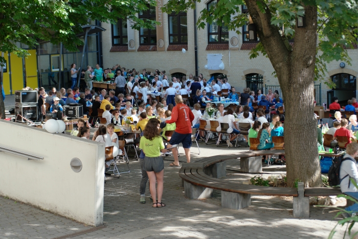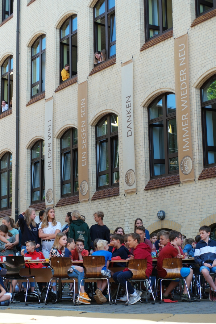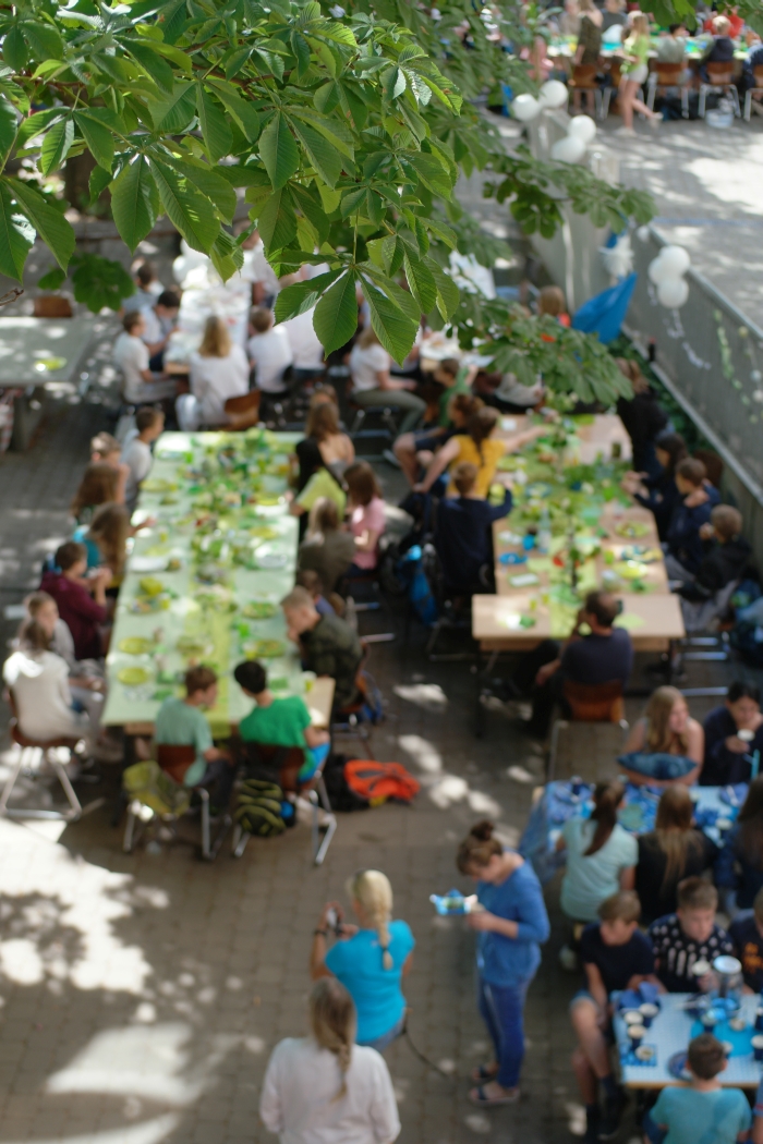 Das Schuljahr neigt sich dem Ende zu: Putzen, Räume wechseln, Projektwoche, Abschlussfest auf der ega, Schulfest ganz in weiß, Abschlussgottesdienst, Zeugnisse und dann endlich Ferien.