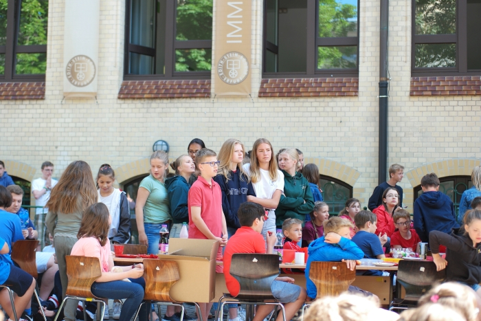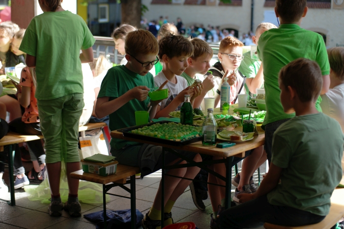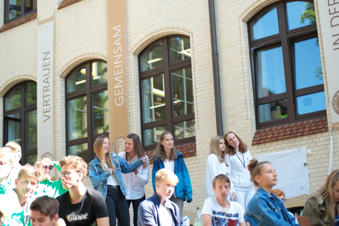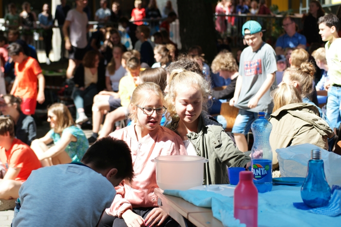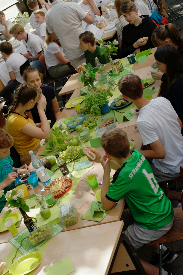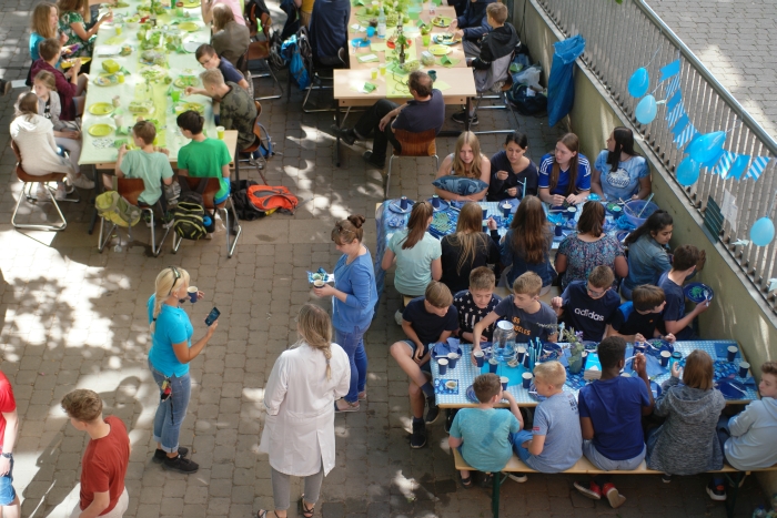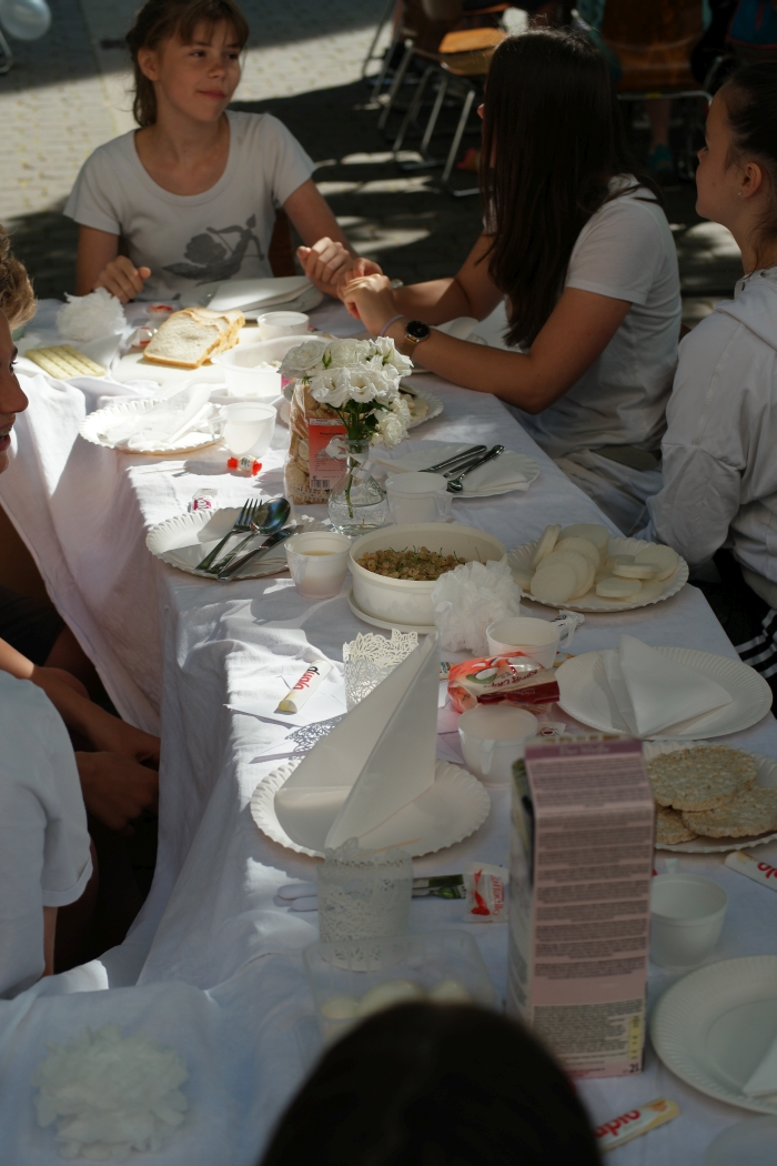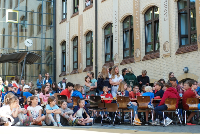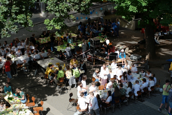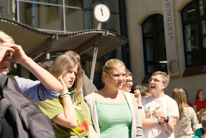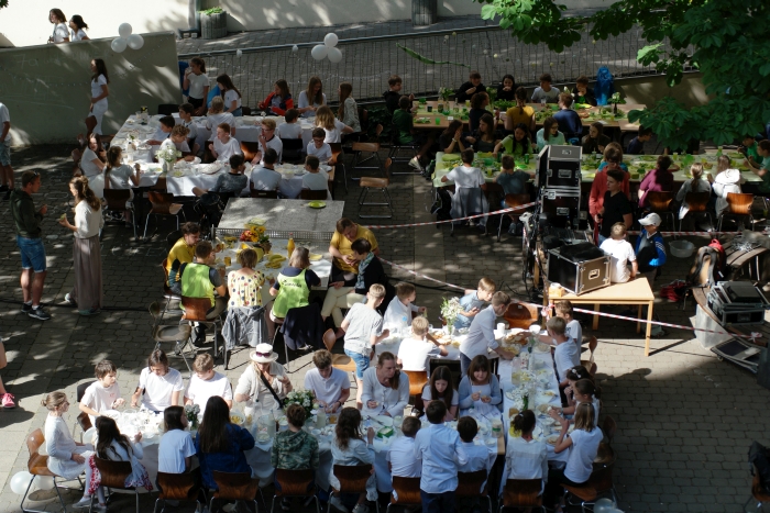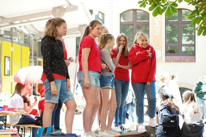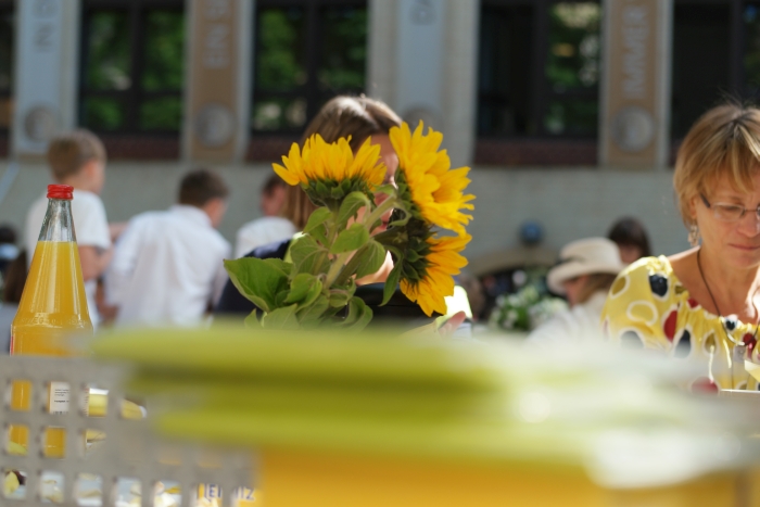 Das Schuljahr neigt sich dem Ende zu: Putzen, Räume wechseln, Projektwoche, Abschlussfest auf der ega, Schulfest ganz in weiß, Abschlussgottesdienst, Zeugnisse und dann endlich Ferien.