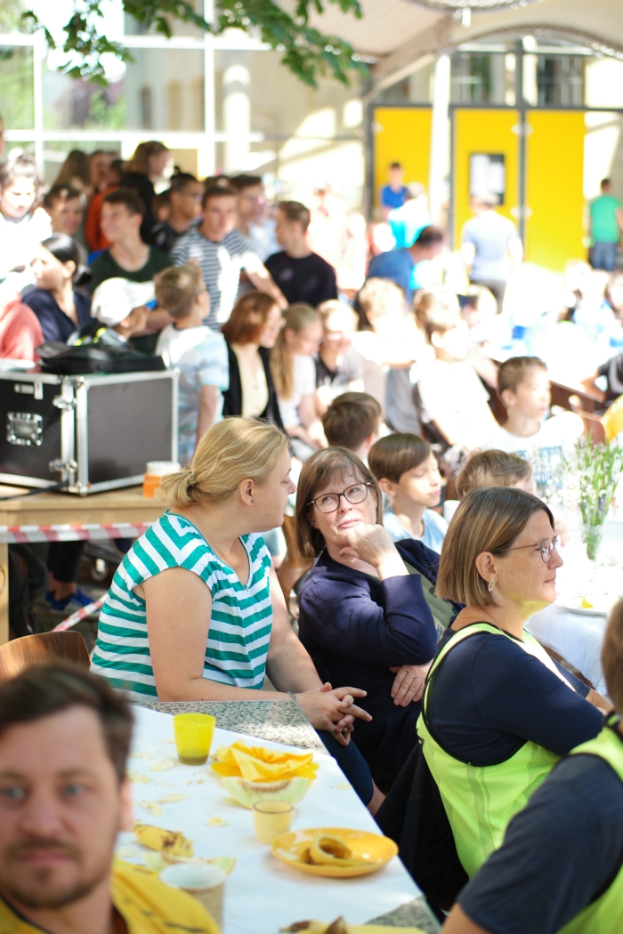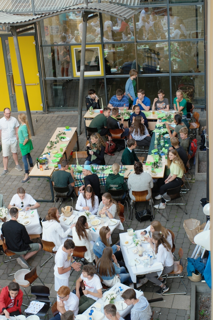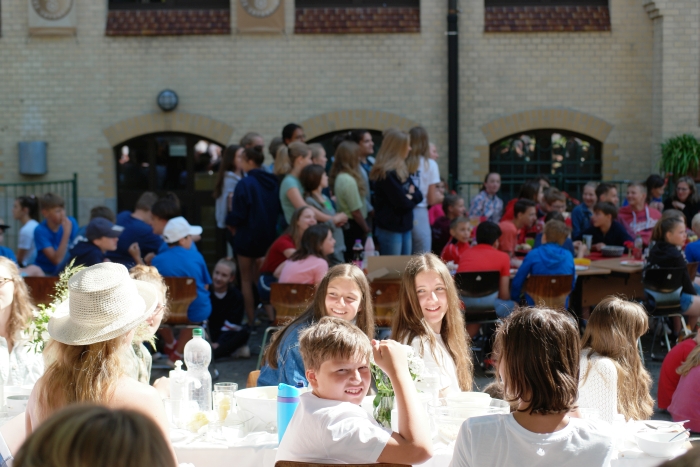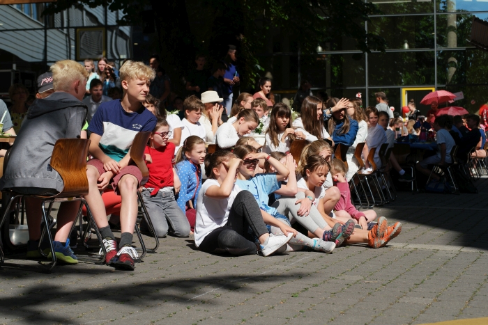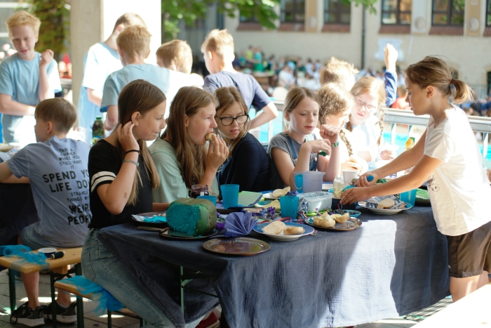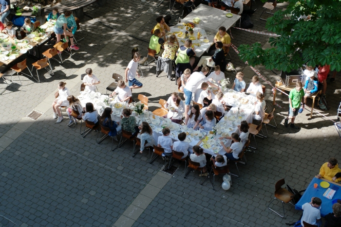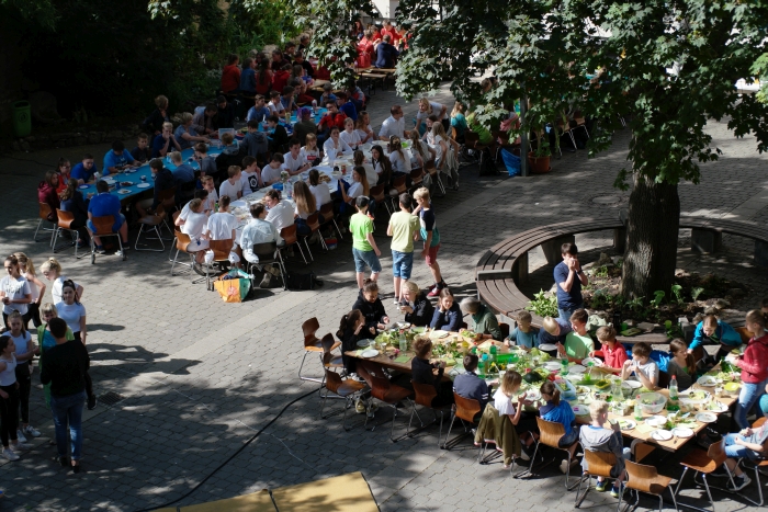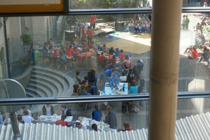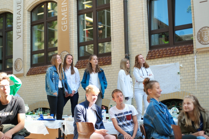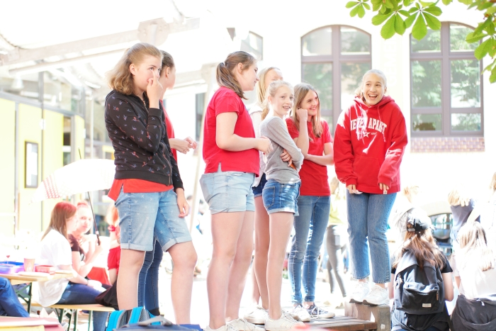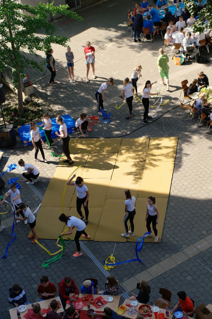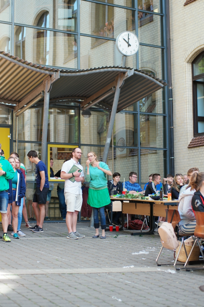 Das Schuljahr neigt sich dem Ende zu: Putzen, Räume wechseln, Projektwoche, Abschlussfest auf der ega, Schulfest ganz in weiß, Abschlussgottesdienst, Zeugnisse und dann endlich Ferien.