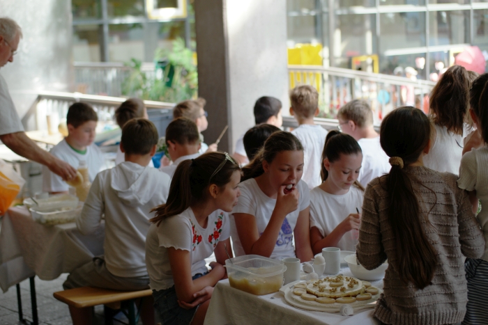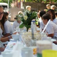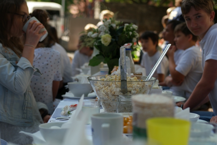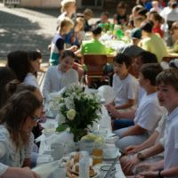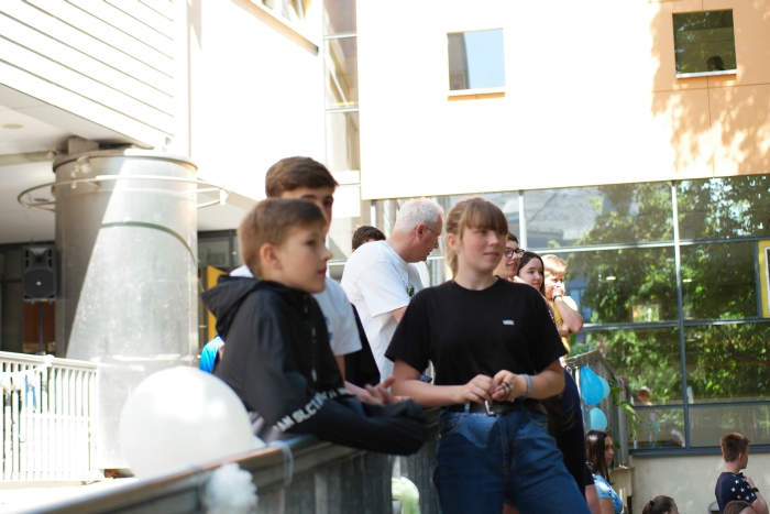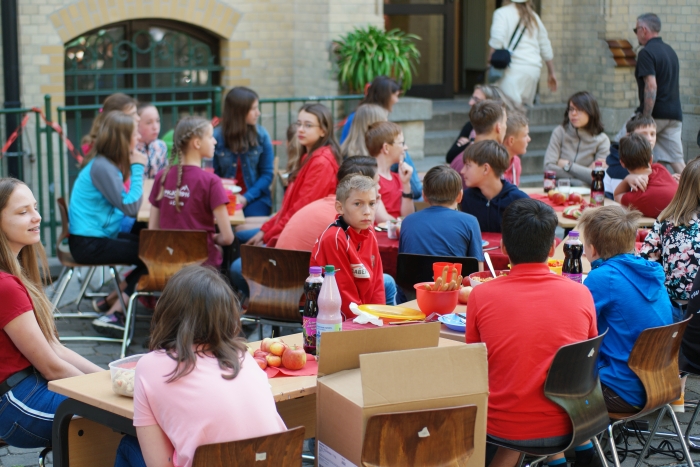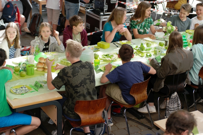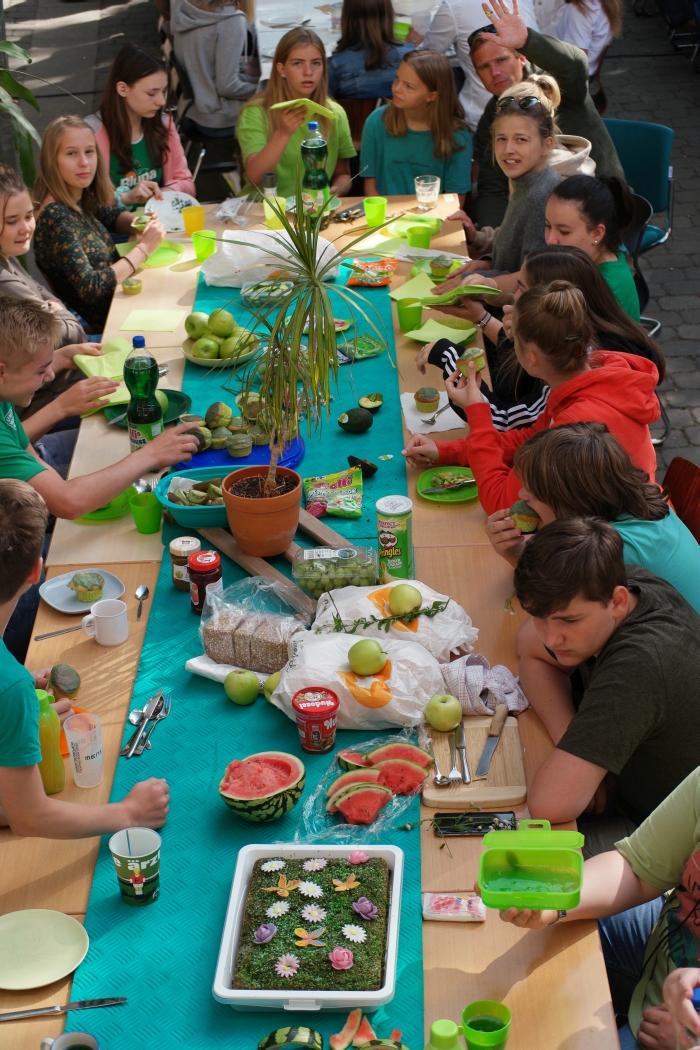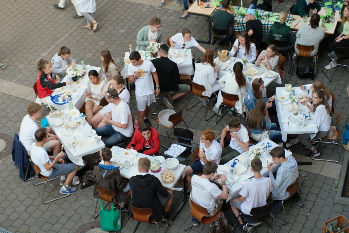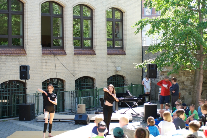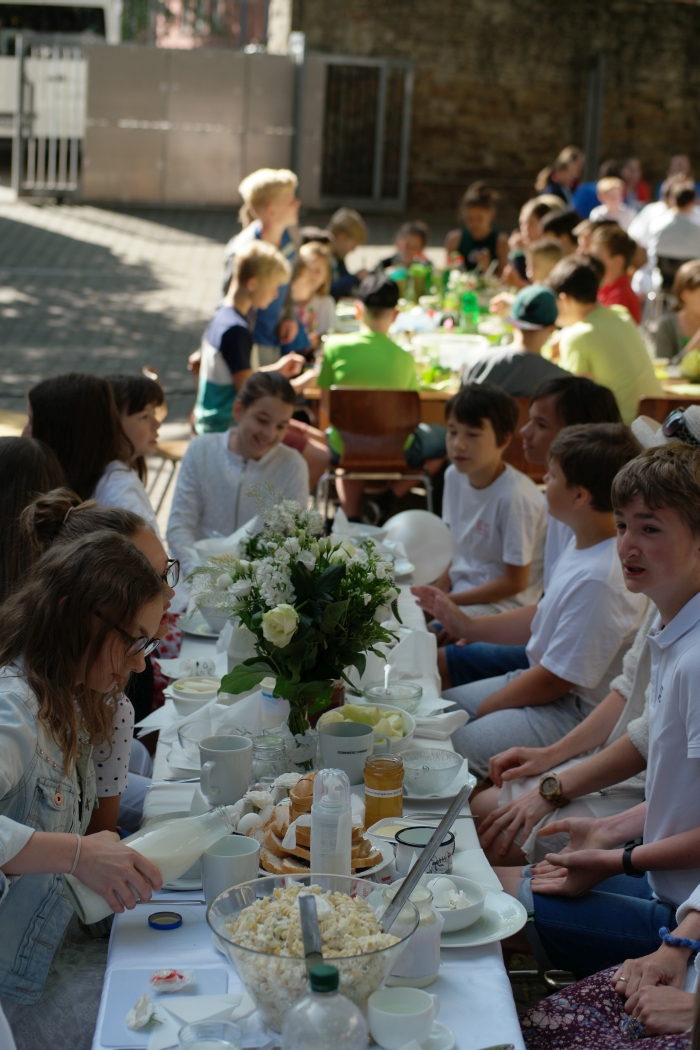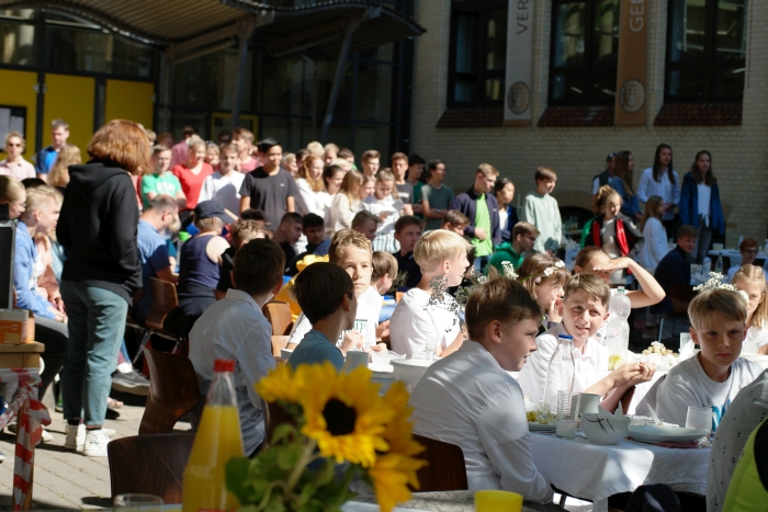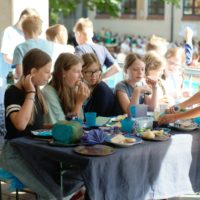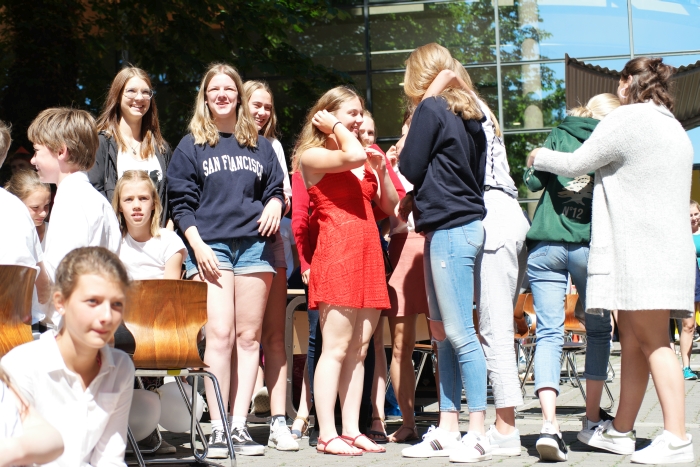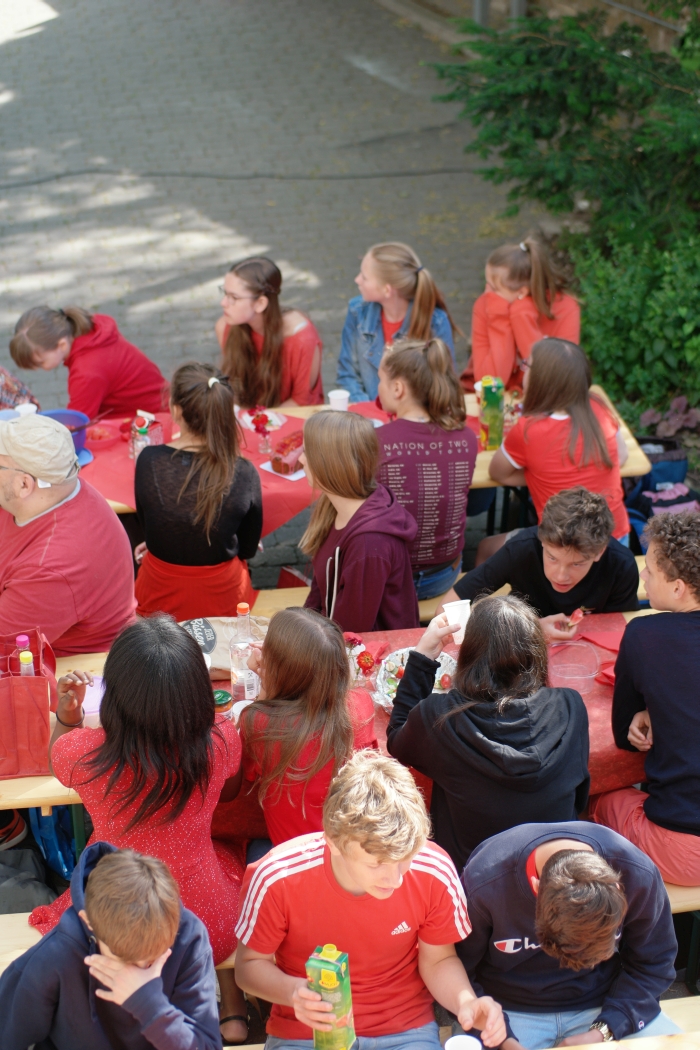 Das Schuljahr neigt sich dem Ende zu: Putzen, Räume wechseln, Projektwoche, Abschlussfest auf der ega, Schulfest ganz in weiß, Abschlussgottesdienst, Zeugnisse und dann endlich Ferien.
