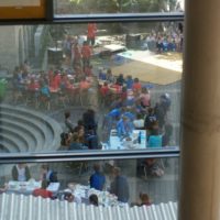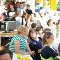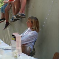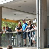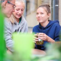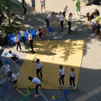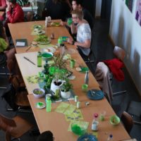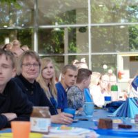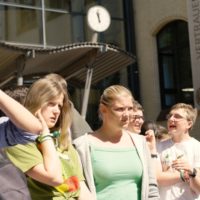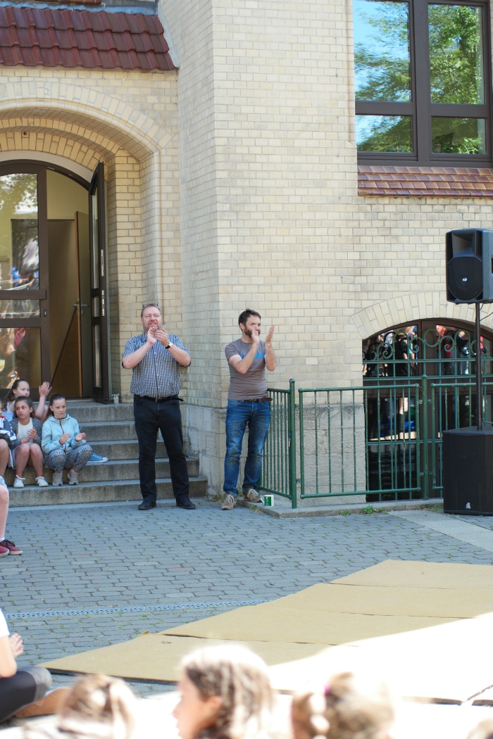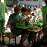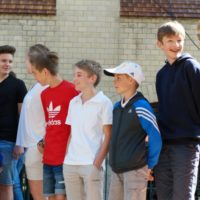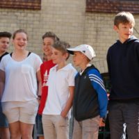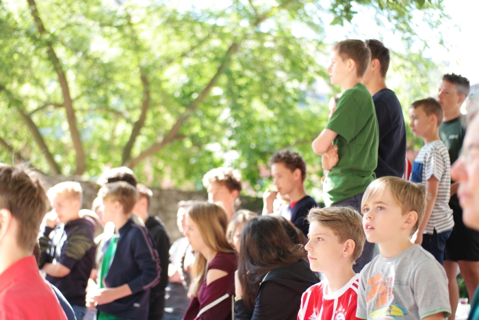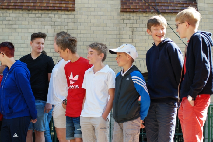 Heute konnte wir mit der 7b und 7c zwischen drei heißen Projekten wählen: Spurensuche im Schloss Sondershausen, Spurensuche im Wald und im Teich, Entdeckung englischer Sportarten. Die morgens noch kühle Indoor-Spielehalle lockte uns zuerst in die Halle und etwas später an den Teich, wo wir unbekannte Tiere und Pflanzen suchten. Wir fanden z.B. die Larven des Teichmolches. Nachdem die Sportler Rounders mit Cricketschlägern, Touchrugby und Fußball gespielt hatten, stürmten auch sie die Spielehalle. Zwischendurch warfen wir immer wieder einen Blick in Richtung Bärengehege, wo der Bär sich im Wasserbecken räkelte und die Erdmännchen ihre Kleinen säugten. Der Gepard schlenderte leider nur selten durch das hohe Gras. Am Nachmittag wanderten einige von uns zu den Bebraern Teichen. Der Abend klang aus bei heißer Discomusik (fast) „Atemlos durch die Nacht“ und rockend kniend „We will rock you“ auf dem Diskofloor im Diskokeller. Oben auf dem achteckigen schiefen Possenturm aus Holzfachwerk konnten wir den Sonnenuntergang genießen und schon die Kühle der Nacht erahnen.
