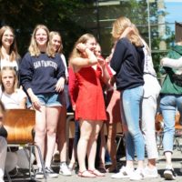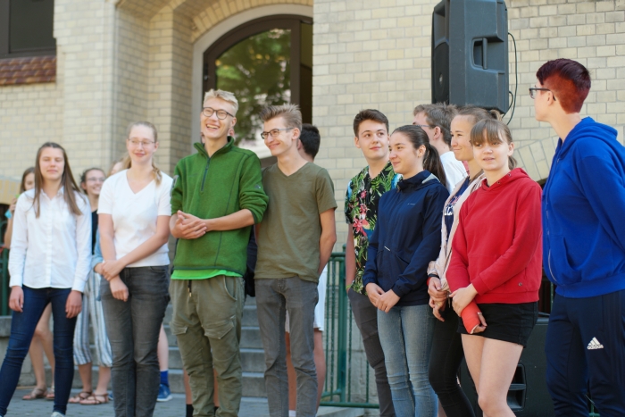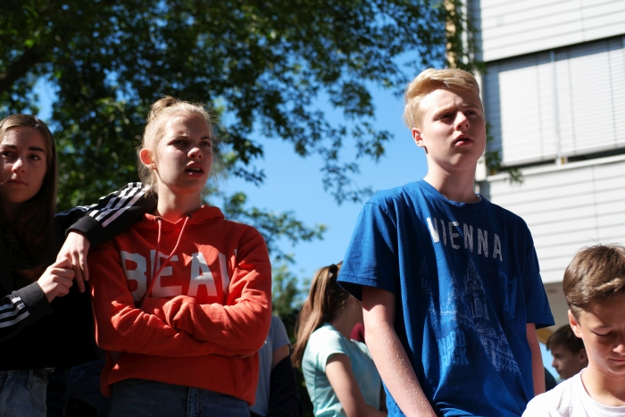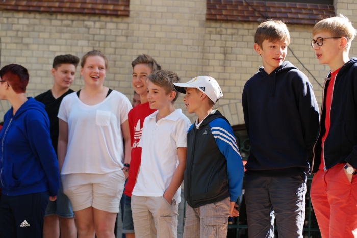 Am nächsten Tag war keine Schule, sondern Wandertag. Diesen verbrachten wir, die 7a, mit Fotos austauschen, Eis essen und selbstgepresstem Apfelsaft im kühlen Klassenzimmer. Abends trafen wir uns um 18.00 Uhr auf dem Anger und fuhren gemeinsam zum Kika. Wir waren live dabei bei den Aufzeichnungen der letzten Runde „Dreamteam 2019“ mit dem Sänger Mike Singer und zahlreichen witzigen Spielen. Bei einem Spiel trat der Jugendchor auf, wo einige unserer SchülerInnen mitsangen. Nach Autogrammen und Selfies endete der Tag.