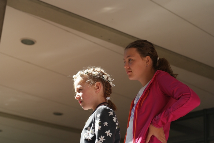 Schnell fuhr der Fahrstuhl nach unten. Mit 4 Metern pro Sekunde und in absoluter Dunkelheit brachte er uns in die Tiefe. Dann kamen wir 700 Meter unter der Erde an. Wir kletterten auf die offene Ladefläche von drei Lastwagen. Als wir mit 30 km/h durch die vielen Gänge und um zahlreiche Kurven fuhren kam es uns viel schneller vor, da es sehr eng und holperig war. Unser Fahrer erzählte uns viel über die Geschichte und die Bedeutung des Bergwerks und über den Kalisalz- (Dünger) und Natriumchlorid-Abbau (Streusalz). Wir fuhren im Spreewaldkahn über den Salzsee, erkundeten die Ausstellung über die Verwendung der Salzbergwerke als Heeresmunitionsanstalten und sahen Bilder über die Gold- und Bilderschätze, die von den Nazis in Bergwerken eingelagert wurden. Später rutschten wir in einer steilen Tunnelrutsche auf einem Arschleder (das heißt wirklich so!) durch den Berg, sie war so schnell, dass die ersten über das Ziel hinaus schossen. Im Konzertsaal lauschten wir den Klängen von Johannas mutigem Klavierspiel (Ludovico Einaudi – Amélie) und beendeten die Exkursion im Festsaal mit einem kleinen Film über den heutigen Streusalzabbau, es werden pro Jahr einige Tausend Tonnen Streusalz für den Winter gefördert. Jetzt ist aber Sommer, das grelle Sonnenlicht und die Hitze empfingen uns, als wir mit dem dunklen Fahrstuhl wieder nach oben sausten. Nach dem Mittag auf der Terrasse des Jagdschlosses Possen und entspanntem Faulenzen im Schatten fuhren wir mit der 7b und 7c in der DB gegen Abend nach Hause.