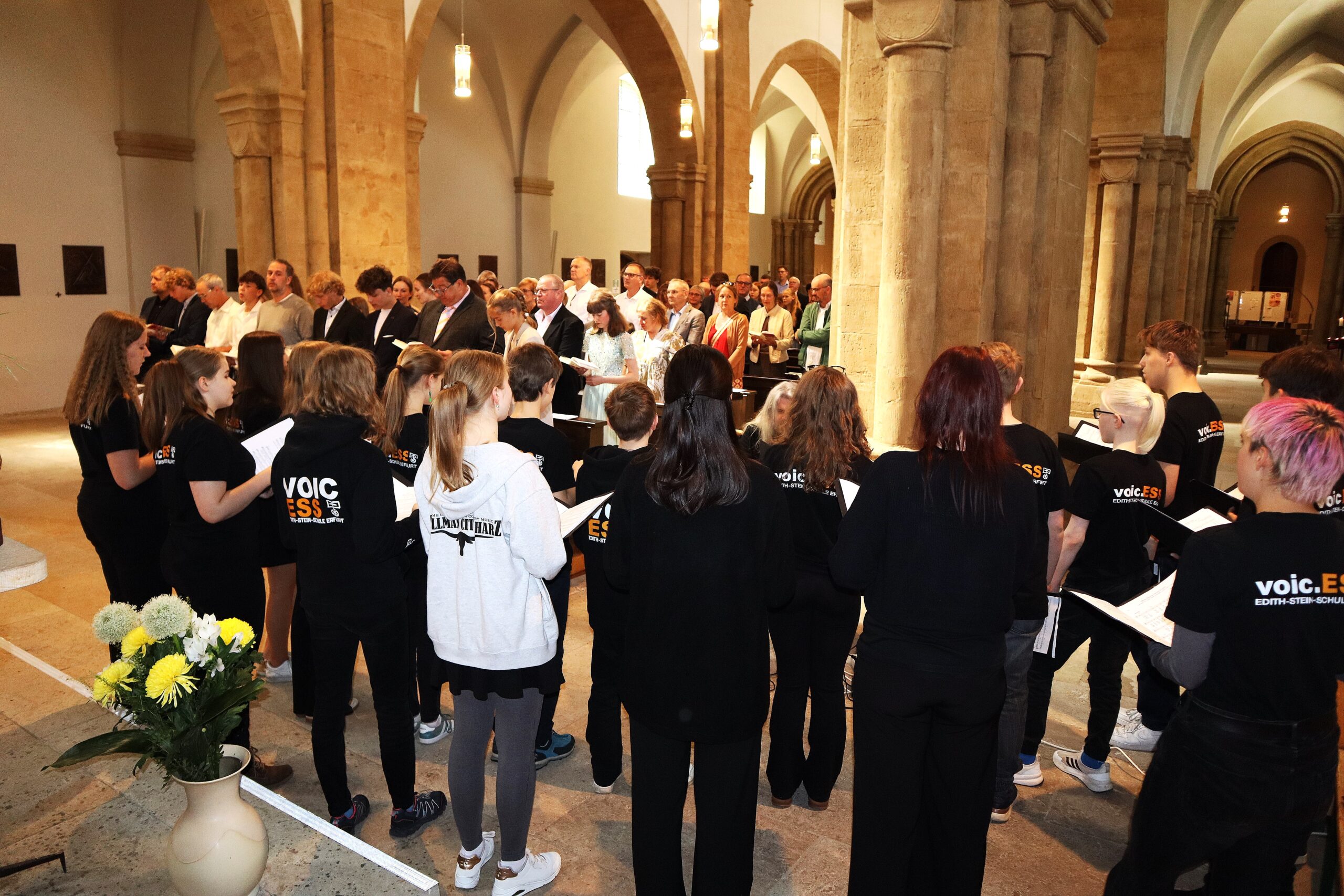 Auch die weiteren Ensembles zeigten eindrucksvoll, welches musikalische Potenzial in der Schulgemeinschaft steckt. Sowohl der Kinderchor ESS-Kids als auch der Jugendchor VoicESS erfüllten die Reglerkirche mit bewegenden Klängen. Nach dem Lied mit der Gemeinde spendete unsere Schulseelsorgerin Frau Hennig-Schönemann den Segen.