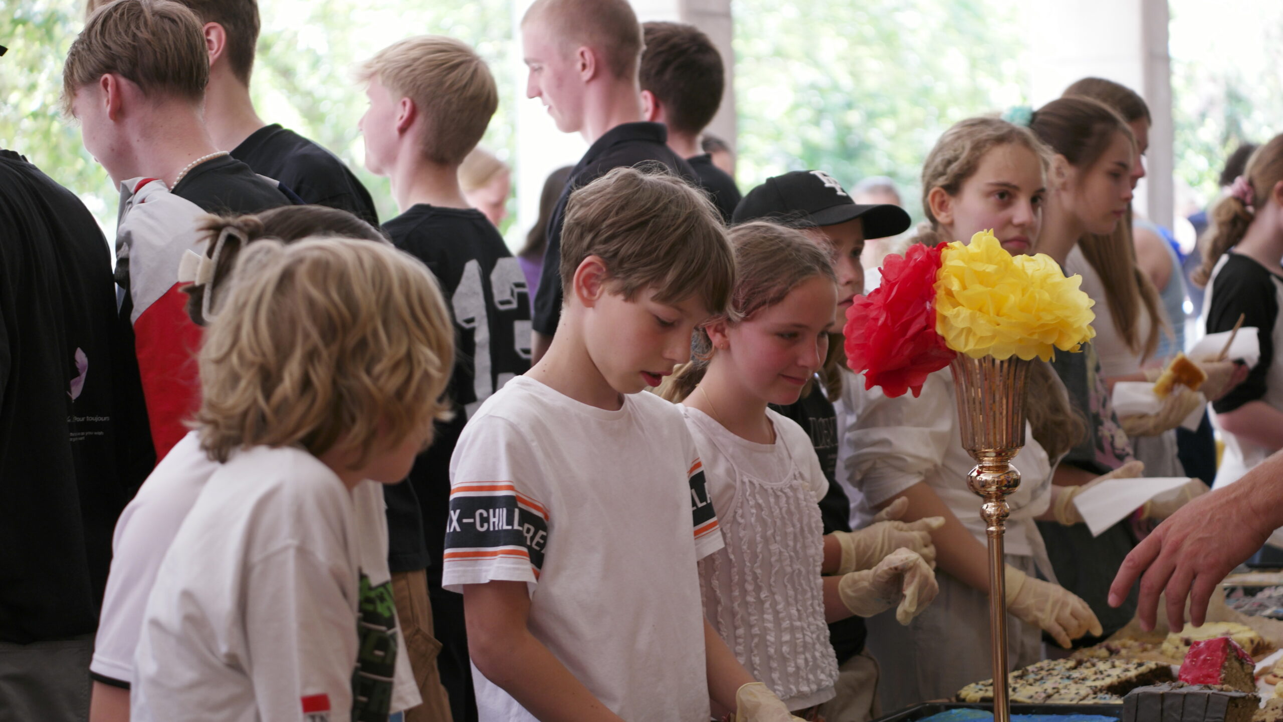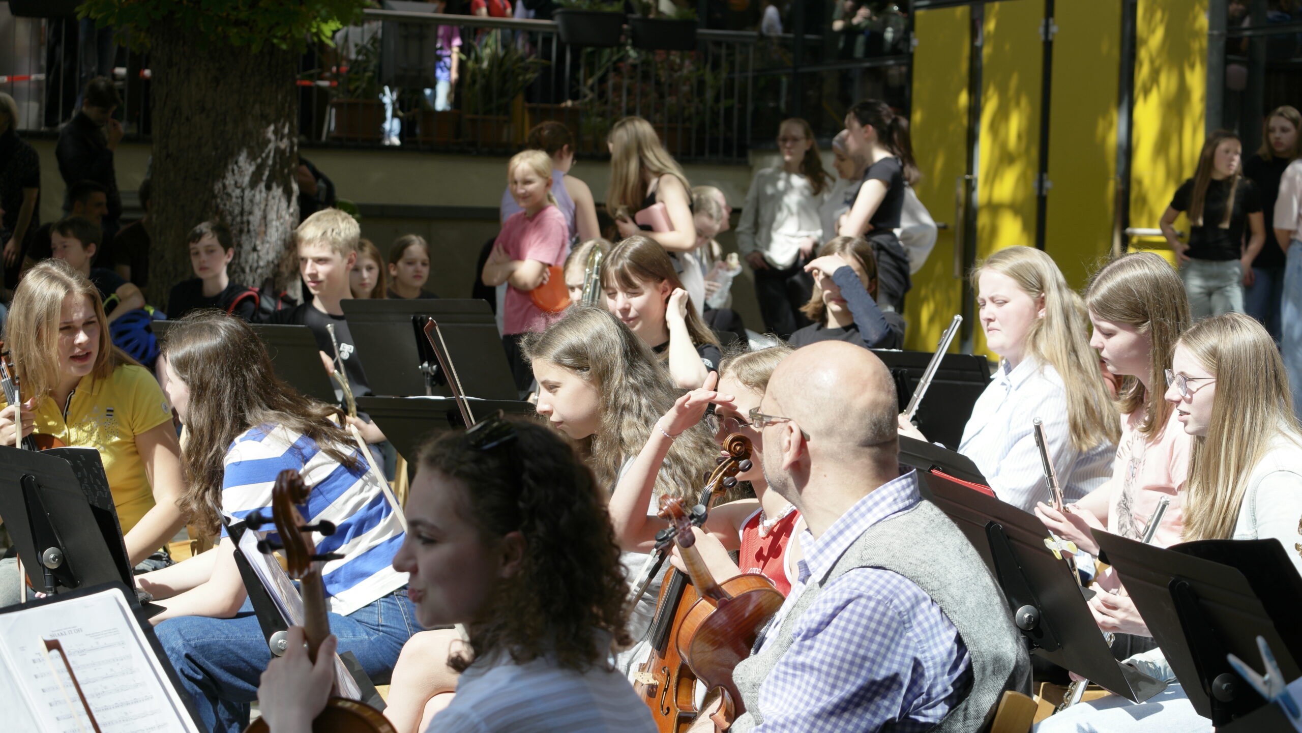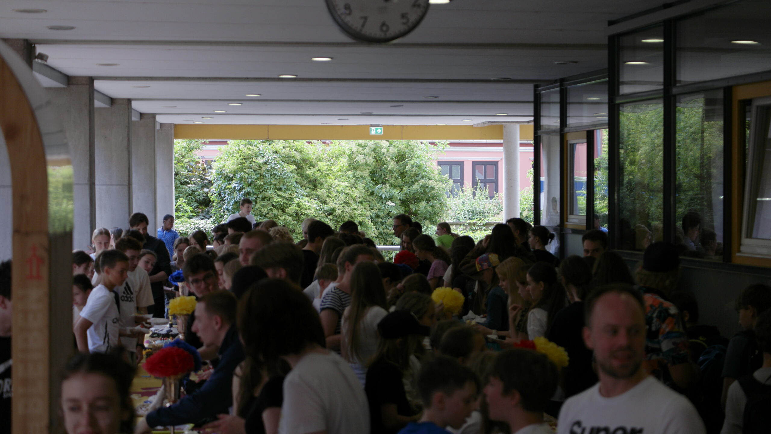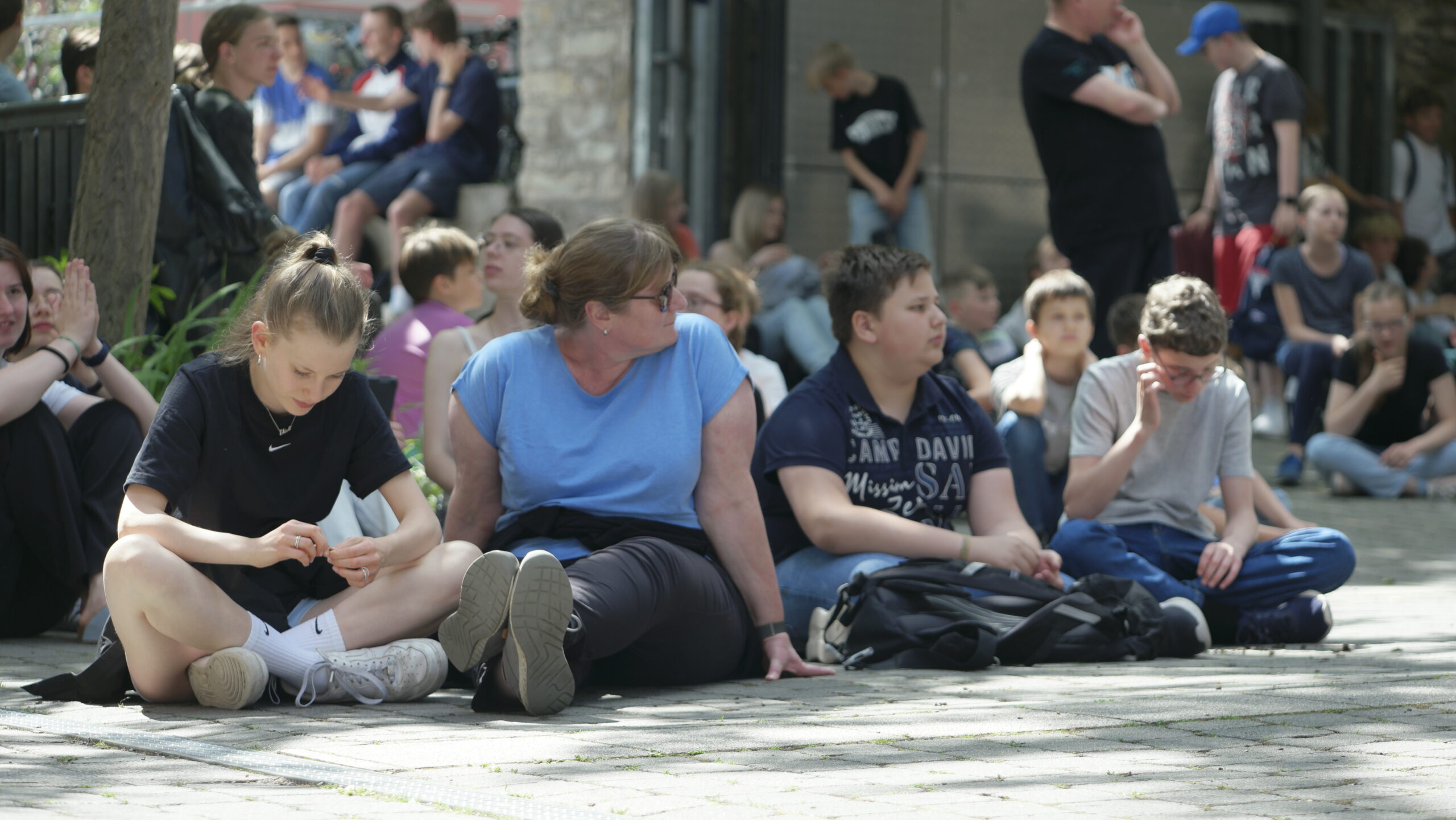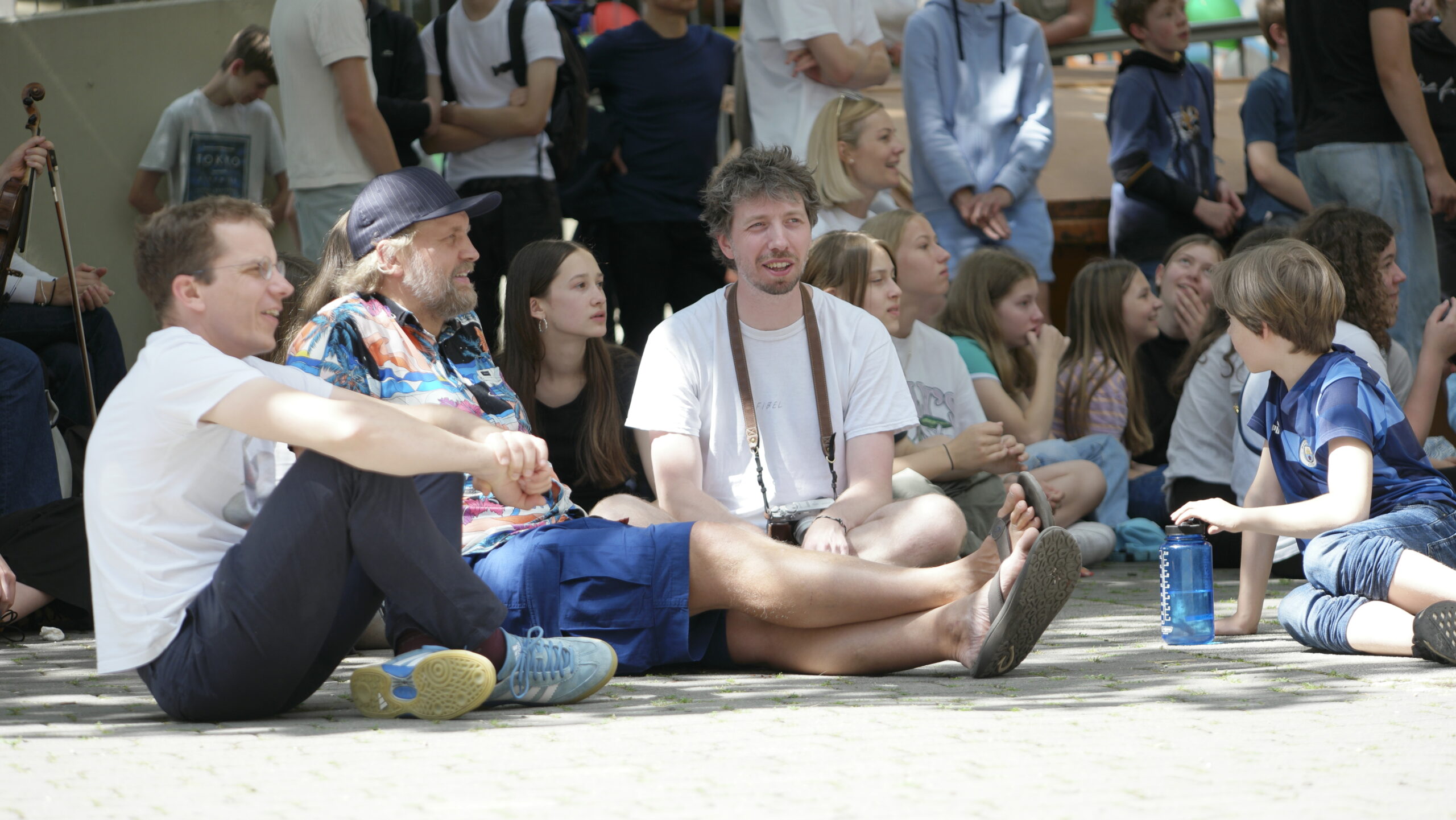 Singend zogen die Gottesdienstbesucher anschließend gegenüber ins Haus der Versöhnung zum zweiten Teil des Gottesdienstes. Sängerinnen und Sänger des VoicESS-Kammerchores der Edith-Stein-Schule Erfurt unter der Leitung von Ekkehard Fellner gestalteten den Gottesdienst musikalisch. Unter dem Leitwort „Frieden und Versöhnung“ wählten sie mehrstimmige Werke in verschiedenen Sprachen aus: „Fix You“ und „Bleib mit deiner Gnade“, dazu noch „Freunde, dass der Mandelzweig“, und „Hevenu shalom alejchem“. Magnus begleitete die Lieder am Klavier und beschloss die Andacht mit dem Chopins Prélude in Des-Dur.