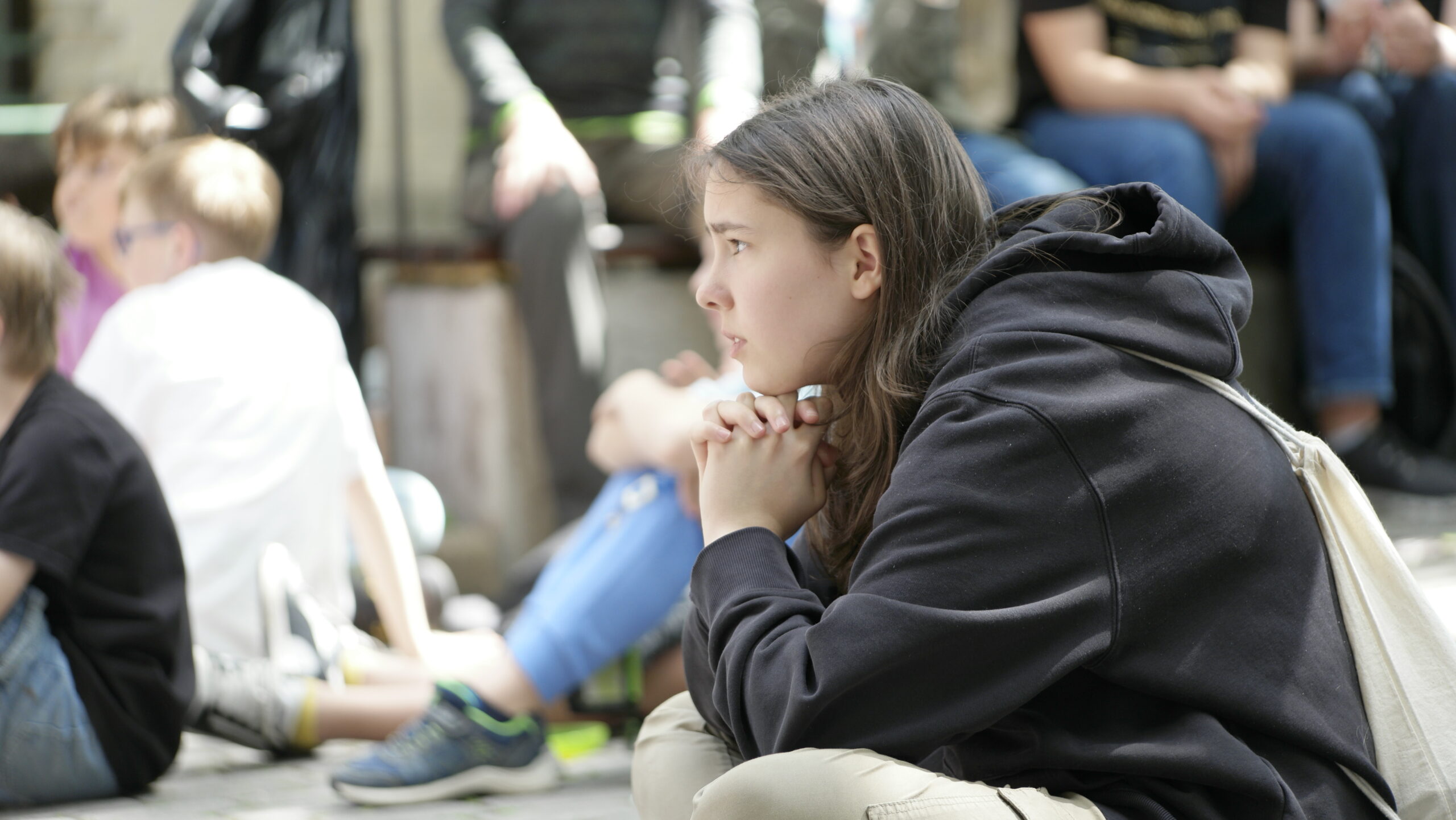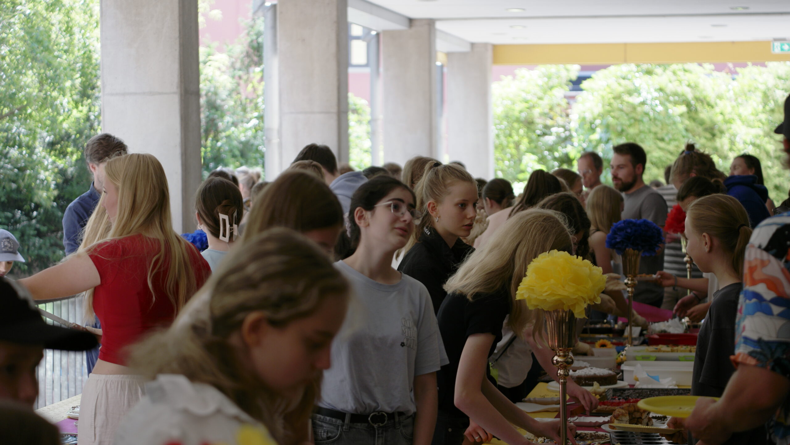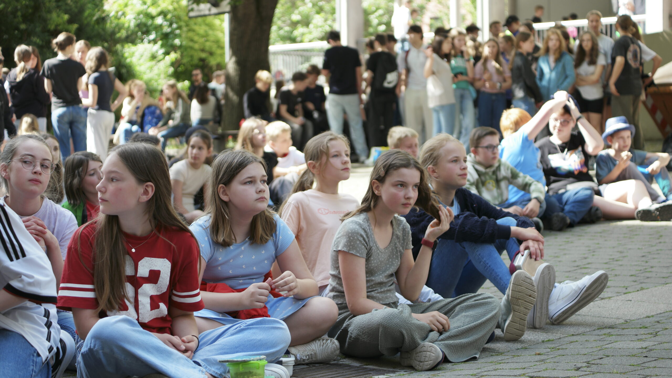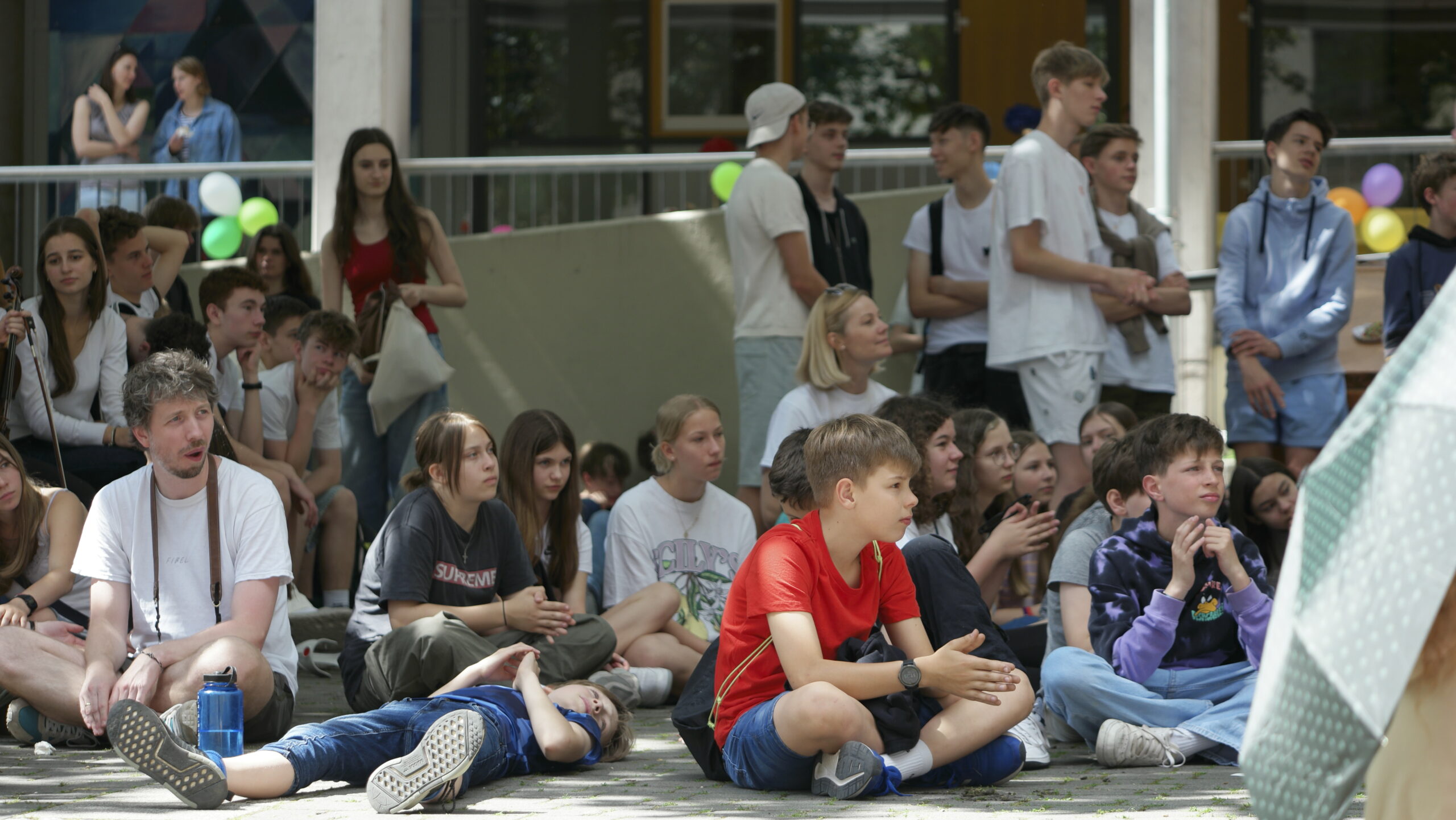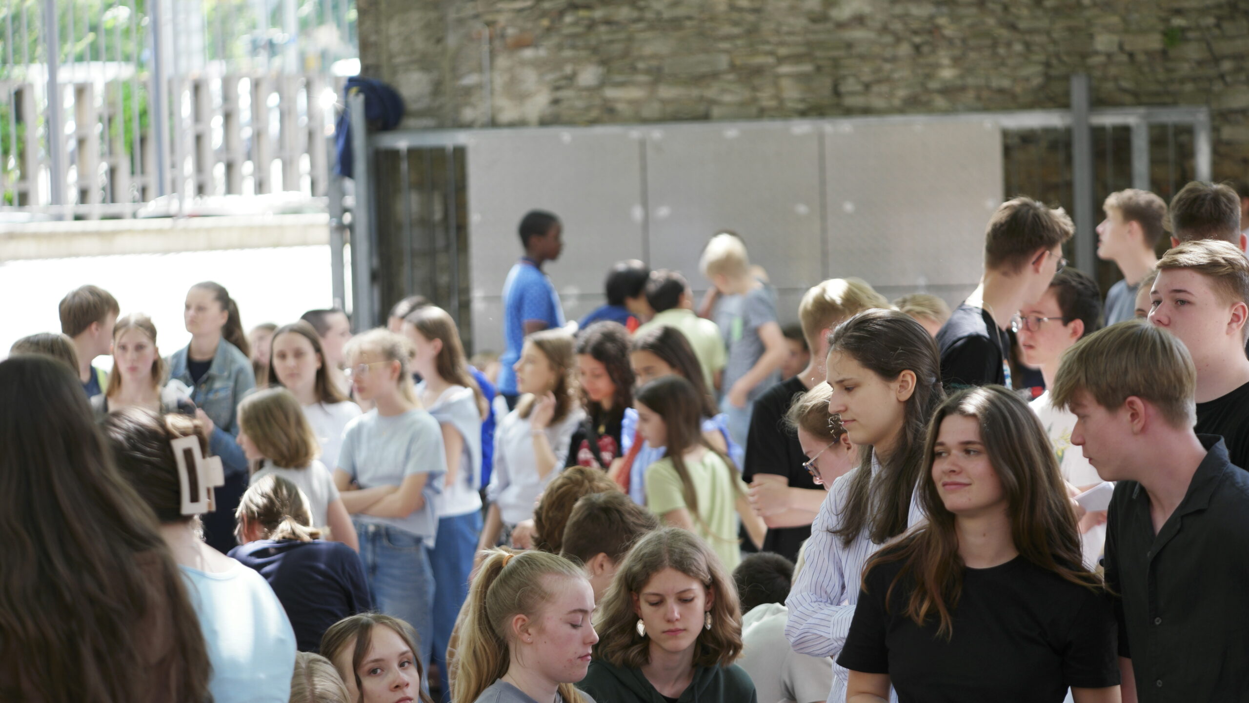 Singend zogen die Gottesdienstbesucher anschließend gegenüber ins Haus der Versöhnung zum zweiten Teil des Gottesdienstes. Sängerinnen und Sänger des VoicESS-Kammerchores der Edith-Stein-Schule Erfurt unter der Leitung von Ekkehard Fellner gestalteten den Gottesdienst musikalisch. Unter dem Leitwort „Frieden und Versöhnung“ wählten sie mehrstimmige Werke in verschiedenen Sprachen aus: „Fix You“ und „Bleib mit deiner Gnade“, dazu noch „Freunde, dass der Mandelzweig“, und „Hevenu shalom alejchem“. Magnus begleitete die Lieder am Klavier und beschloss die Andacht mit dem Chopins Prélude in Des-Dur.