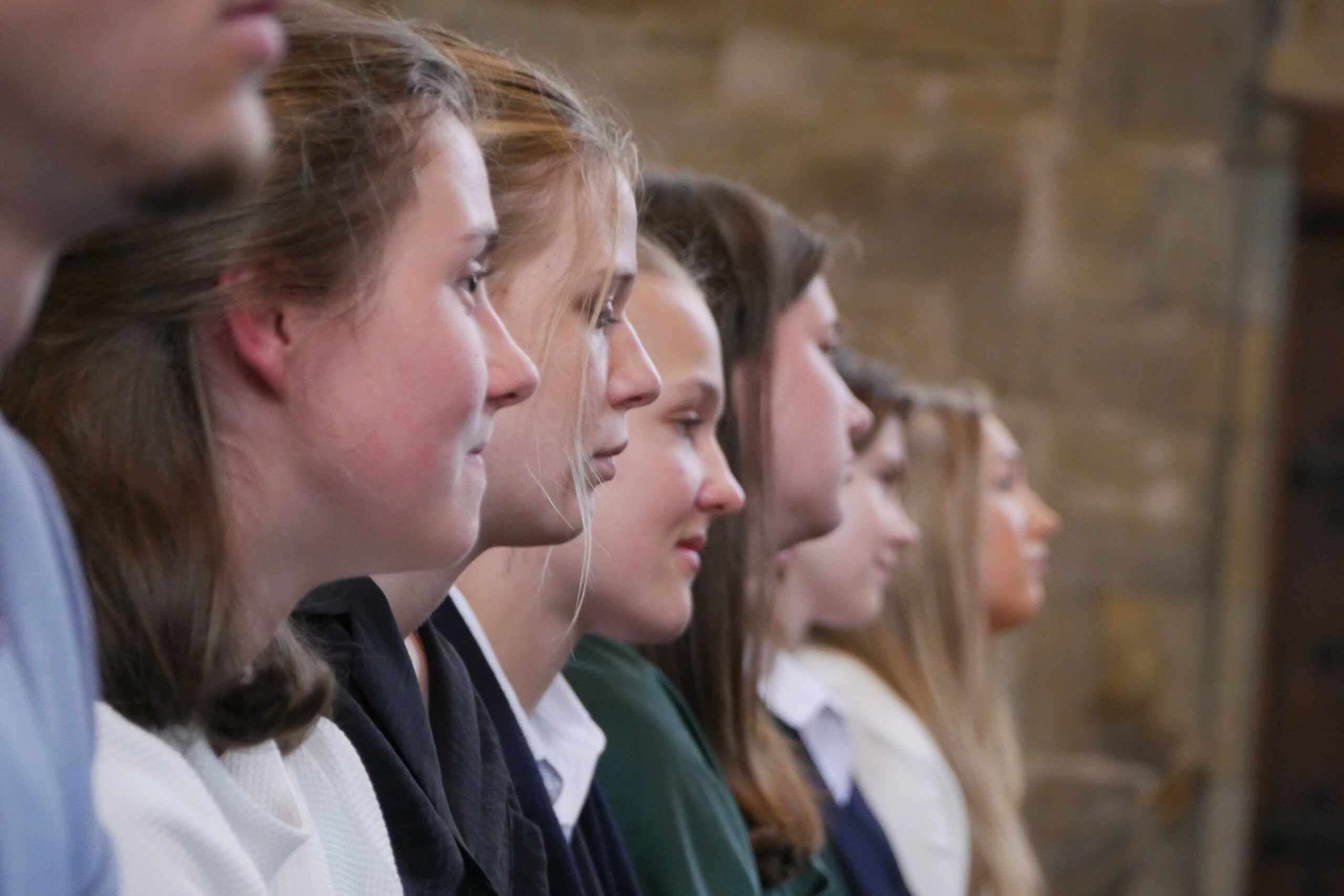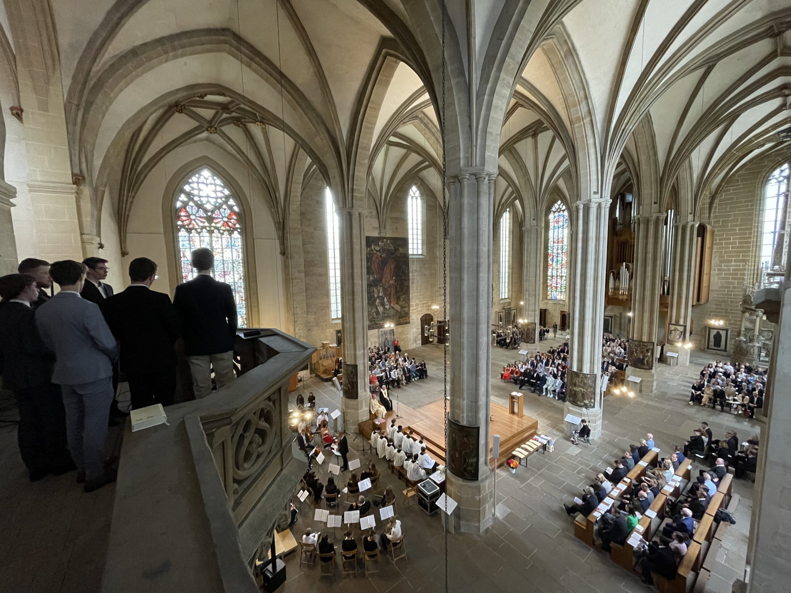 Die Erinnerung an das Furchtbare wach halten – und gleichzeitig ein Zeichen der Versöhnung setzen: Am Sonntag, 26. Januar 2025 luden die Jüdische Landesgemeinde Thüringen, das Katholische Dekanat Erfurt und der Evangelische Kirchenkreis Erfurt gemeinsam zum ökumenischen Gottesdienst zum Holocaust-Gedenken im Evangelischen Augustinerkloster zu Erfurt ein. Der VoicESS-Kammerchor begleitete die Andacht musikalisch mit Liedern und Gesängen.