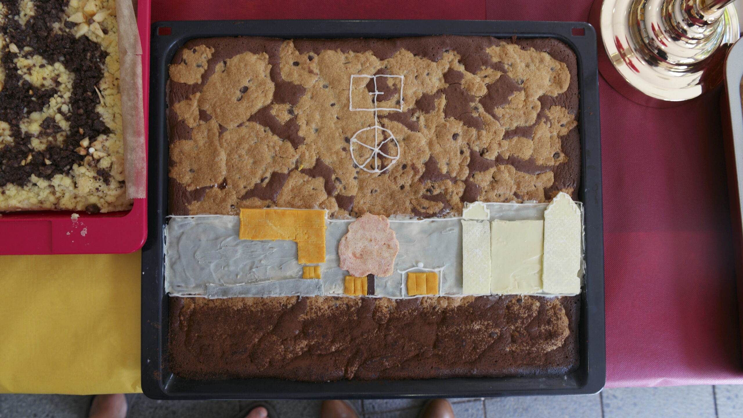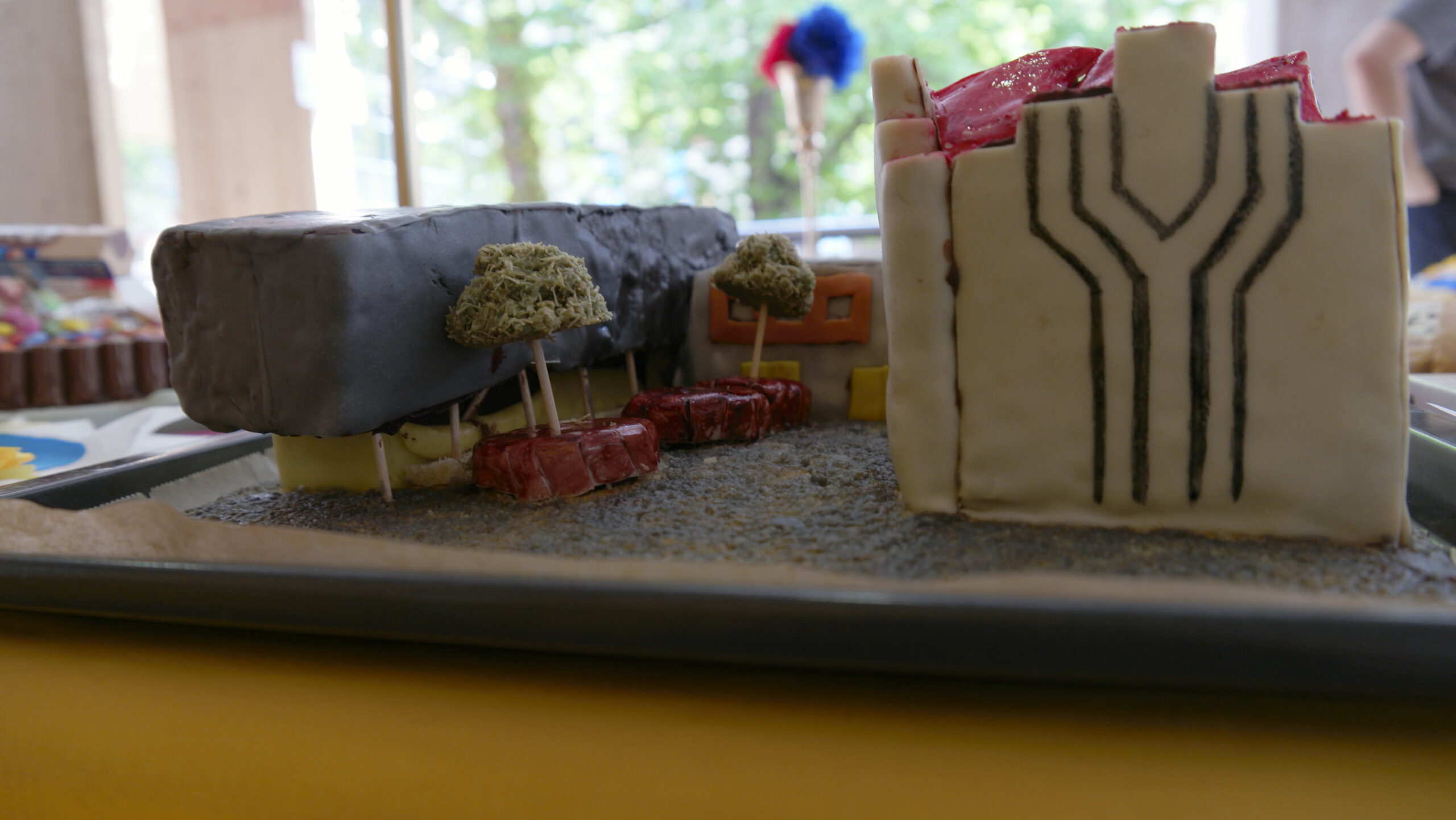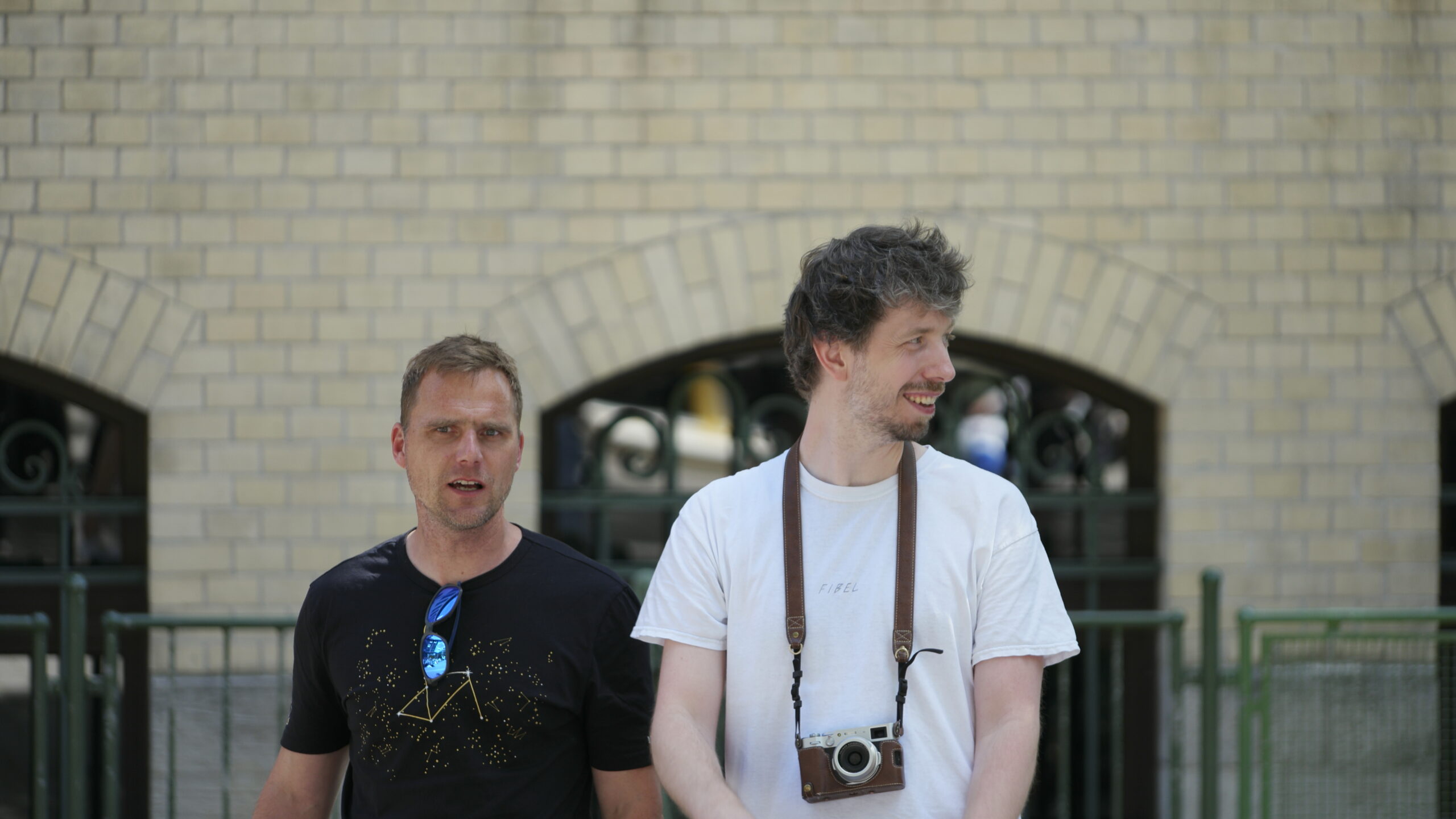 Das mittlere Bild zeigt einen Kniefall Luthers vor dem Campanile, dem Glockenturm des Mahnmals am Ettersberg für das ehemalige KZ Buchenwald bei Weimar. Denn Spiegler ist überzeugt: Luther würde dort heute auf die Knie fallen und um Vergebung bitten. Dieses zentrale Motiv wird flankiert von Details des Jungfrauenportals am Erfurter Dom: links von den „Klugen Jungfrauen“ und rechts von den „Törichten Jungfrauen“. Den beiden Gruppen werden Figuren zur Seite gestellt, die Christentum und Judentum symbolisieren und damit den jahrhundertealten Streit um den wahren Glauben.