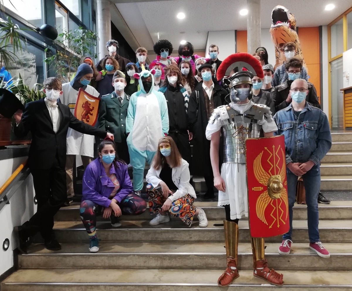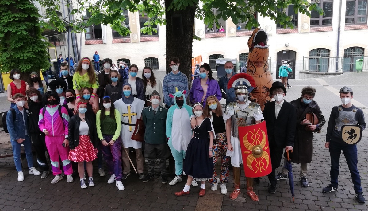 In den letzten 14 Tagen konnte man immer wieder merkwürdige Gestalten im Schulhaus beobachten oder es drangen ungewohnte Klänge in die Klassenzimmer. Ursache dafür war nicht die Nachholung der Faschingssaison, sondern der Abschied des aktuellen Abijahrgangs mit der traditionellen Mottowoche. Kein Jahrgang wird die Auswirkungen der coronabedingt ungewöhnlichen Lernbedingungen so gespürt haben, wie die 12er, die den Großteil ihrer abirelevanten Kurshalbjahre im Lockdown oder im Wechselunterricht verbracht haben, ganz zu schweigen von den außerunterrichtlichen Annehmlichkeiten, denen man in diesem Alter normalerweise frönt.