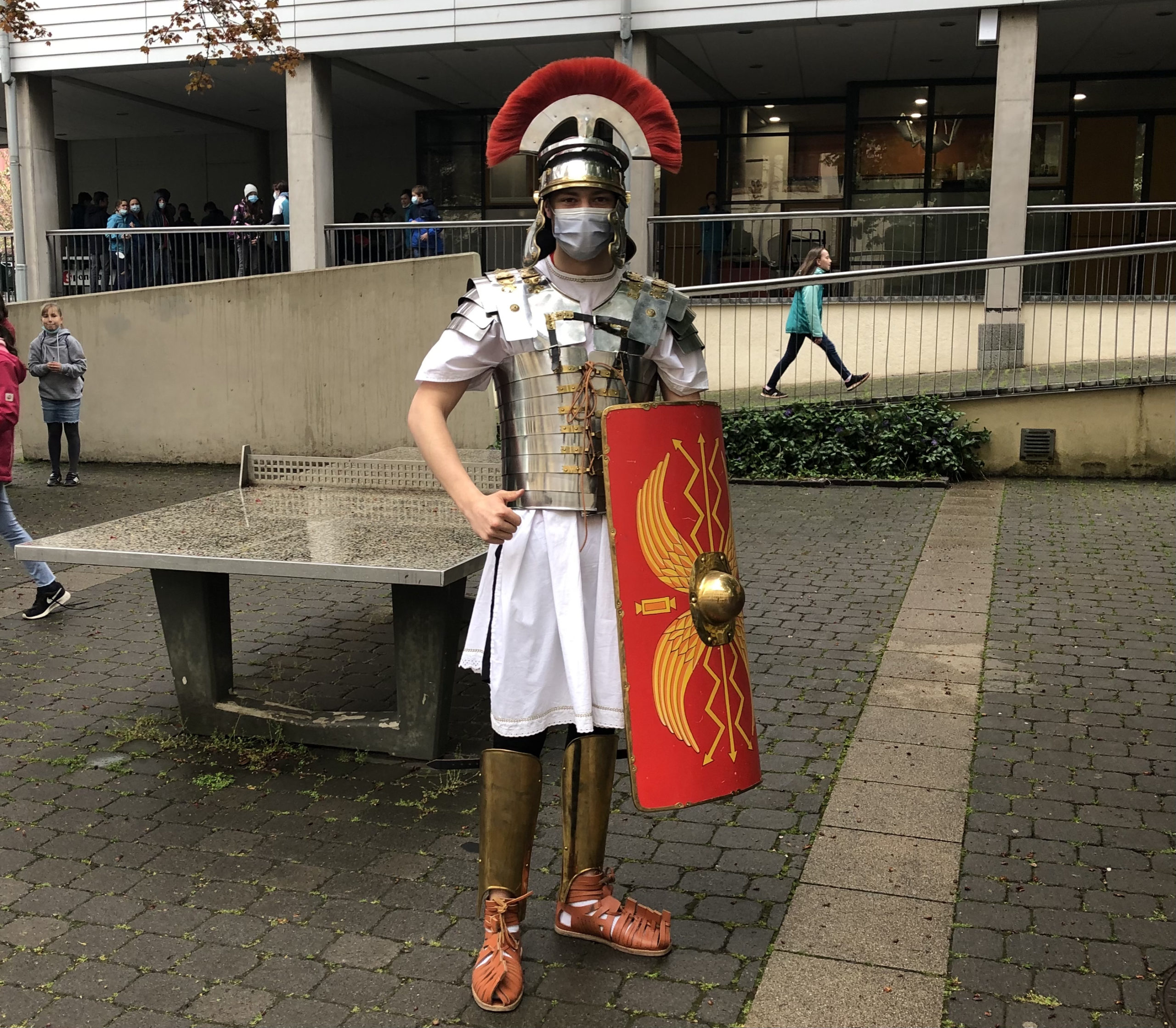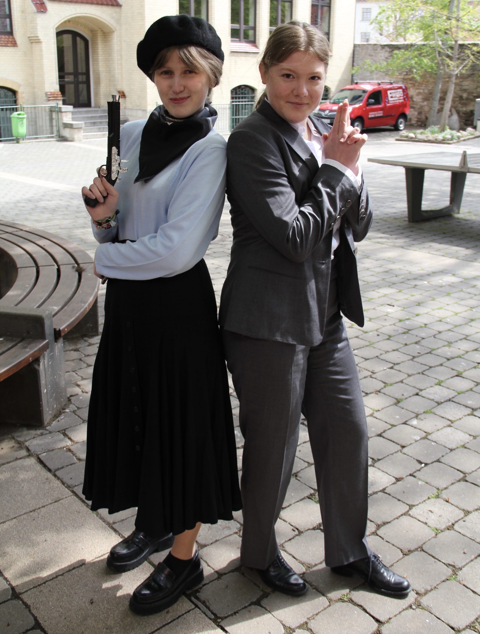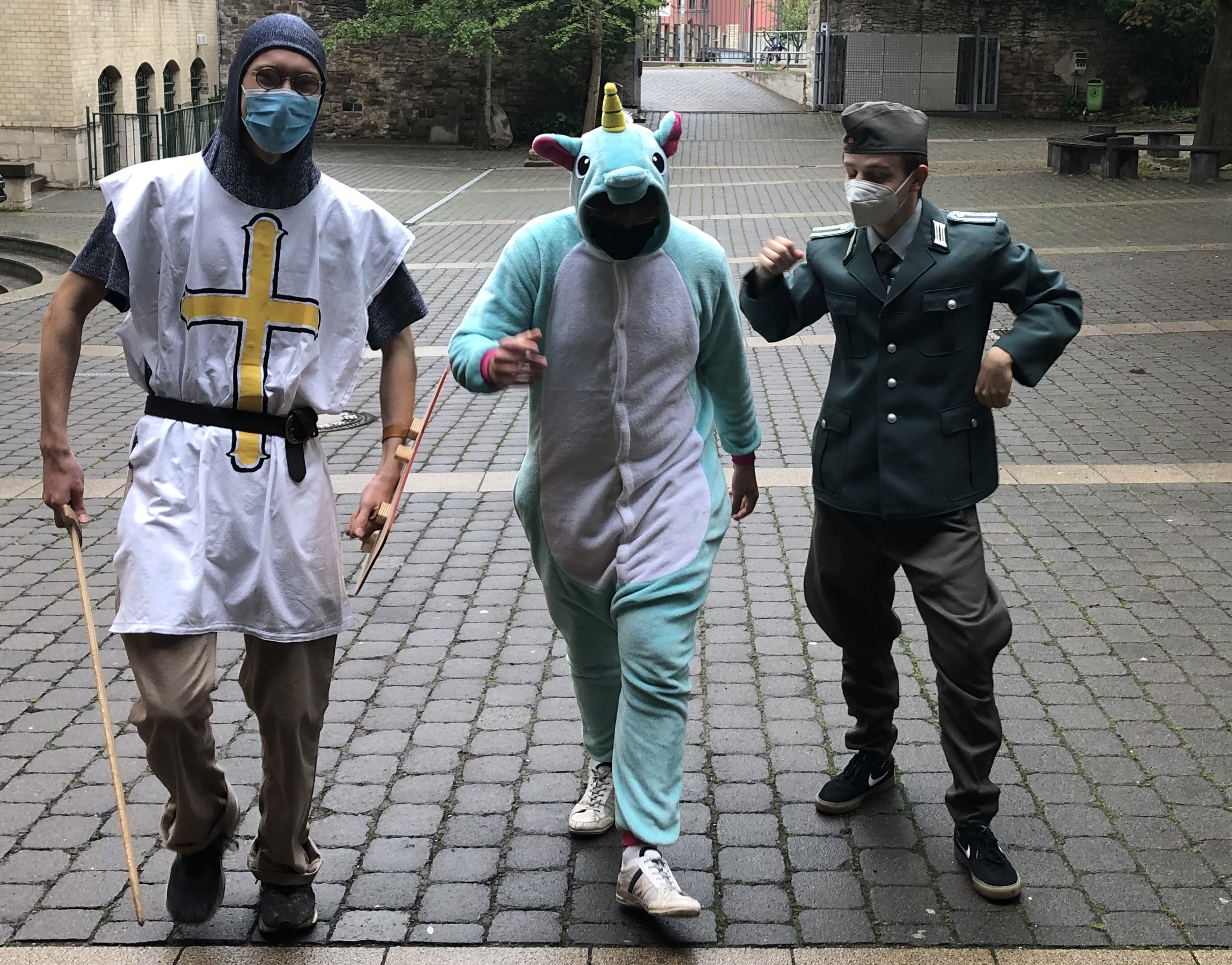 Um so verständlicher war die Sehnsucht nach etwas Abwechslung. Der Drang nach außergewöhnlicher Kostümierung war einige Abiturienten wirklich anzumerken. Ob Kindheitshelden, Zeitreisende oder Erstklässler, die Fantasie war in den einzelnen Themenbereichen grenzenlos. So sprangen zwischen Dinosaurier, Legionär und Volkspolizist auch Hippies, Einhörner, Detektive und andere Gestalten herum.