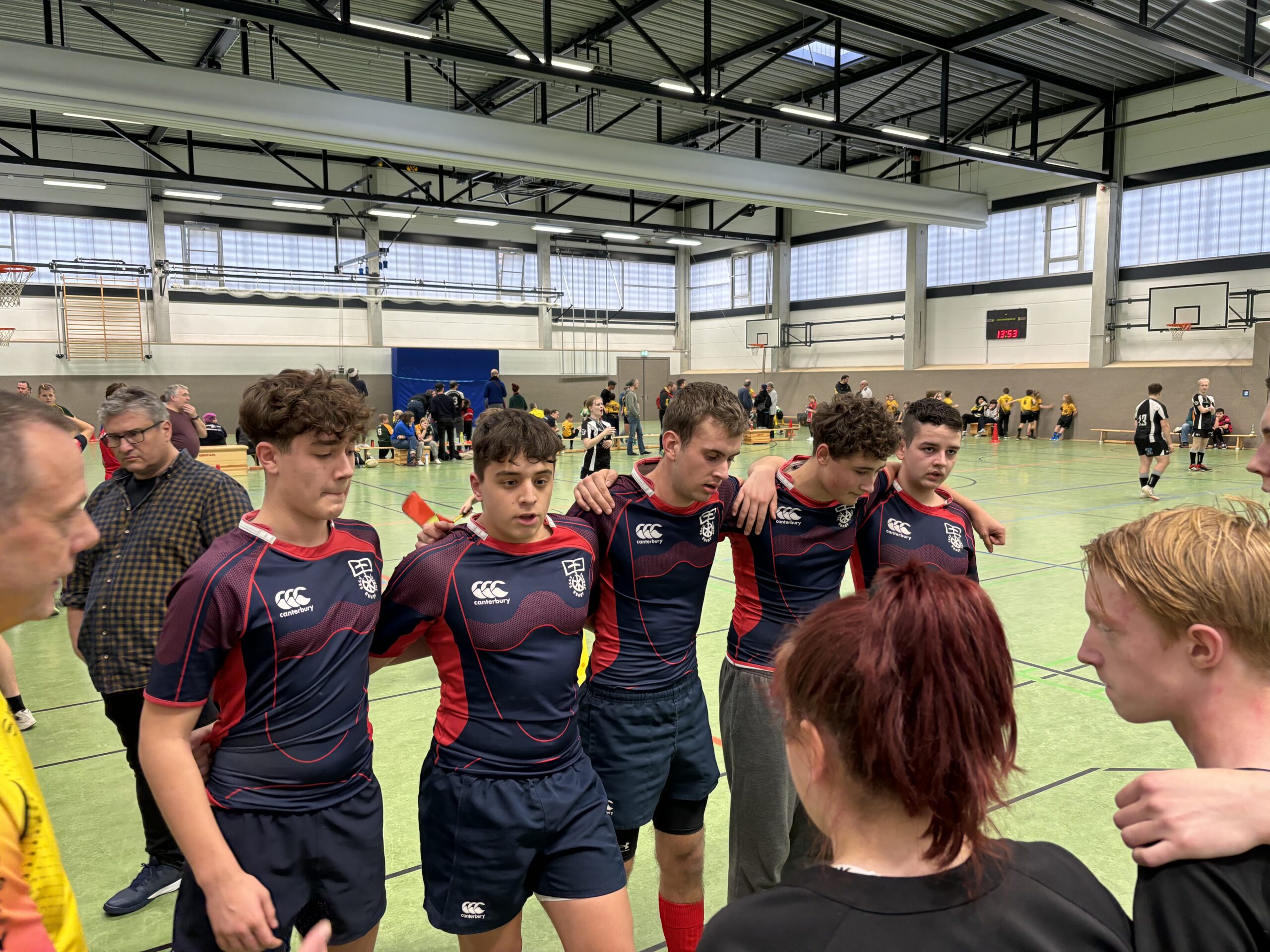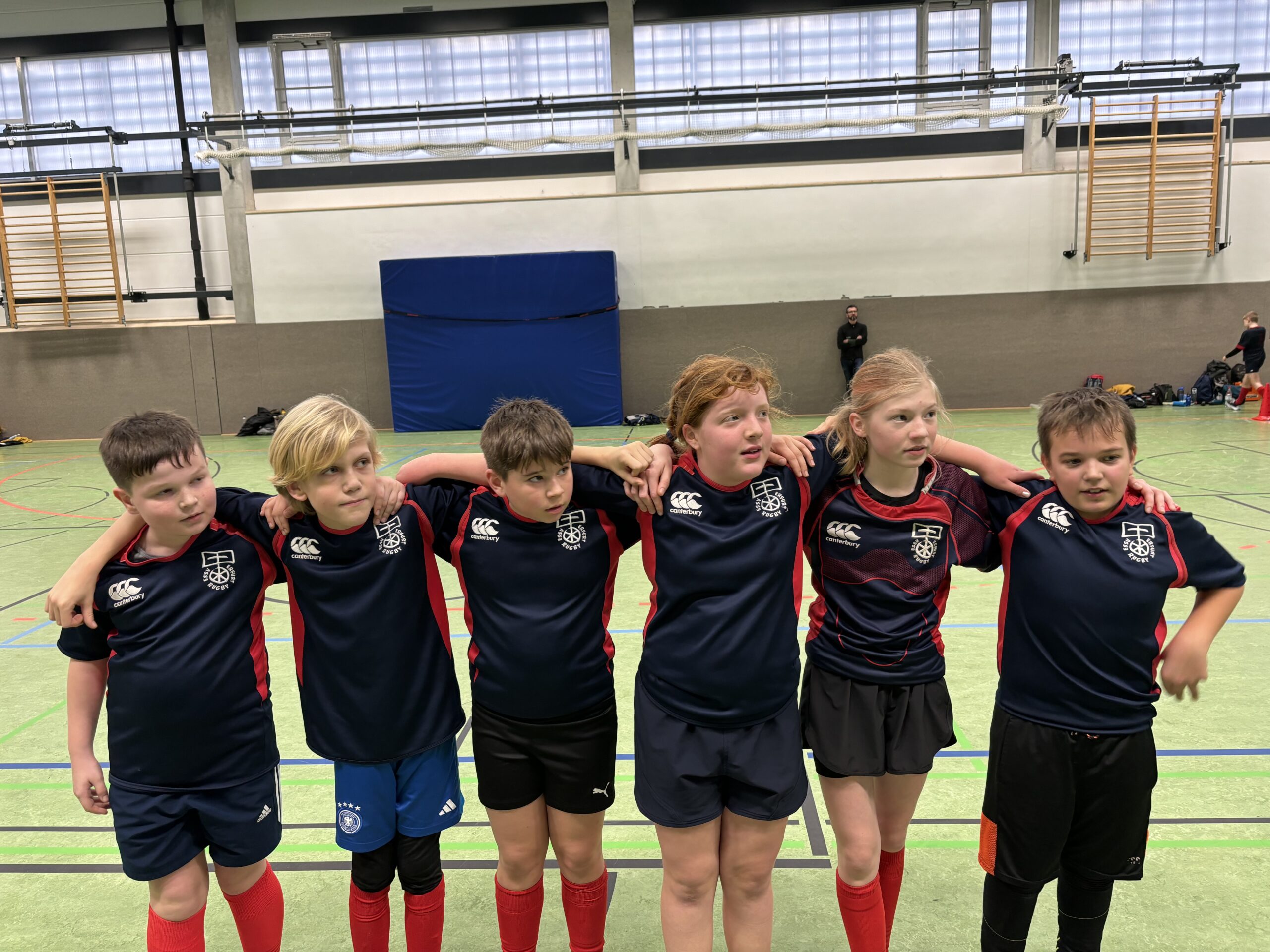 Der größte Jubel brach jedoch nach dem dritten Spiel der U12 aus. Nachdem die ersten beiden Spiele nur knapp gewonnen wurden, fehlte nur noch ein Sieg um den überhaupt ersten Turniersieg dieses Teams feiern zu können. Draußen fieberten die Großen mit und auf dem Feld gelang kurz vor Schluss tatsächlich der entscheidende Versuch. Nach einigen Lehrstunden bei den Turnieren der laufenden Saison war die Freude nunmehr grenzenlos und in der Klatschgasse der U14 und U16 genossen die Jüngsten sichtlich ihren ersten Triumph.