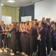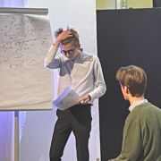 Durch diese gelungene Persiflage dieses speziellen Teil des Schullebens vermochten die Schüler*innen es überzeugend, ihre eigene Sichtweise zu präsentieren und die Elterngeneration aufs Korn zu nehmen. Darüber hinaus konnte man an den Reaktionen der anwesenden Eltern und Lehrer*innen erkennen, wie sehr die Jugendlichen mit ihrer Wahrnehmung immer wieder ins Schwarze getroffen haben. Das wurde spätestens bei der Wahl des Elternsprechers deutlich.