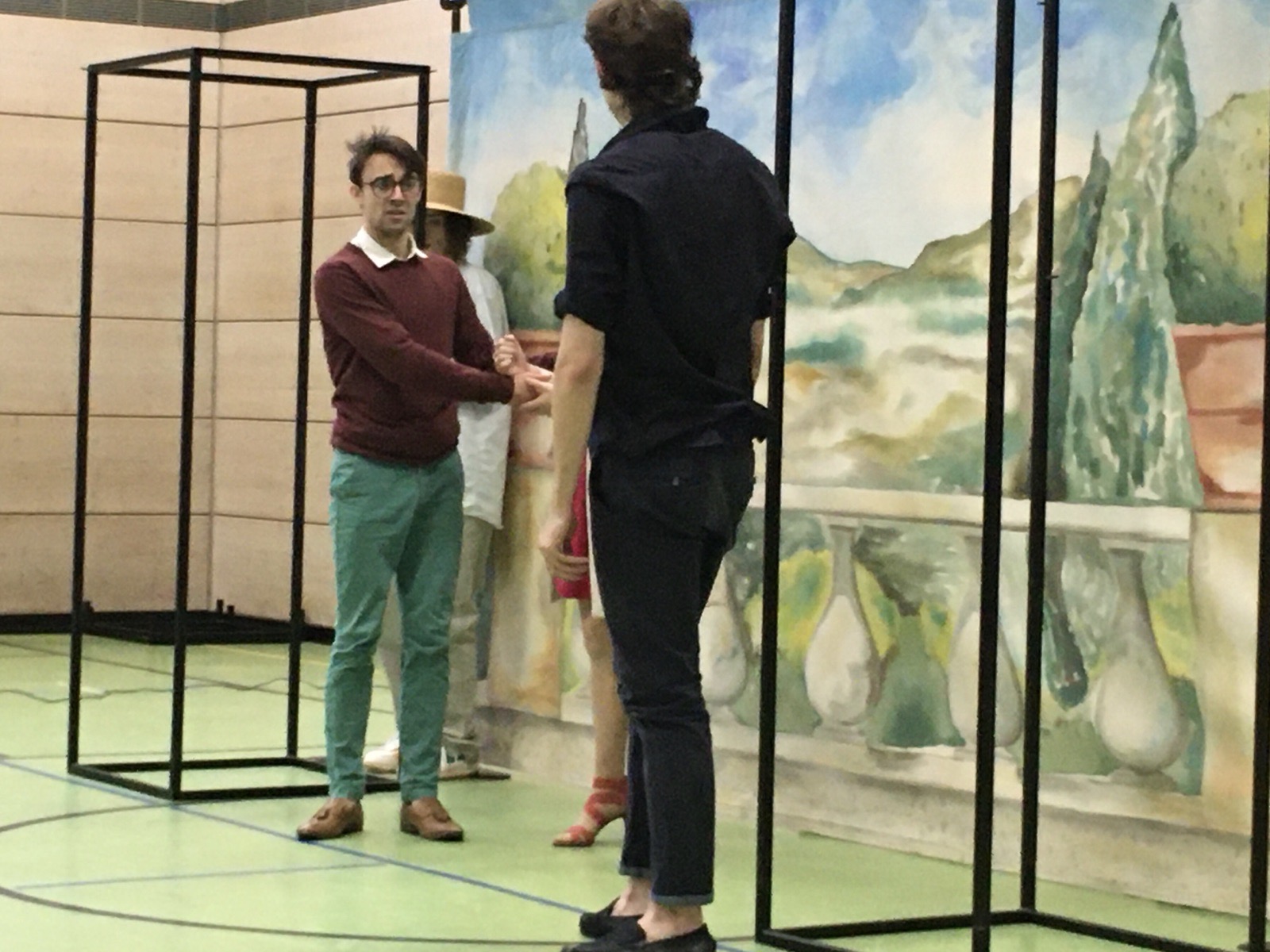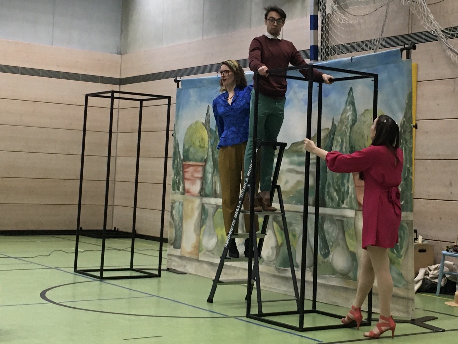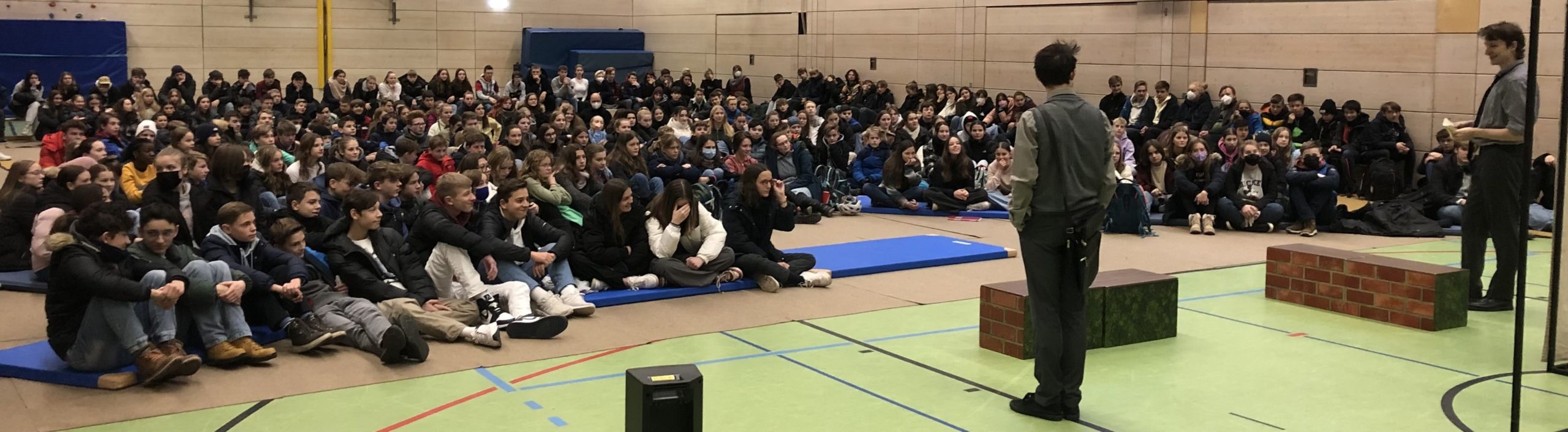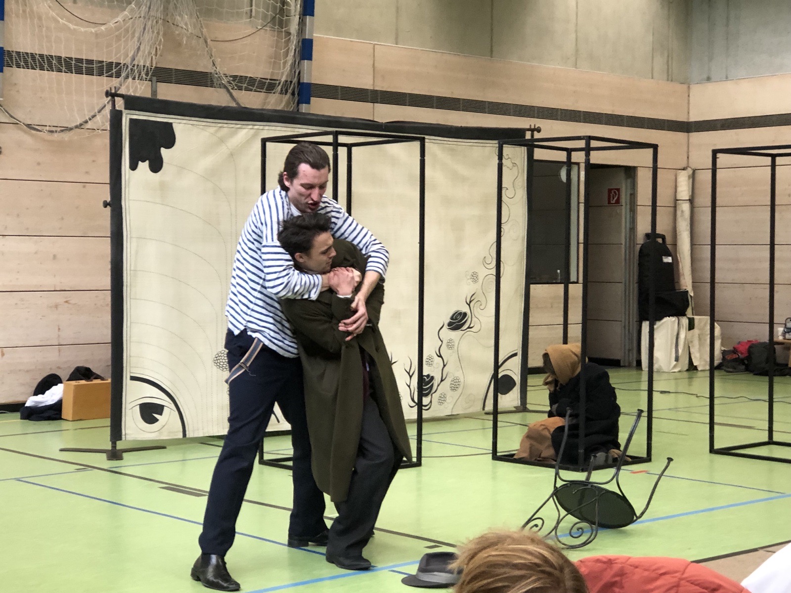 Mit englischsprachigen Adaptionen der Stücke „Two Gentlemen“ von William Shakespeare, sowie „The Picture of Dorian Gray“ von Oscar Wilde, begeisterte die White Horse Theatre Company unsere Schüler*innen. In zwei Vorstellungen – „Two Gentlemen“ für die Klassenstufen 8, 9 und 10, sowie „Dorian Gray“ für die Klassen 11 und 12 – zeigte das vierköpfige Ensemble seine Vielseitigkeit und Spielfreude, wobei immer wieder beeindruckend unter Beweis gestellt wurde, dass auch mit kleiner Besetzung komplexe Stücke mit vielen Charakteren mitreißend gespielt werden können. So verwandelte sich unsere Turnhalle im Nu in eine venezianische boarding school und bald darauf in das Atelier eines Künstlers. Und während bei den beiden Gentlemen noch Humor und Liebe den Ton bestimmten, wurden bei der Inszenierung von Dorian Gray ein wesentlich düsterer Ton angeschlagen und die tiefsten Tiefen der menschlichen Seele erforscht.