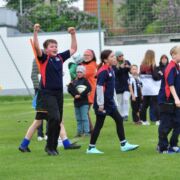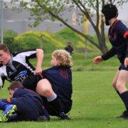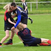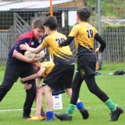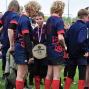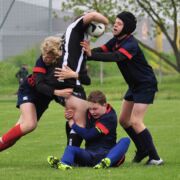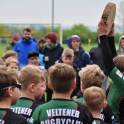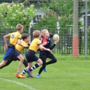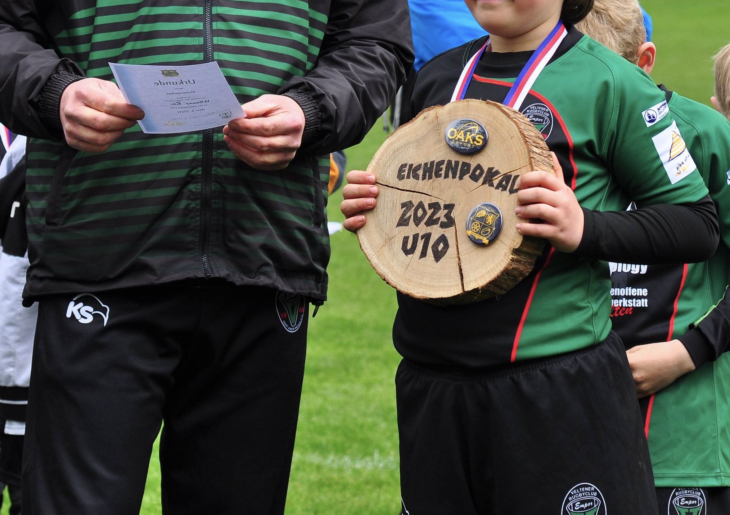 Auch in der U10 traten 4 Mannschaften an und dieses Turnier hatte es in sich. Am Ende des Tages standen drei Teams mit zwei Siegen und einer Niederlage da. So entschied letztlich die Differenz der Versuche über den Turnierausgang. Hier hatten die Gäste vom Veltener RC knapp die Nase vorn und konnten so die begehrte Eichentrophäe mit nach Brandenburg nehmen.