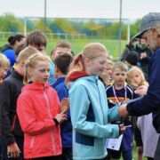 Den hatte um so mehr die U12 des Schulsportvereins, die pünktlich zum Heimturnier ihre Premierenteilnahme feierte. Nach einem Dreivierteljahr Schnuppertraining und zuletzt intensiver Vorbereitung nahm die Mannschaft des Trainergespanns Claudia Wiltzsch und Tobias Kräling erstmal an einem Turnier teil. Zur Begeisterung der zuschauenden Freunde und Familien legten sie gleich im ersten Spiel wie die Feuerwehr los und konnten ihren ersten Sieg einfahren. Auch wenn die beiden anderen Partien verloren gingen, zeigten die Spieler*innen tollen Einsatz und es war nicht zu erkennen, das fast das komplette Team zum ersten mal auf dem Platz stand. Die Vorfreude auf das nächste Turnier in Leipzig war allen schon nach dem letzten Spiel anzumerken, insbesondere, als sie ihre Medaillen und Urkunden entgegen nahmen.