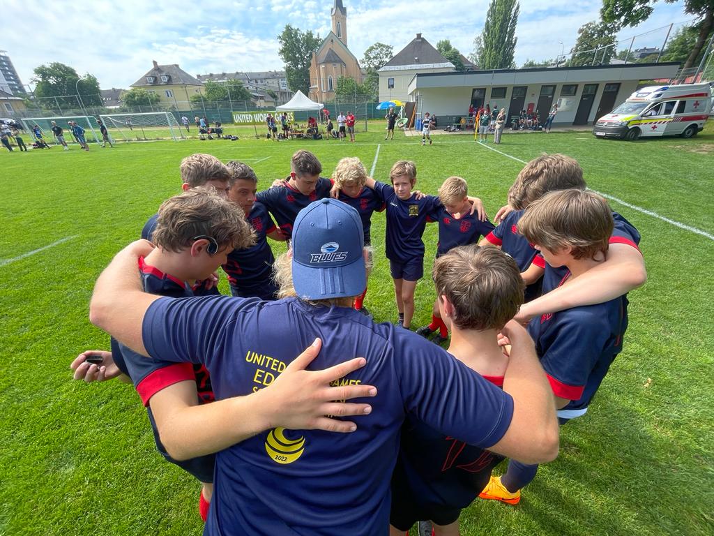 Als internationales Aushängeschild galt bei den United World Games 2022 in Klagenfurt insbesondere das Rugbyturnier, gingen hier doch Teams aus 8 Nationen an den Start. Die U14 des Edith-Stein-Schulsportvereins, die in diesem Jahr als einziges Team aus den nördlicheren Regionen Deutschlands die lange Anreise zu Europas größtem Jugendsportevent auf sich genommen hatte, wurde mit einer Traumgruppe belohnt. Zum ersten Mal nahm eine Mannschaft der traditionsreichen Rugbynationen aus der Südhemisphäre an dem Turnier teil und just die Schulmannschaft aus Thüringen durfte gegen das Team aus Südafrika antreten. Darüber hinaus startete ein Team aus Israel und die Mannschaft des besten österreichischen Nachwuchsvereins Donau Wien in der gleichen Gruppe.