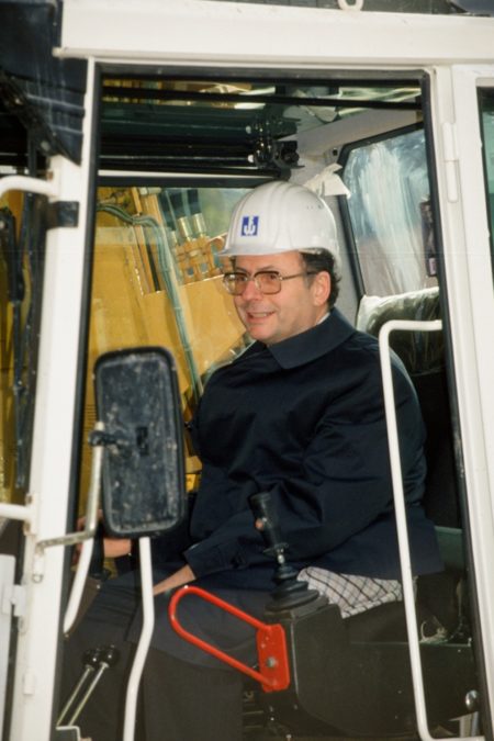 Bischof Joachim Wanke tatkräftig beim Spatenstich für den Erweiterungsbau der ESS im Jahr 1994 |