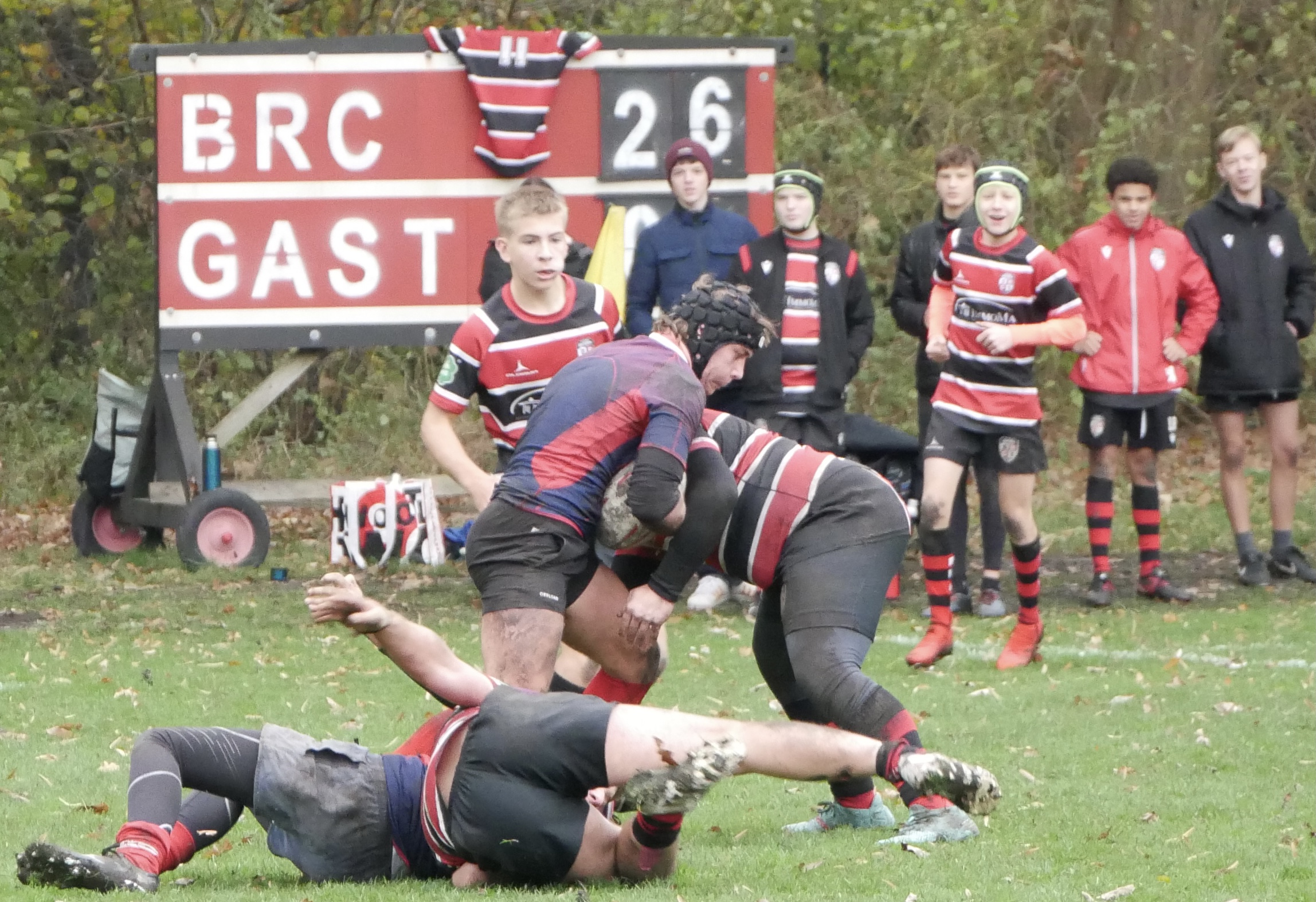 Nach vielen Erfolgen im 7er Rugby mischt der Edith-Stein-Schulsportverein gemeinsam mit dem RC Leipzig nun auch auf der großen Bühne des Sports mit. Zum Auftakt in die Premierensaison der Deutschen U16 Jugendliga/Staffel Ost wartete in der Berliner Jungfernheide mit dem Berliner Rugby Club gleich der dickste Brocken der Liga. Der BRC ist zahlenmäßig einer der größten Rugbyvereine Deutschlands und konnte in seiner Vereinsgeschichte bereits 35 Deutsche Meistertitel im Nachwuchsbereich verbuchen. Von allzu großem Respekt war dennoch seitens der Spielgemeinschaft nicht viel zu spüren. Direkt nach Anpfiff startete die starke Vordermannschaft eine furiose Angriffswelle und setzte sich mehrere Minuten in der gegnerischen 22m Zone fest, leider letztlich ohne Punkte mitzunehmen, da auch ein Straftritt aus der Distanz nicht sein Ziel zwischen den Goalstangen fand. Nachdem die Berliner kurz durchgeatmet hatten, gingen sie ihrerseits in den Angriffmodus über und konnten sich mit zwei Versuchen und einer Erhöhung etwas Luft verschaffen. Doch lange blieb die Null auf der Seite der Gäste nicht stehen. Einen schönen Durchbruch des Sturms vollendet Samu Zeh mit einem tollen Lauf und dem historisch ersten Versuch der sächsisch-thüringischen Spielgemeinschaft in der Deutschen Jugendliga. Auch wenn beim Stande von 12:5 in der Mitte der ersten Halbzeit noch einmal Hoffnung aufkeimte, ließen die Hausherren bald keinen Zweifel mehr daran, wer hier als Sieger vom Platz gehen würde. Den Sturmläufen der Spielgemeinschaft setzten sie ihre eigene Physis entgegen, waren in den Rucks in dieser Phase oft einen Tick schneller am Ball und konterten im Gegenzug die Erfurter und Leipziger über ihre schnelle Außen eiskalt aus. Nach zwei weiteren erhöhten Versuchen ging es mit 26:5 in die Halbzeitpause.
