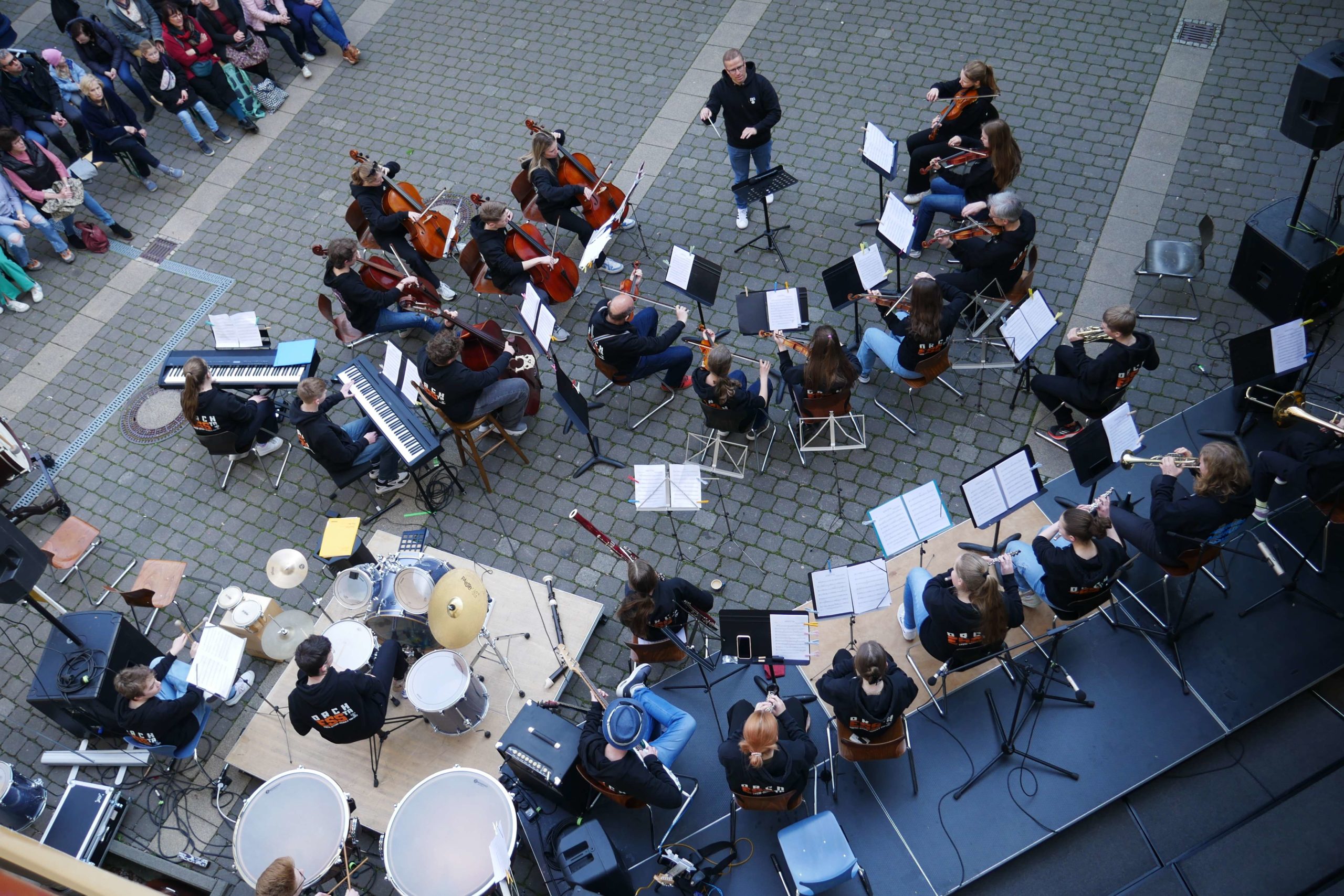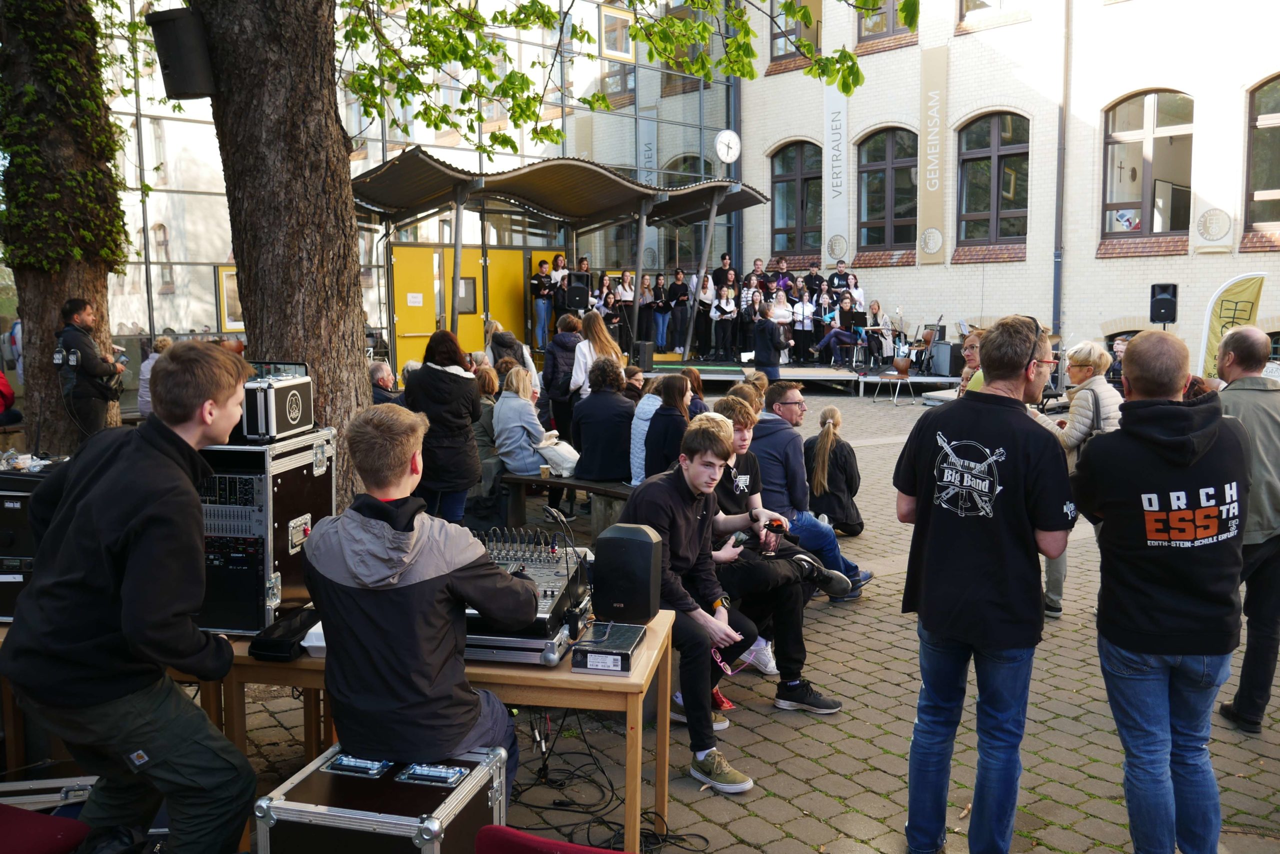 Mit leichter Verspätung machte um 17 Uhr das orch.ESS.ta den Auftakt. Was in den nächsten 120 Minuten folgte waren beeindruckenden Einblicke in das aktuelle Programm der verschiedenen Orchester und Chöre, die vertraute, teils lang nicht mehr gehörte Melodien und Lieder neu interpretierten und stimmungsvoll dem begeisterten Publikum darboten. Nach über zwei Stunden vollgepacktem Programm, nebst technischem Umbau sowie Auf- und Abgang der Ensembles gab es für die Zuhörer noch einen Höhepunkt, mit dem nicht viele gerechnet hatten. Alle 120 Aktiven versammelten sich im Bühnenbereich, um gemeinsam den Coldplay Song „Viva La Vida“ in einer stimm- und instrumentalgewaltigen Version vorzutragen. Das hinterließ Wirkung, wie der anschließende Applaus deutlich machte.