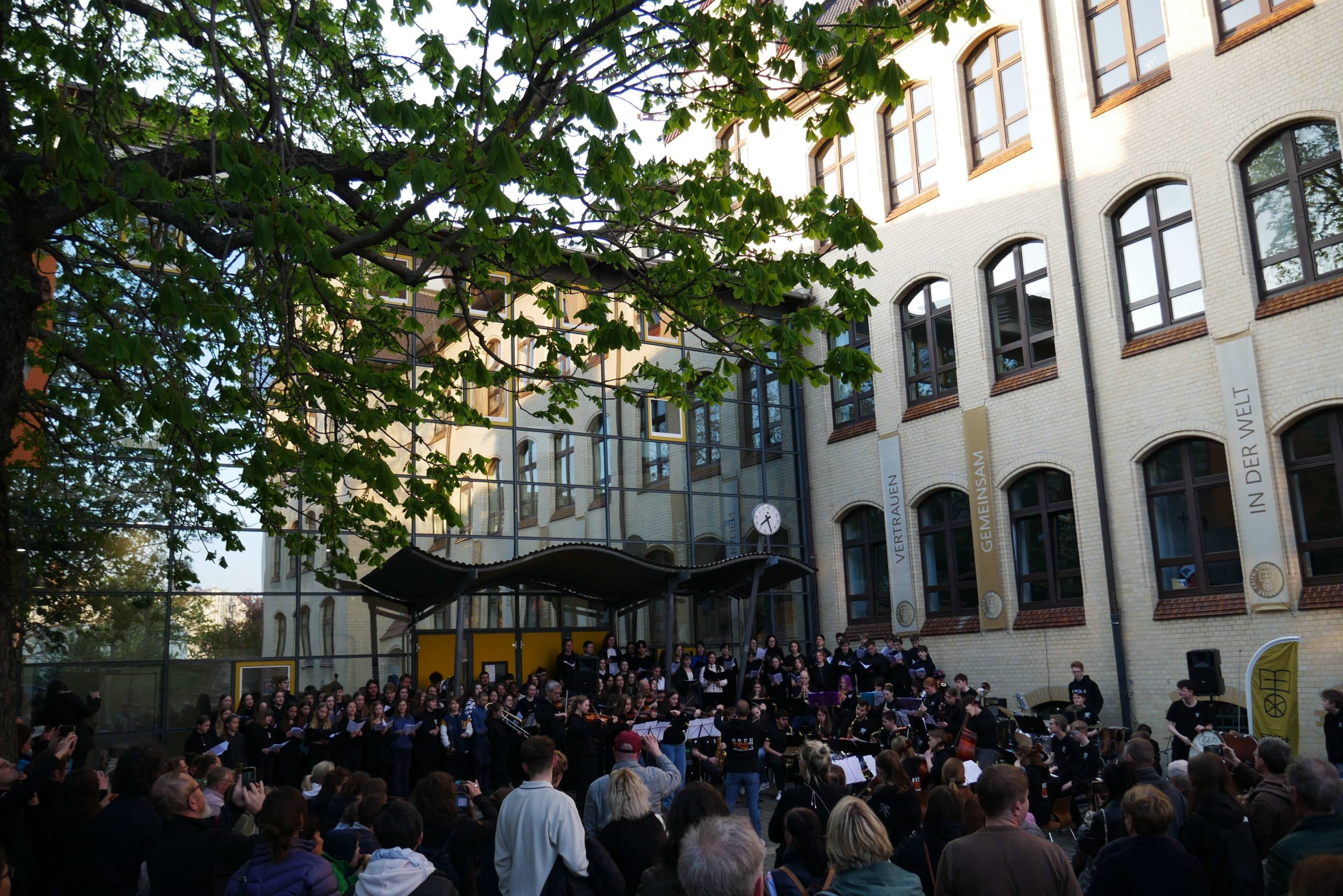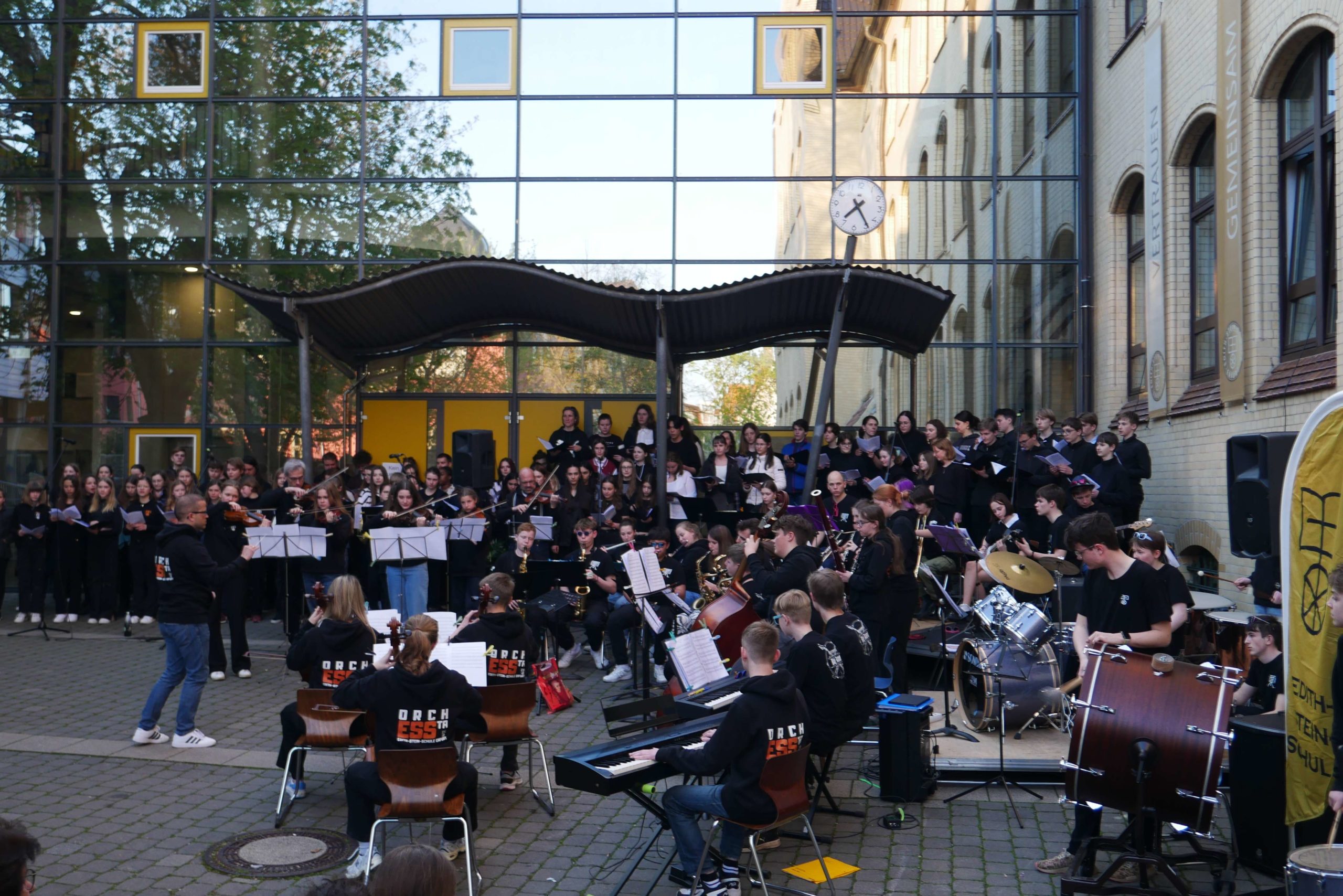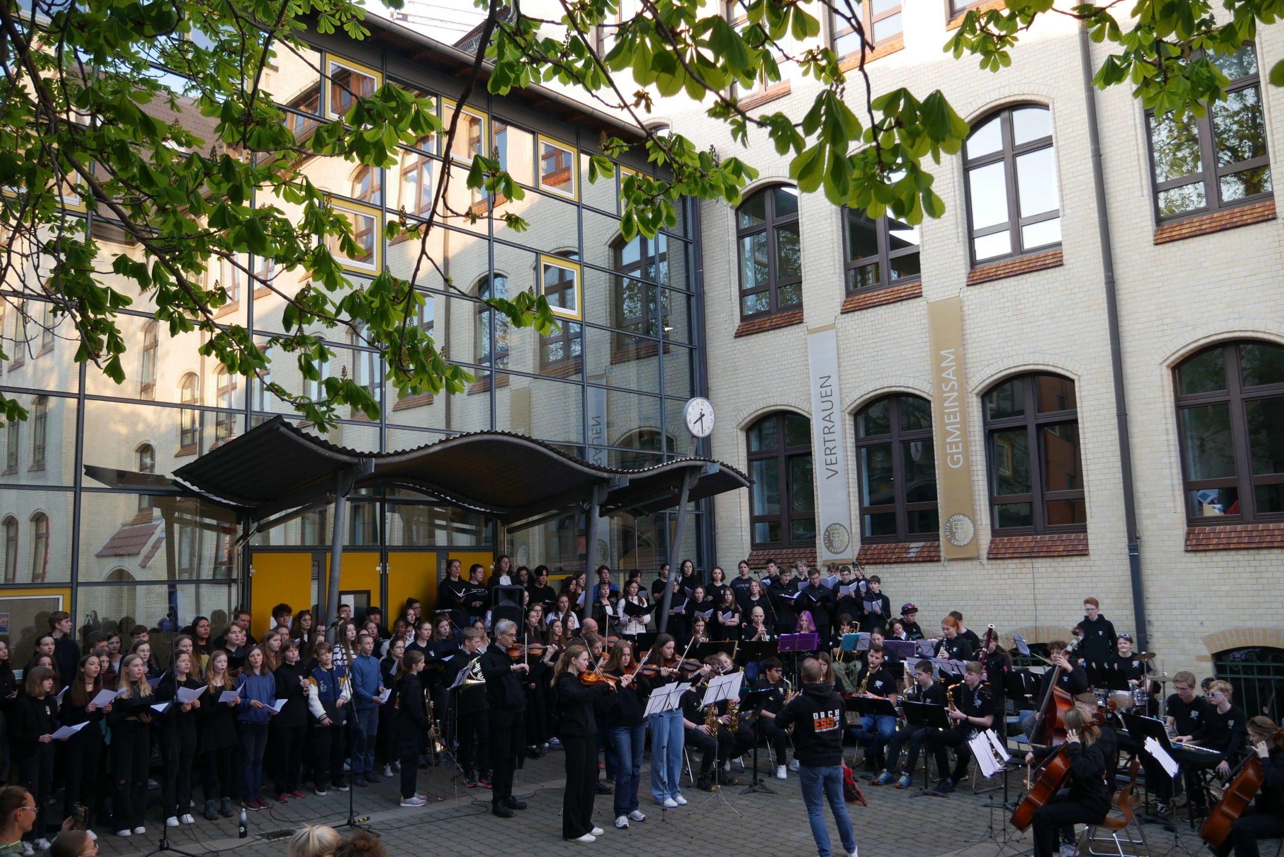 Ein großes Dankeschön geht an alle Musizierende und Sänger*innen, die Chor- und Orchesterleiter*innen der drei beteiligten Schulen, sowie die Technik AG, alle Helfer und die 11er für einen tollen Abend.