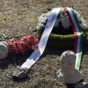 Ein Moment von besonderer Symbolik folgte auf die Kranzniederlegung. In Tandems aus Jugendlichen und Angehörigen ehemaliger Häftlinge wurden kleine Tonskulpturen niedergelegt – gestaltet nach Fotografien früherer Ohrdruf-Häftlinge und gefüllt mit Vergissmeinnicht-Samen. Der ungebrannte Ton wird mit der Zeit vergehen, die Pflanzen werden keimen – ein poetisches, stilles Gedenken, das mit der Natur weiterlebt. Unweit davon war eine Installation aus Betonstelen und Reliefs nach Abbildern der Toten zu sehen – ein Projekt einer Arnstädter Schule.