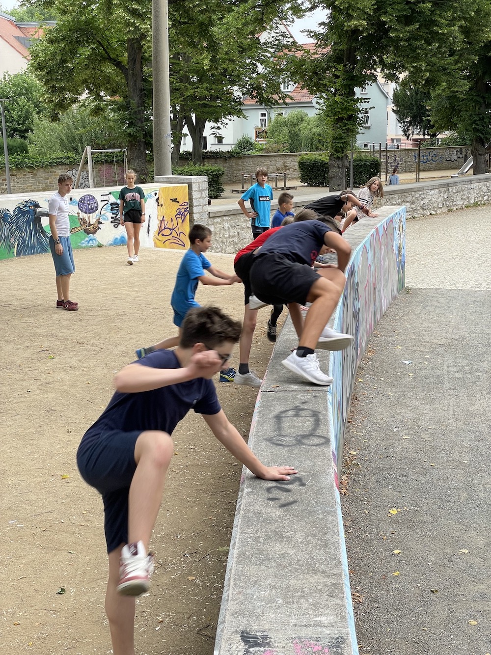 Schüler der 5.-7. Klassen haben im Rahmen der Projekttage unter professioneller Anleitung mit Trainern des Parkour Erfurt e.V. geübt, wie man sich in urbaner Umgebung sportlich betätigen kann und dabei Kraft und Geschicklichkeit trainiert. (mehr)