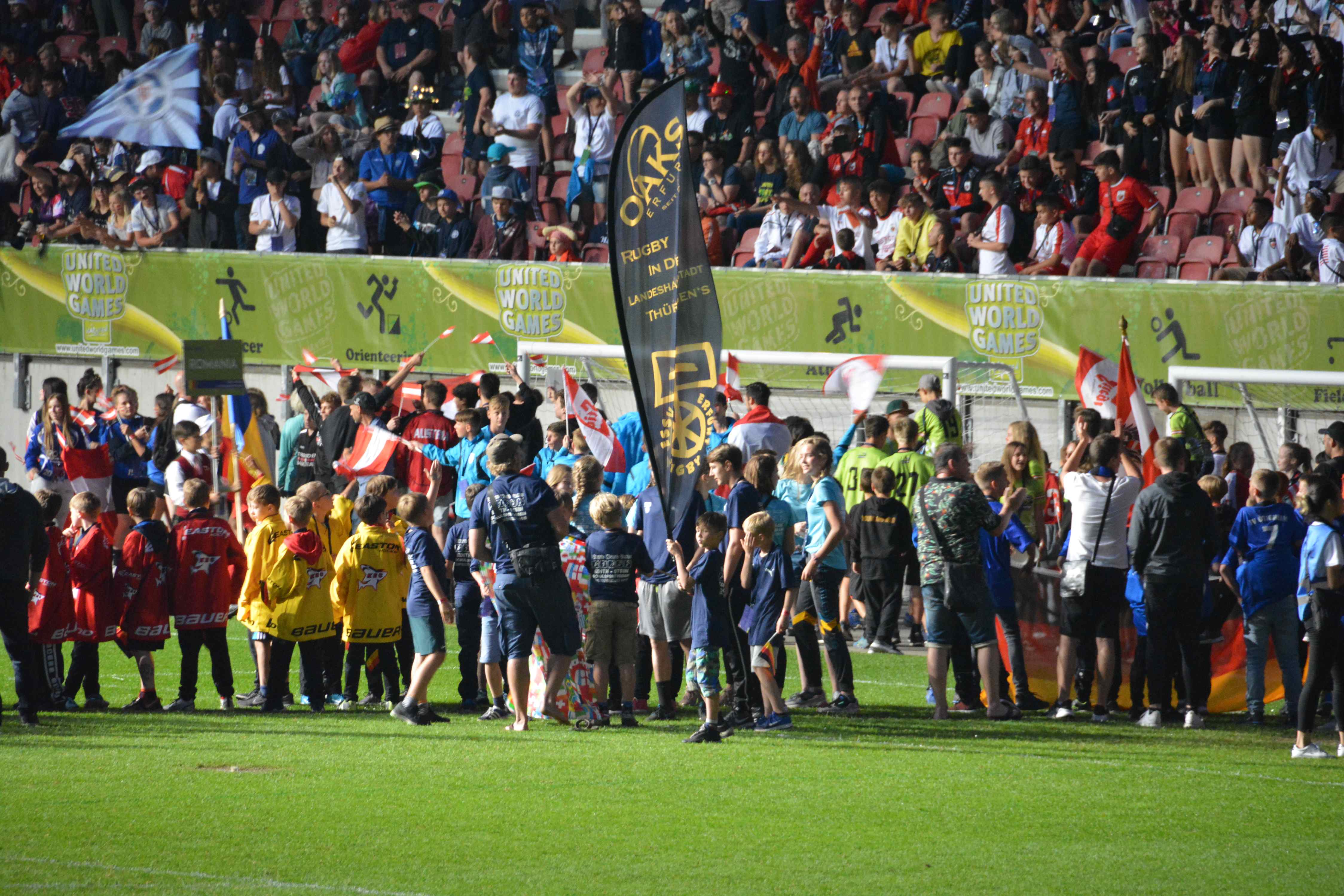 Über 8000 Teilnehmer kamen vom 16.-19. Juni 2016 aus aller Welt nach Klagenfurt/Österreich um sich in den unterschiedlichsten Disziplinen zu messen. Der Edith-Stein-Schulsportverein war bei seiner zweiten Teilnahme mit 35 Aktiven gut vertreten und konnte mit seinen drei Rugbyteams Turniererfahrungen auf internationalem Niveau sammeln. Erstmals starteten bei diesem Großevent zwei Leichtathletinnen unserer Schule. Unter den Augen ihres Trainers Florian Poser konnte sich Fine Dennin im Kugelstoß und Hochsprung den vierten Platz erkämpfen. Teamkollegin Clara Ladewig verpasste im Weitsprung noch knapp das Treppchen, trumpfte dann aber im Hochsprung auf und konnte die Konkurrenz für sich entscheiden. Neben der umjubelten Goldmedaille waren es aber vor allem die Erfahrungen und Erlebnisse neben dem Platz, die für alle Sportler unvergesslich bleiben werden. Dazu gehörten mit Sicherheit die große Eröffnungsfeier im Stadion und die Players Party am letzten Abend, aber auch der Sprung in den kühlenden Wörthersee und die Gespräche am Spielfeldrand mit der internationalen Konkurrenz sind bleibende Erinnerungen. Ein besonderer Dank gilt neben den vielen kleinen Spendern dem Förderverein, der diese unvergessliche Fahrt mit seinem Beitrag ermöglicht hat.