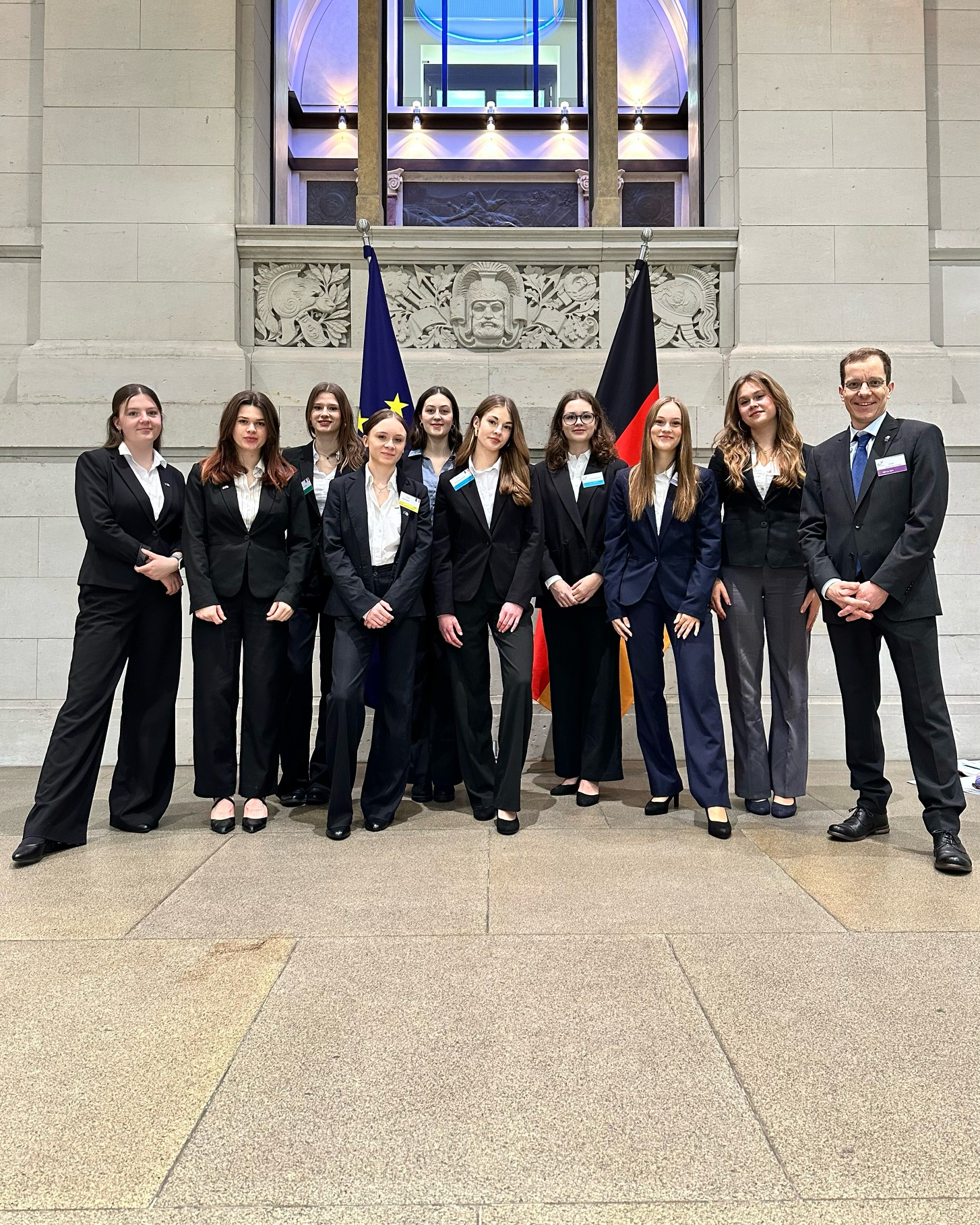 Wir, die Edith Stein Schule und insbesondere die 11 Teilnehmenden und Begleiter am diesjährigen MEP, wollen uns herzlich bei Ihnen für die Unterstützung durch die Übernahme unserer Fahrtkosten bedanken. Wir alle hatten eine unvergessliche und spannende Woche in Berlin in der wir viel gesehen und gelernt haben. Als wir in unserer Unterkunft ankamen, waren wir aufgeregt, aber auch unglaublich gespannt, was uns erwarten wird. Schicke Klamotten, Ausschusssitzungen, zahlreiche Debatten und ein straffer Zeitplan; all das sind Dinge, die das MEP ausmachen. Aber dazu gehört noch viel mehr. Die neuen Eindrücke die wir sammeln durften, der Stolz über die fertige Resolution, das Gefühl, als man das erste Mal im Bundesrat an den Ministertischen sitzen durfte, die Aufregung vor den Plenardebatten. Die unsrer Meinung nach viel zu kurze Woche hat uns viel Arbeit und wenig Schlaf gekostet, aber vor allem viel Leidenschaft, Spaß und Freude bereitet. Dieses besondere Jahr, das 25-jährige Jubiläum des Modell Europa Parlament, war für uns eine besondere Erfahrung, an die wir uns gerne zurückerinnern werden. Und für manche von uns hat die MEP Reise gerade erst angefangen. Unser Dank gilt dabei auch vor allem Ihnen, denn sie haben uns durch die Übernahme der Fahrtkosten eine großzügige preisliche Entlastung gegeben, sodass es uns möglich war, die Woche in vollen Zügen zu genießen; ohne dass weitere Zug-Kosten auf uns zukamen.