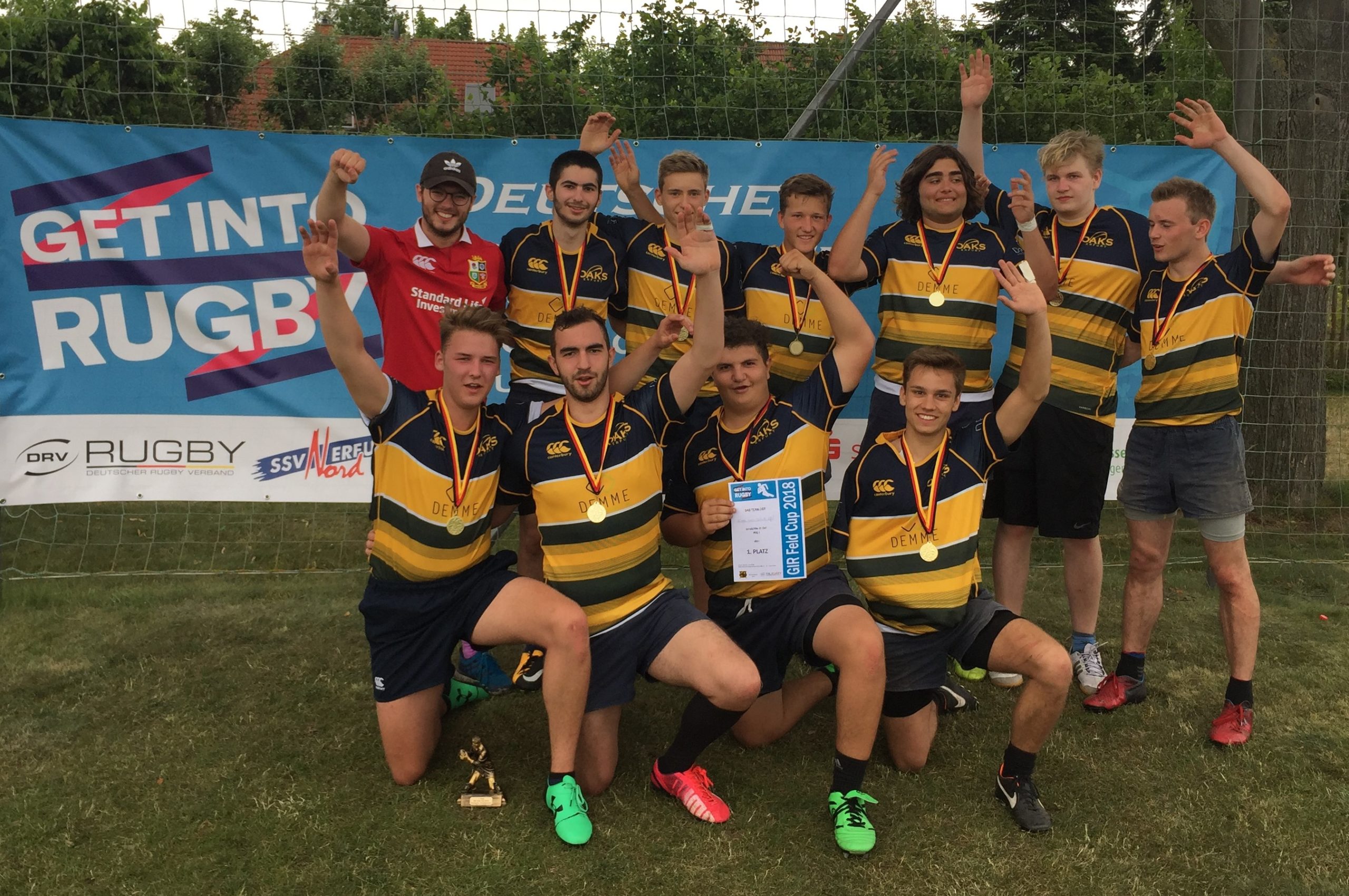 Die Deutschen Rugby Schulmeisterschaften fanden zum zweiten Mal nach 2014 in Erfurt statt und was vor vier Jahren nicht gelang, schaffte die U18 Mannschaft der Schule 2018 souverän. Beim Heimturnier wurde endlich auch der Siegerpokal und damit insgesamt der 3. Meistertitel für die Edith-Stein Schule geholt.