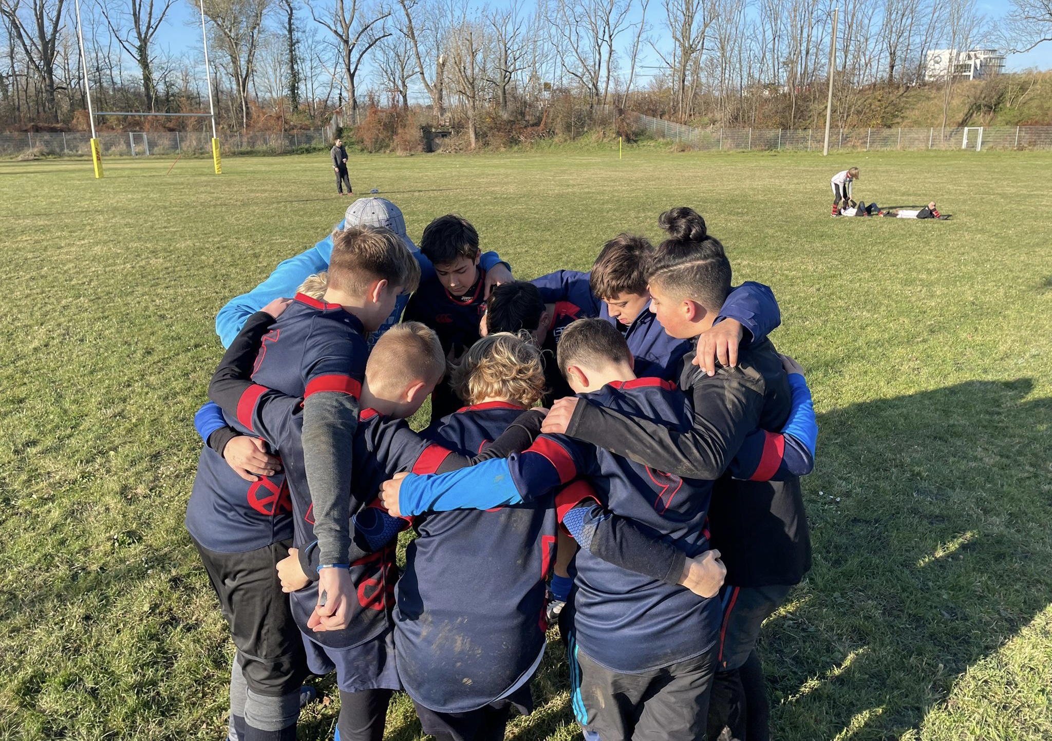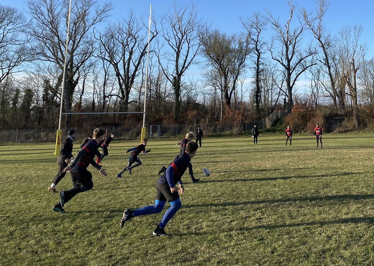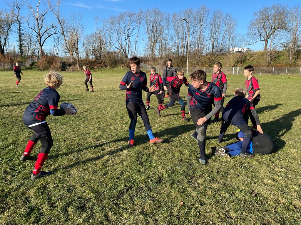 Mit etwas mehr taktischer Vorbereitung und Aufwärmen machte es dann die U12 deutlich besser und fegte die Mannschaft der Leipzig Skorpions mit 40:5 regelrecht vom Platz. Vielleicht half dieser Erfolg auch den Großen, den Schock der Auftaktniederlage zu verdauen. Im zweiten Spiel gegen die Rugbyunion Hohenneuendorf saßen die Tackles wieder, die Pässe kamen an und es gelang Lücken in die gegnerische Verteidigung zu reißen. Mit einem Try-Saving Tackle an der eigenen Mallinie kurz vor Abpfiff sicherten sich die Edith-Stein-Schüler den denkbar knappen 20:15 Erfolg gegen die favorisierten Hohenneuendorfer.
