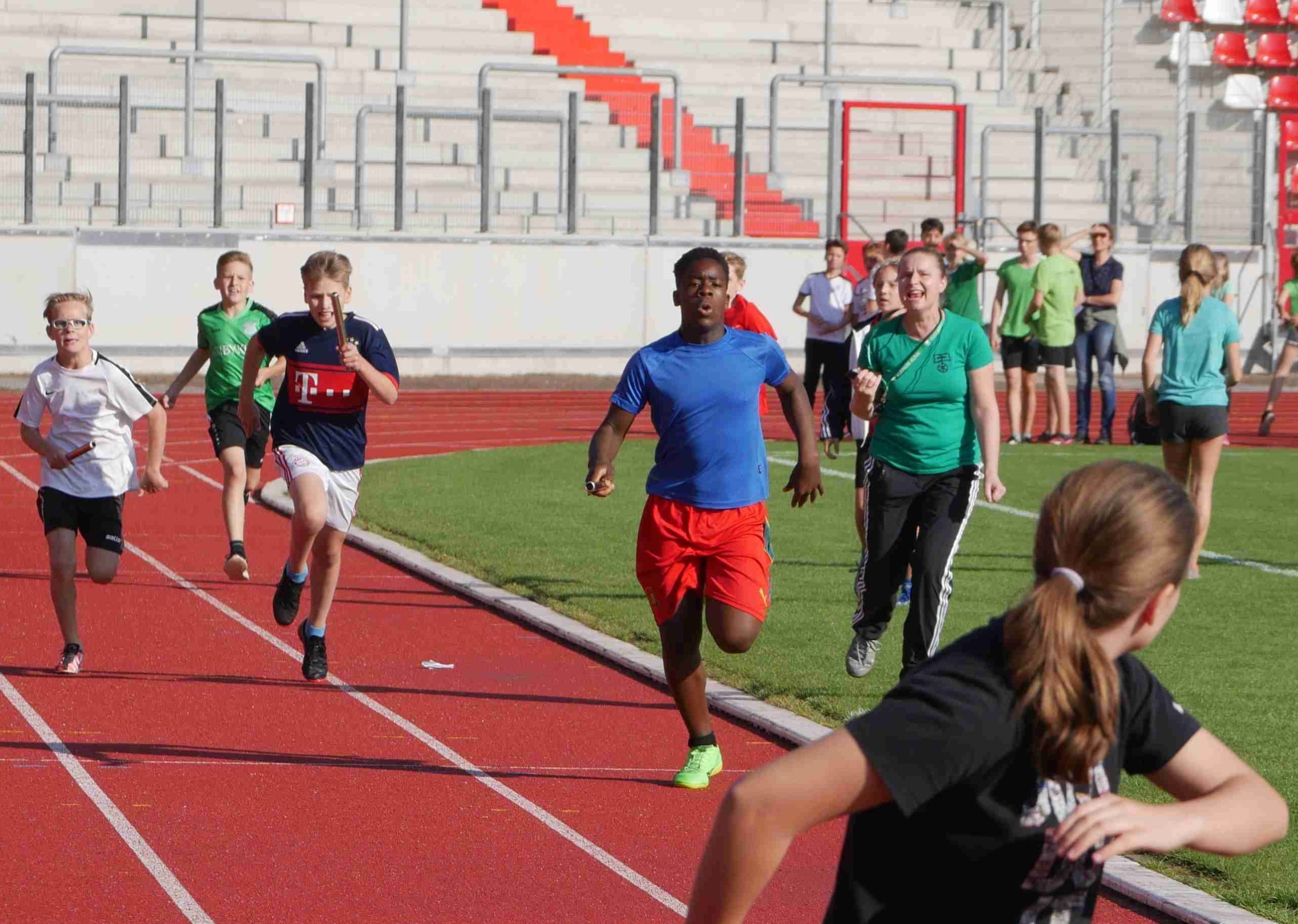 Die letzte Sommersonne schien auf unsere Schüler, als sie sich im Stadion beim Sprint, Weitsprung, Kugelstoßen, Ballwurf und spannenden Klassenstaffelrennen miteinander maßen.