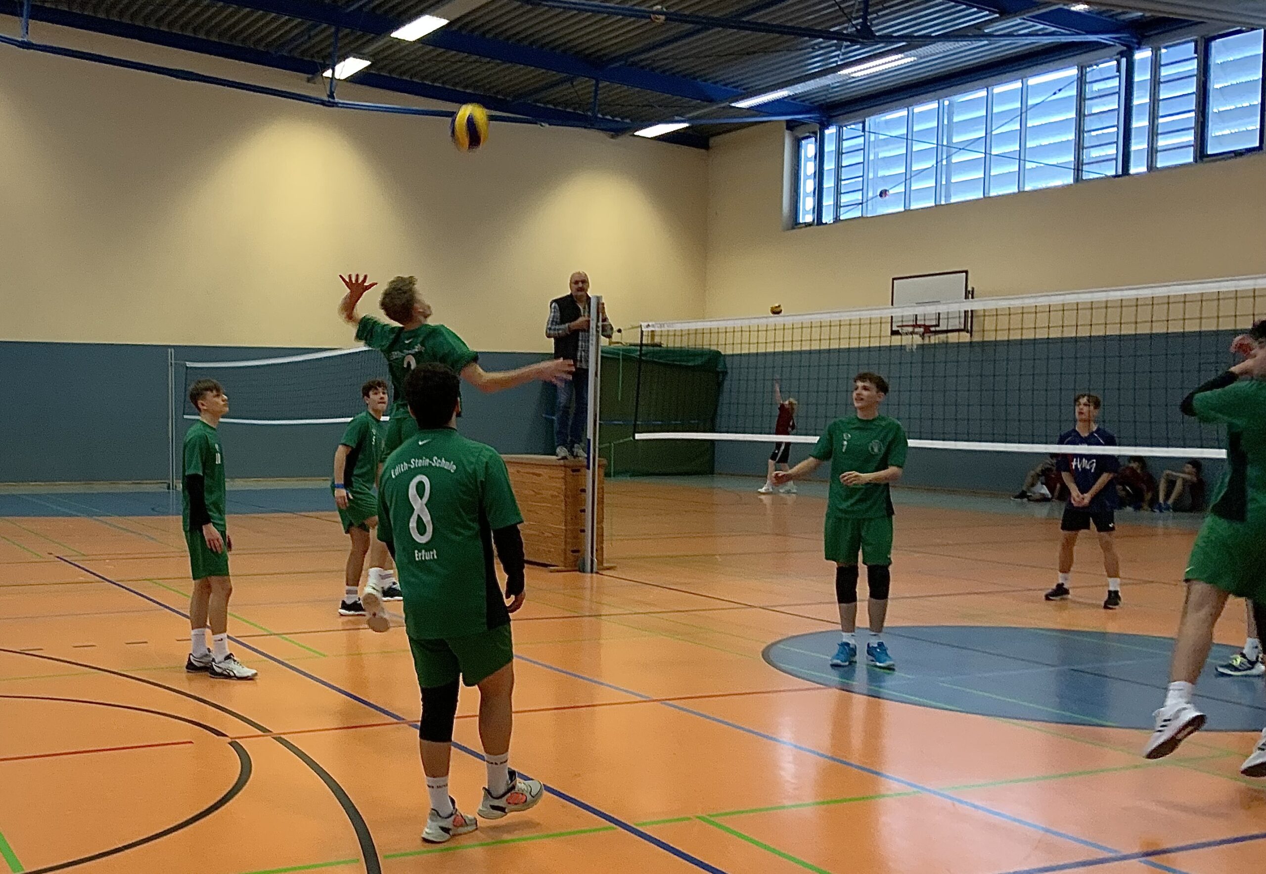 Der nach der letztjährigen Rückkehr zweite Auftritt der WKII Volleyboys bei Jugend trainiert für Olympia reichte zwar nicht für die Qualifikation für die nächste Runde, jedoch scheiterten sie nur denkbar knapp. Zunächst wurde das Heinrich-Mann Gymnasium in zwei Sätzen mit 25:15 und 25:4 besiegt. Auch im zweiten Spiel gegen das Albert-Schweitzer Gymnasium starteten unsere Jungs mit einem 25:20 Satzsieg, jedoch drehte das Team aus dem Rieth noch das Spiel und nach 22:25 und 7:15 sicherten sich die ASGler den Platz im Schulamtsfinale. Die Enttäuschung war den Edith-Stein Schülern anzumerken, Trainerin Frau Steffen war aber überaus zufrieden mit dem Auftritt.