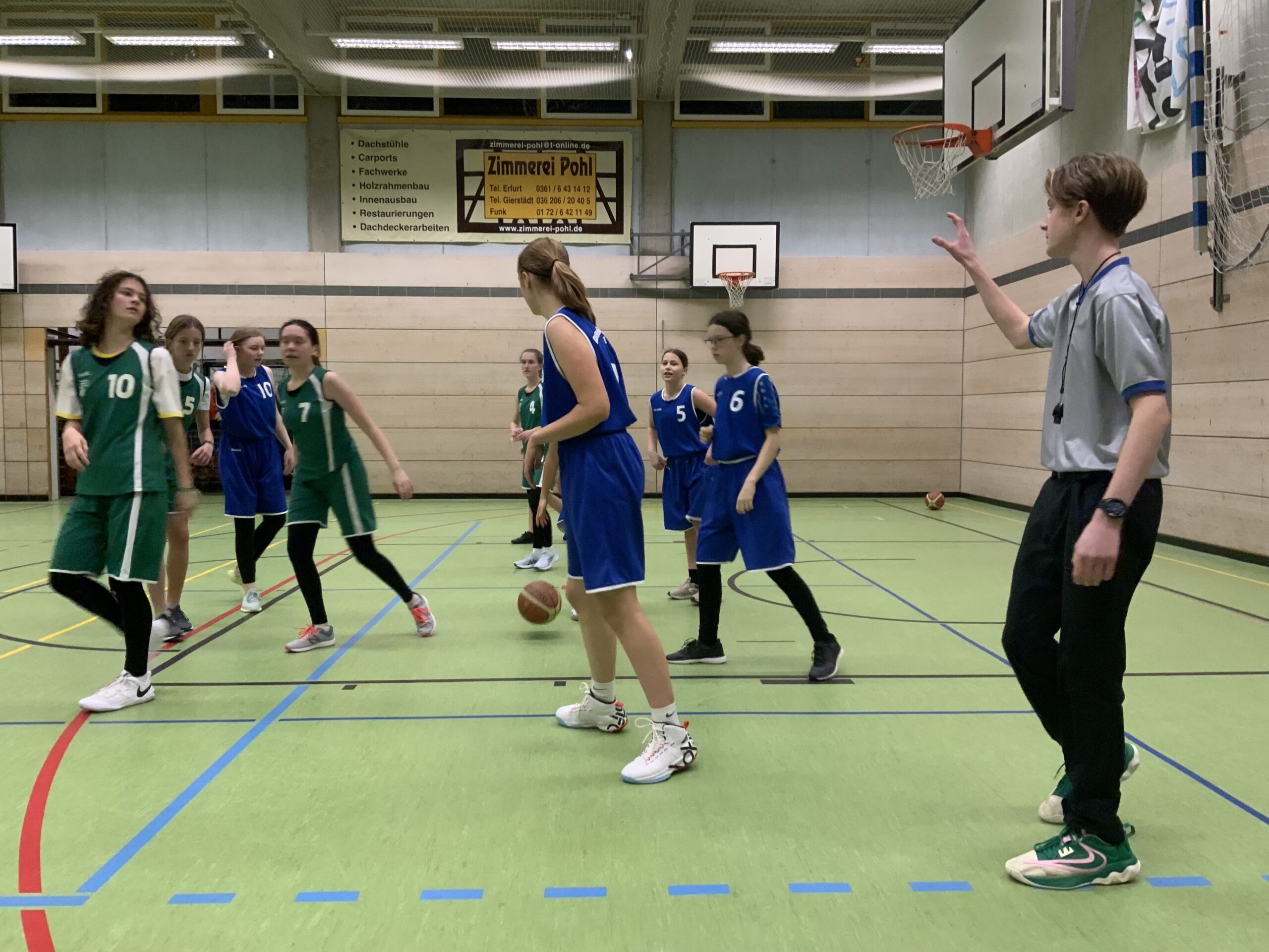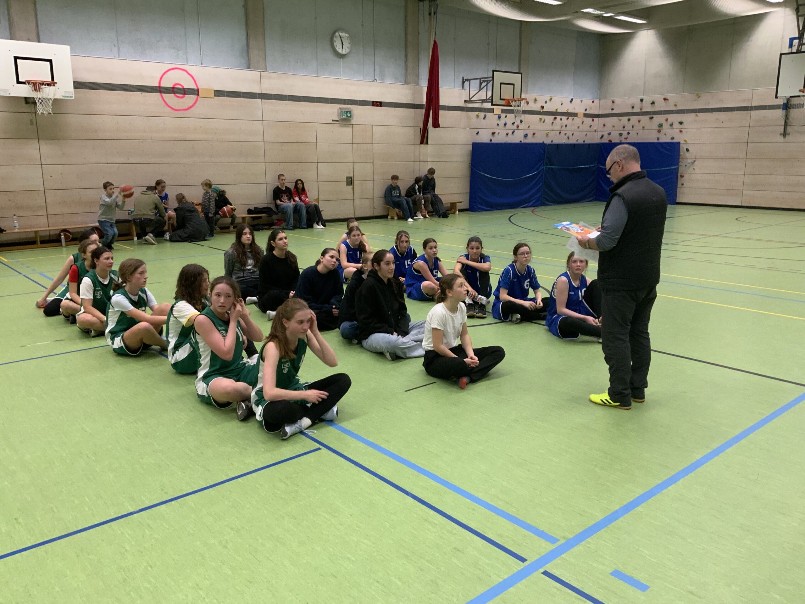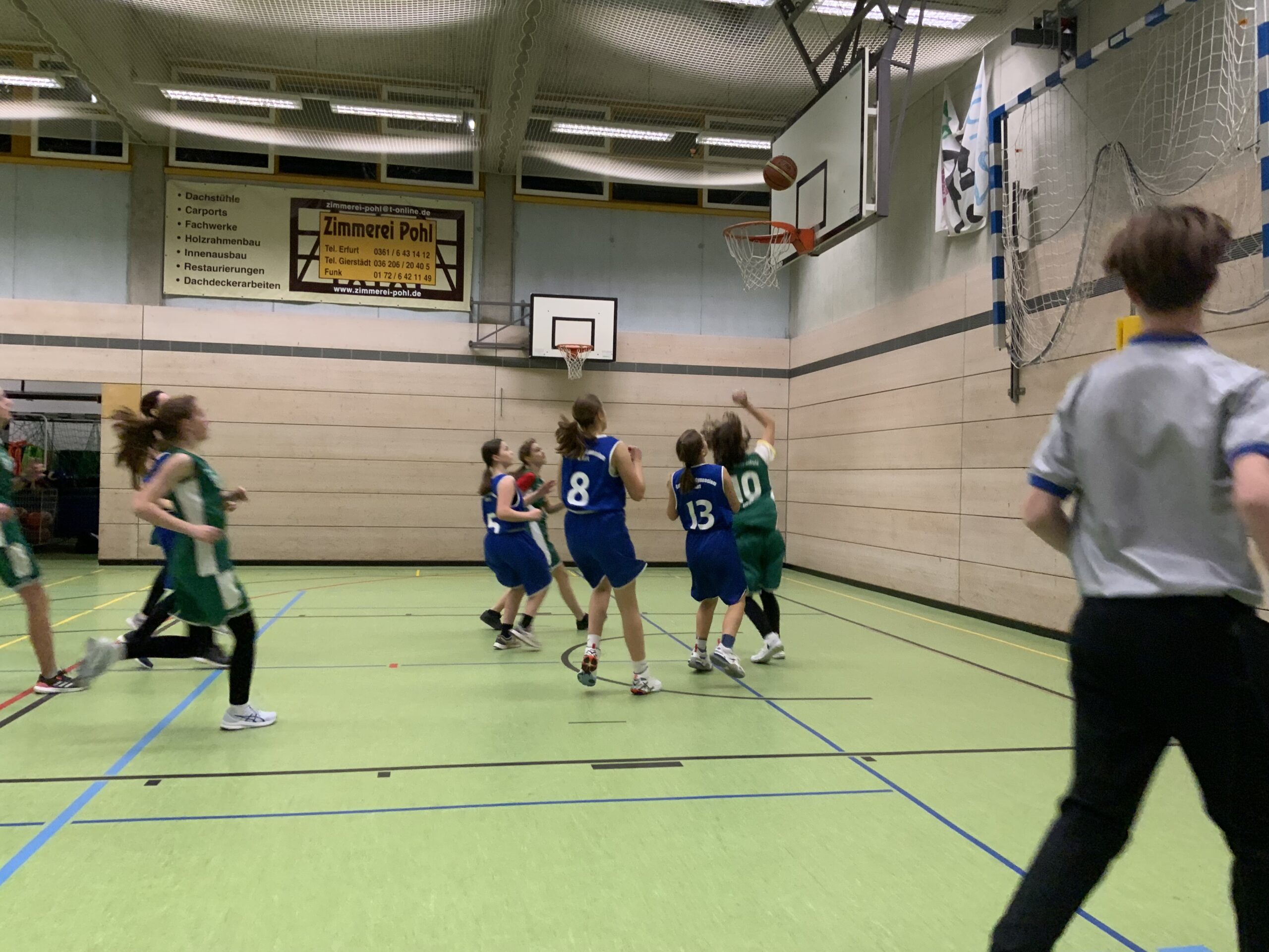 Beim Basketball waren es die WK II Mädchen, die sich in ihrem Stadtfinalturnier zunächst nach Verlängerung mit 10:8 gegen das Hannah-Arendt Gymnasium durchsetzten. Im zweiten Spiel wurde dann mit einem 8:4 Sieg gegen das Gutenberg Gymnasium der Einzug ins Schulamtsfinale perfekt gemacht. Besonderen Dank galt bei diesem Heimturnier den Schüler, die als Schiedsrichter oder in der Turnierleitung im Einsatz waren.