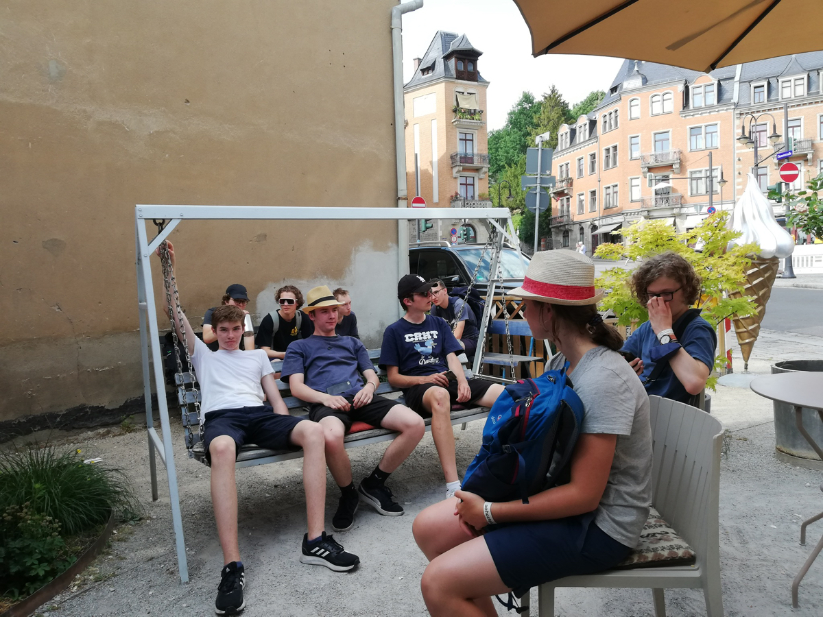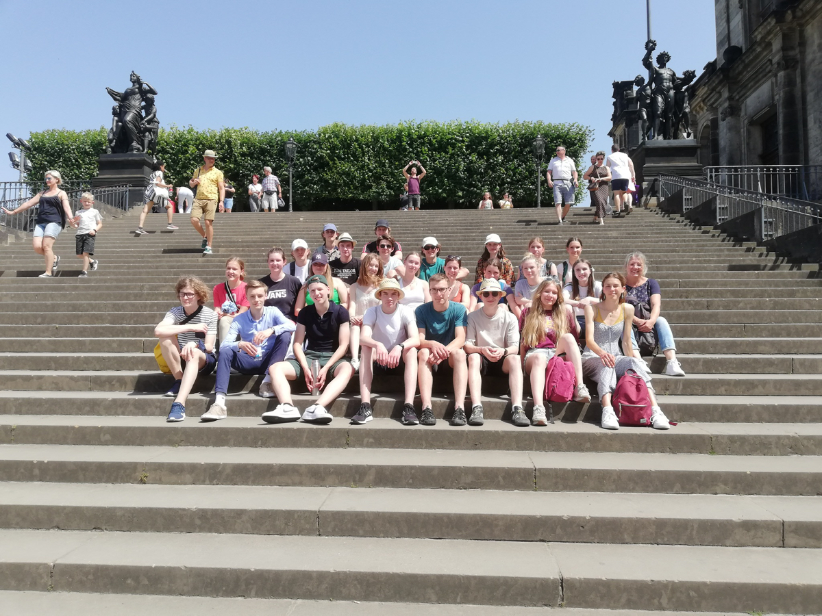 Endlich war es soweit! Nachdem in der 8. Klasse die Englandfahrt nicht stattfinden konnte und in der 9. Klasse die Reise nach Blossin nicht möglich war, machte sich die Klassen 10b mit ihren Begleitern Frau Seiler und Herrn Bartsch vom 18.-20. Juni 2022 auf nach Dresden. Die Gruppe verbrachte die Tage bei herrlichstem Sonnenschein – Hitzerekord von 39 Grad inklusive – und hatte dabei ein abwechslungsreiches Programm, d.h., ein Stadtrundgang, der Besuch der Alten Meister, der Besuch eines Gottesdienstes und eine Führung durch die Gläserne Manufaktur von VW standen ebenso auf dem Programm wie Erfrischungen an diversen Eisdielen, eine Wanderung rund um den Weißen Hirsch, der mit einem Bad in der Elbe endete sowie ein gemeinsames Essen an der Elbe im Schatten des Blauen Wunders, eines von Dresdens vielen Wahrzeichen. Alle waren sich einig, dass Dresden viel zu bieten hat und das gemeinsame Erlebnis ein gelungener Abschluss der 10. Klasse war.
