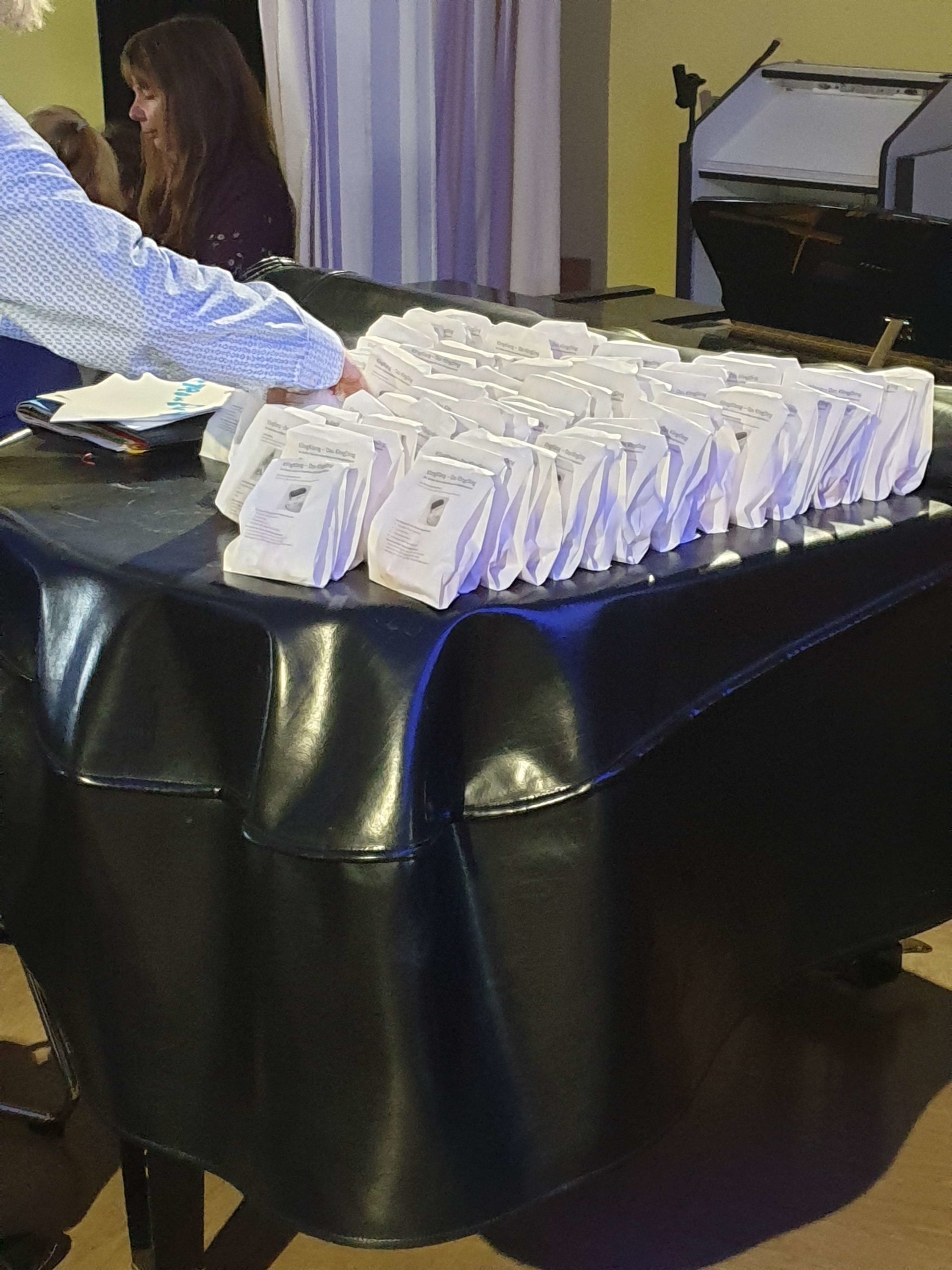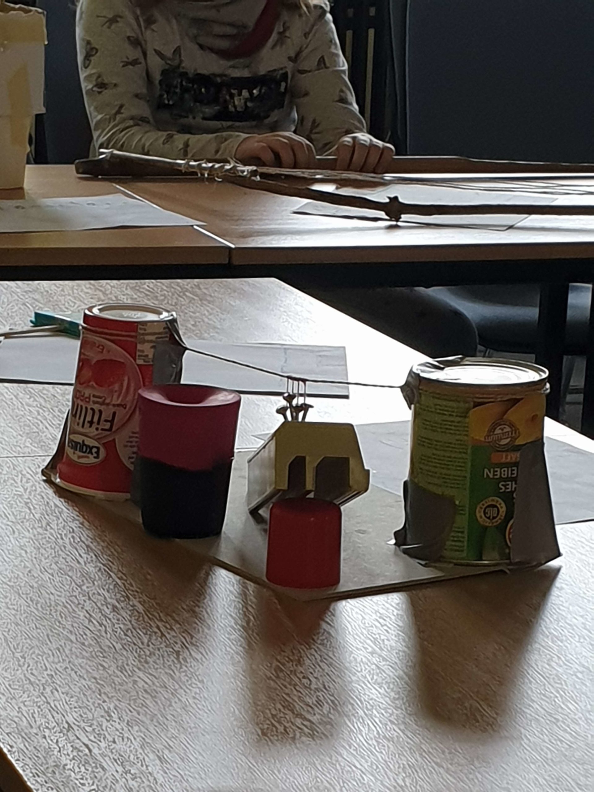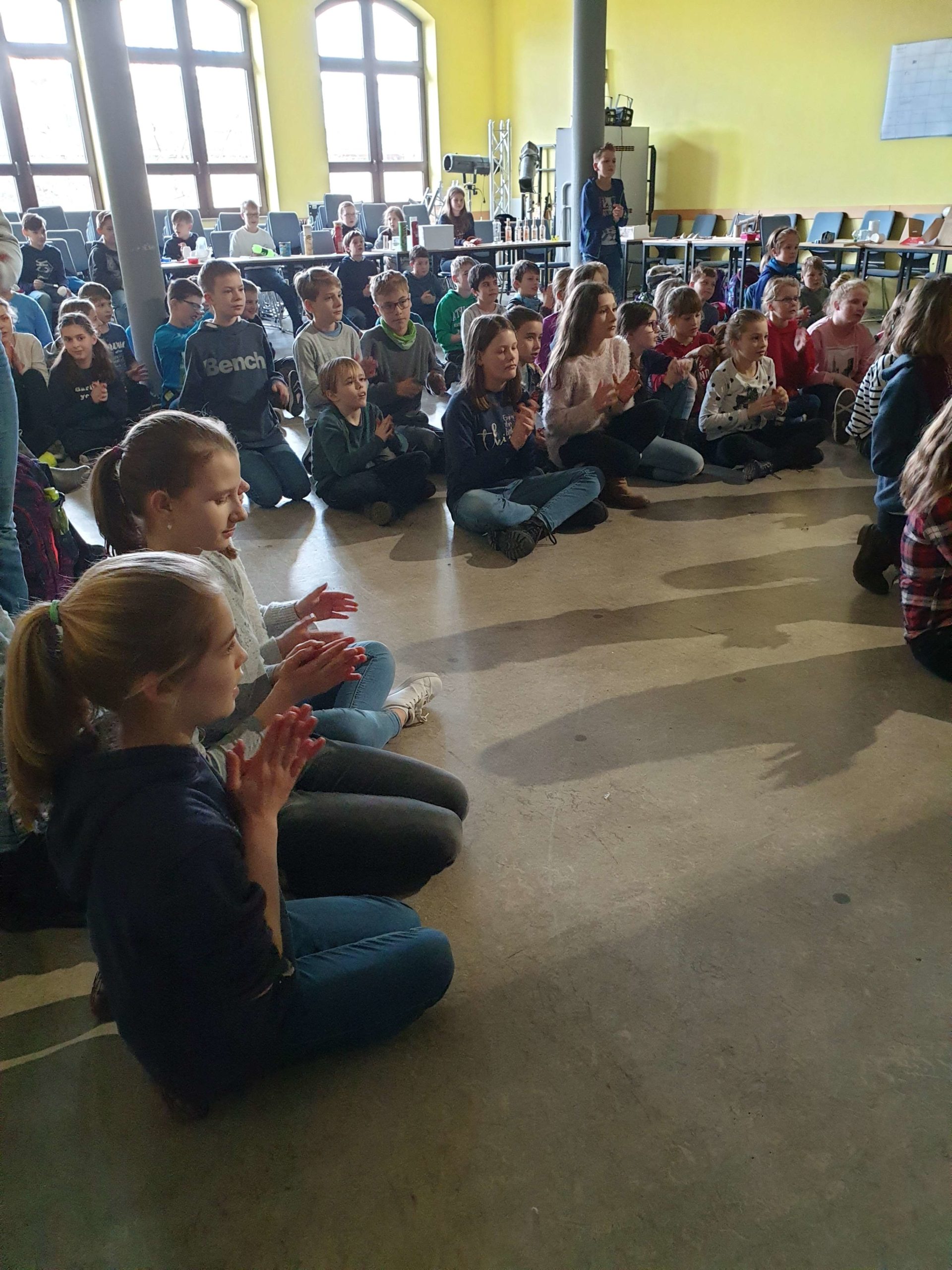 Wer hat schon einmal von der Schlag-Gitarre, dem Perlophon oder der Bob-Rassel gehört? Oder noch wichtiger: Wer kam schon in den Genuss, dem Klang eines dieser besonderen Musikinstrumenten zu lauschen? Am Donnerstag, 28. März gab es dazu reichlich Gelegenheit: Noch nie gehörte Töne und Klänge schallten aus der Aula durch das ganze Schulhaus. Mit einer festlichen Finissage ging das Klangskulpturen-Projekt KlingKlang – Das KlingDing der 5. Klassen mit der Präsentation der Arbeiten, Festreden, Liedern und einer großen Preisverleihung zu Ende. „Jedes Instrument ist einzigartig, es gibt es nur ein einziges Mal auf der Welt und erstmalig erklingt es hier und heute“, betonten Leonie, Sofia und Joshua in ihrer Begrüßung. Die Schülerinnen und Schüler der Jahrgangsstufen 5 der Edith-Stein-Schule Erfurt entwarfen unter dem Thema Musikinstrumente – Klangskulpturen im Musikunterricht mit Ekkehard Fellner ein eigenes kurioses Instrument als Klanginstrument. Zunächst wurde in Kleingruppen nach der besten Idee gesucht und eine Konstruktionszeichnung angefertigt. Dann wurden eifrig die Instrumente gebaut und der ideale Klang geprüft, bis jeder mit dem Ergebnis zufrieden war. Und dieses konnte sich sehen lassen: Ganze vierzig Instrumente wurden von den 100 Schülerinnen und Schülern angefertigt. Diese konnten nun besichtigt und ausprobiert werden, als Filmpremiere führte jede Gruppe ihre Klangskulptur in einem Video vor. Die besten Stücke wurden prämiert. Eine Jury von Schülerinnen und Schülerinnen aus der Oberstufe stellten sich der schweren Aufgabe aus den eingereichten Beiträgen die schönsten auszuwählen und zur Auszeichnung vorzuschlagen: Neben den Klassenpreisen wurde drei besonders gelungenen Werken der Große Preis der Jury für die beste Klangskulptur zuerkannt. Ding-Dang-Dong-Observator, Regenmacher, Glockengitarre, Klararassel … Der Kreativität bei der Namensgebung des eigenen Klangobjekts war keine Grenzen gesetzt und wurde mit dem Sonderpreis für den originellsten Namen gewürdigt. Alle kleinen und großen Baumeister haben am Ende eine Überraschungstüte mit nach Hause nehmen können.