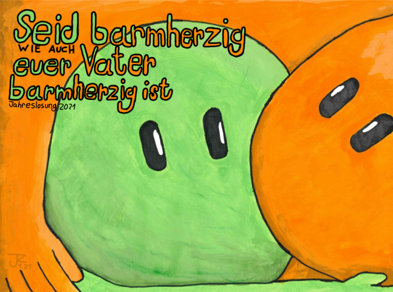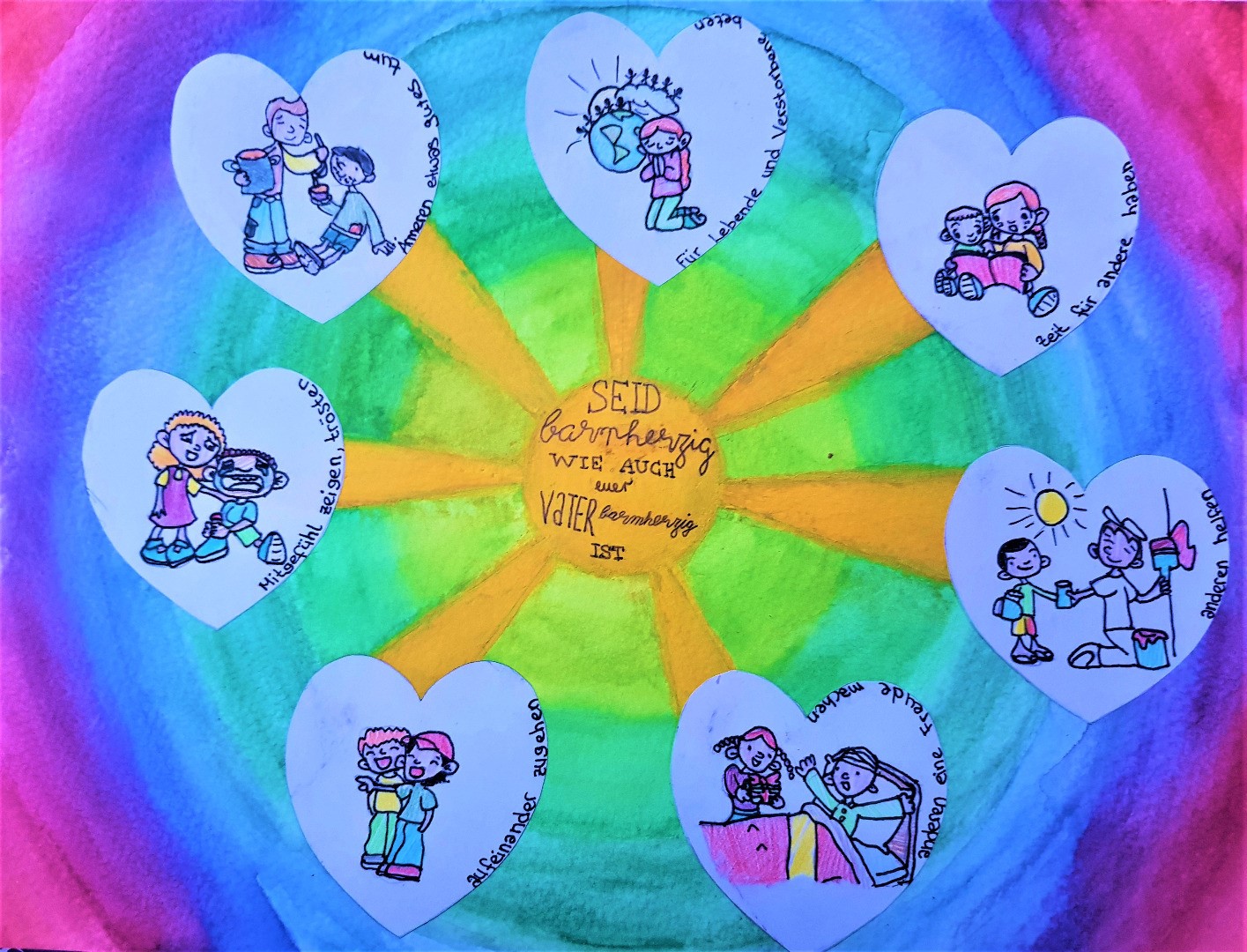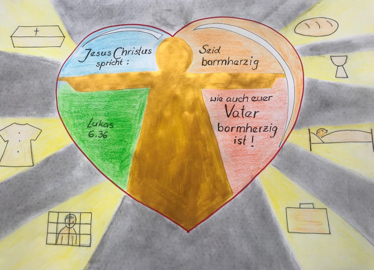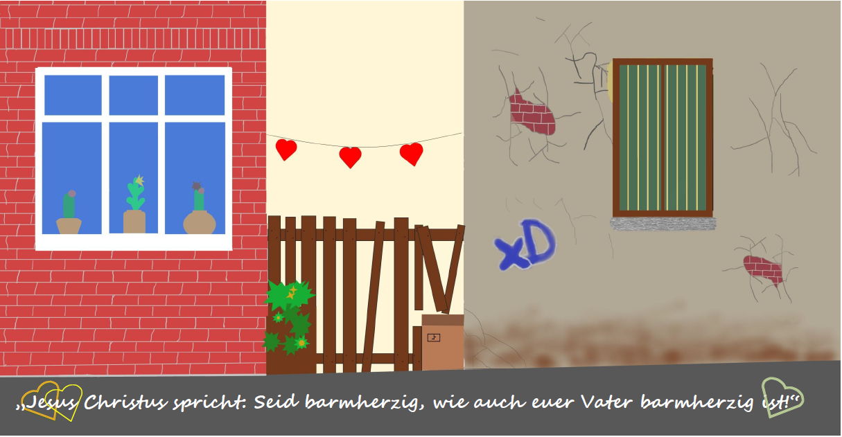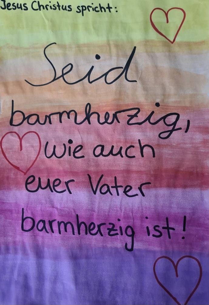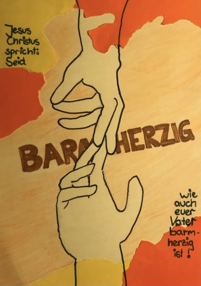Die SchülerInnen der Klassen 7 bis 10 haben sich Gedanken zur Jahreslosung 2021 gemacht. „Jesus Christus spricht: Seid barmherzig, wie auch euer Vater barmherzig ist! (Lukas 6,36)“ Dabei sind die verschiedensten künstlerischen Ideen umgesetzt worden.