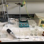 Nach kurzer Einführung in die Nanobiosystemtechnik durften auch wir ein kleines Experiment starten, basierend auf der Verbindung mehrerer Moleküle. (Aus Sicherheitsgründen schreibe ich genaue Materialien nicht dazu, denn daran wird zurzeit intensiv geforscht!)