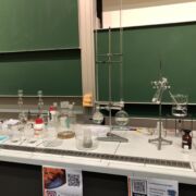 Nach einer Stunde Fahrt kamen wir erschöpft an der Universität an, wurden dort aber freundlich begrüßt und konnten eine Frühstückspause einlegen. Anschließend wurden wir von Herrn Dr. Täuscher begrüßt und in den ungefähren Ablauf des Tages eingeweiht. Danach kam Professor Scharff geradewegs aus einer Vorlesung und erklärte uns, was an der Universität im Fachbereich Chemie unterrichtet wird.