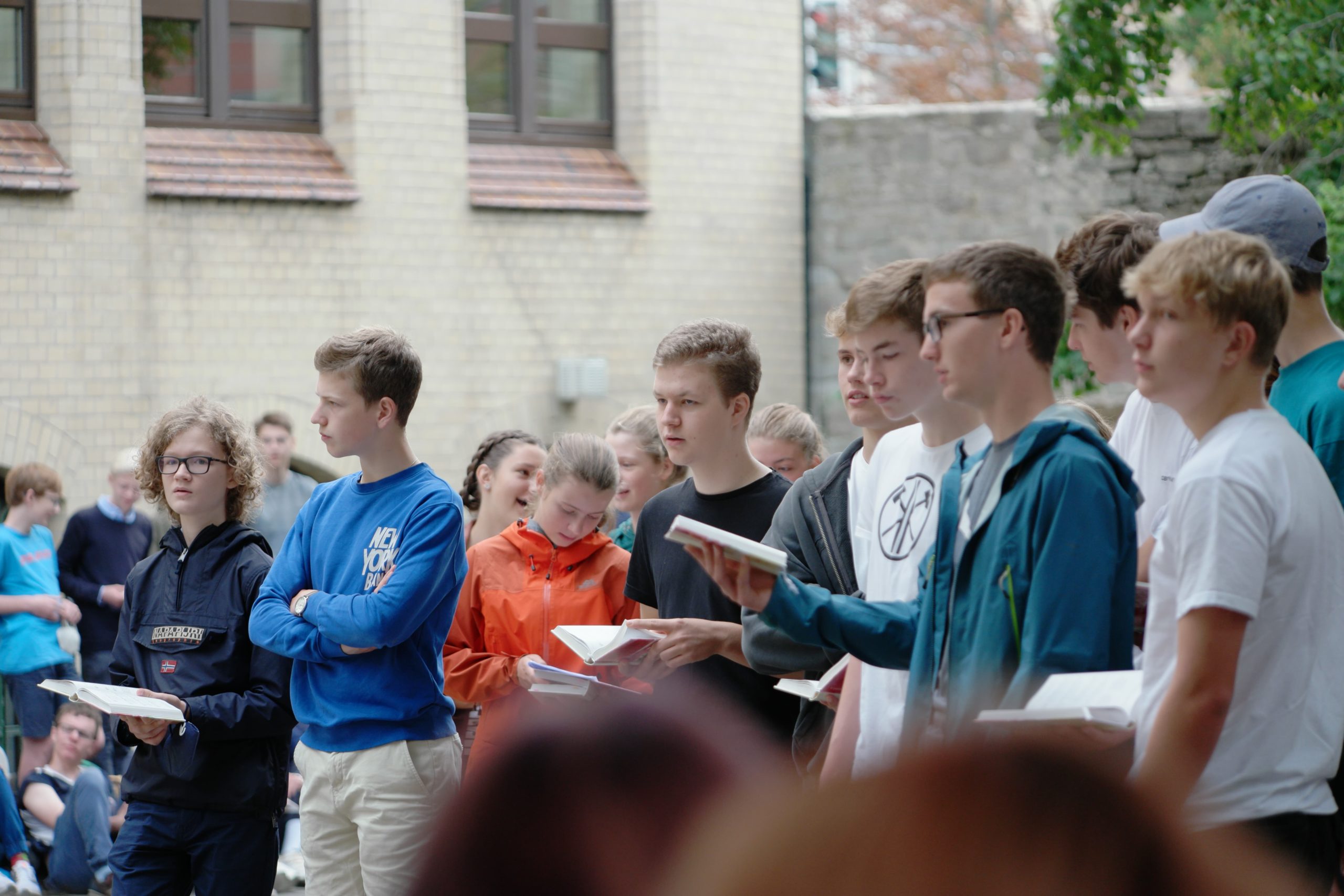 Am vergangenen Mittwoch zeigten sich auf dem Schulhof in den Morgenstunden, wie flexibel und mitreißend die ESS Gottesdienste feiern kann. Schon vorher war klar, dass es zwei Gottesdienste und nicht, wie üblich, einer sein würde. Wie im letzten Schuljahr fand er zudem auf dem Schulhof und nicht im Dom statt.