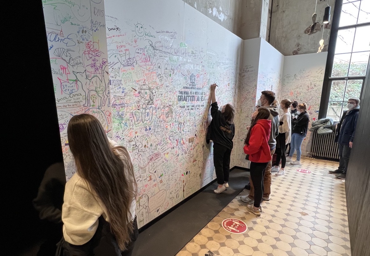 Sehr interessiert ließen sich die Schüler auf die Kunstwerke ein, die für Frieden, Gerechtigkeit und Freiheit stehen. Das Medium „Graffiti“ vermittelt auf eine direkte und leicht verständliche Art und Weise Wahrheiten und Probleme unserer modernen Gesellschaft: Umweltschutz, Flüchtlingspolitik, Massenmedien, Kommunikation,…