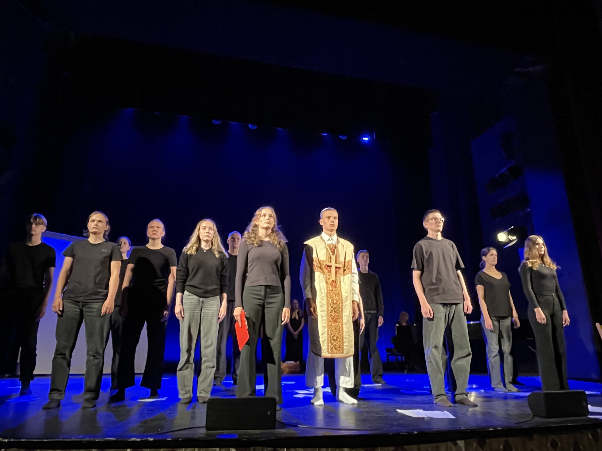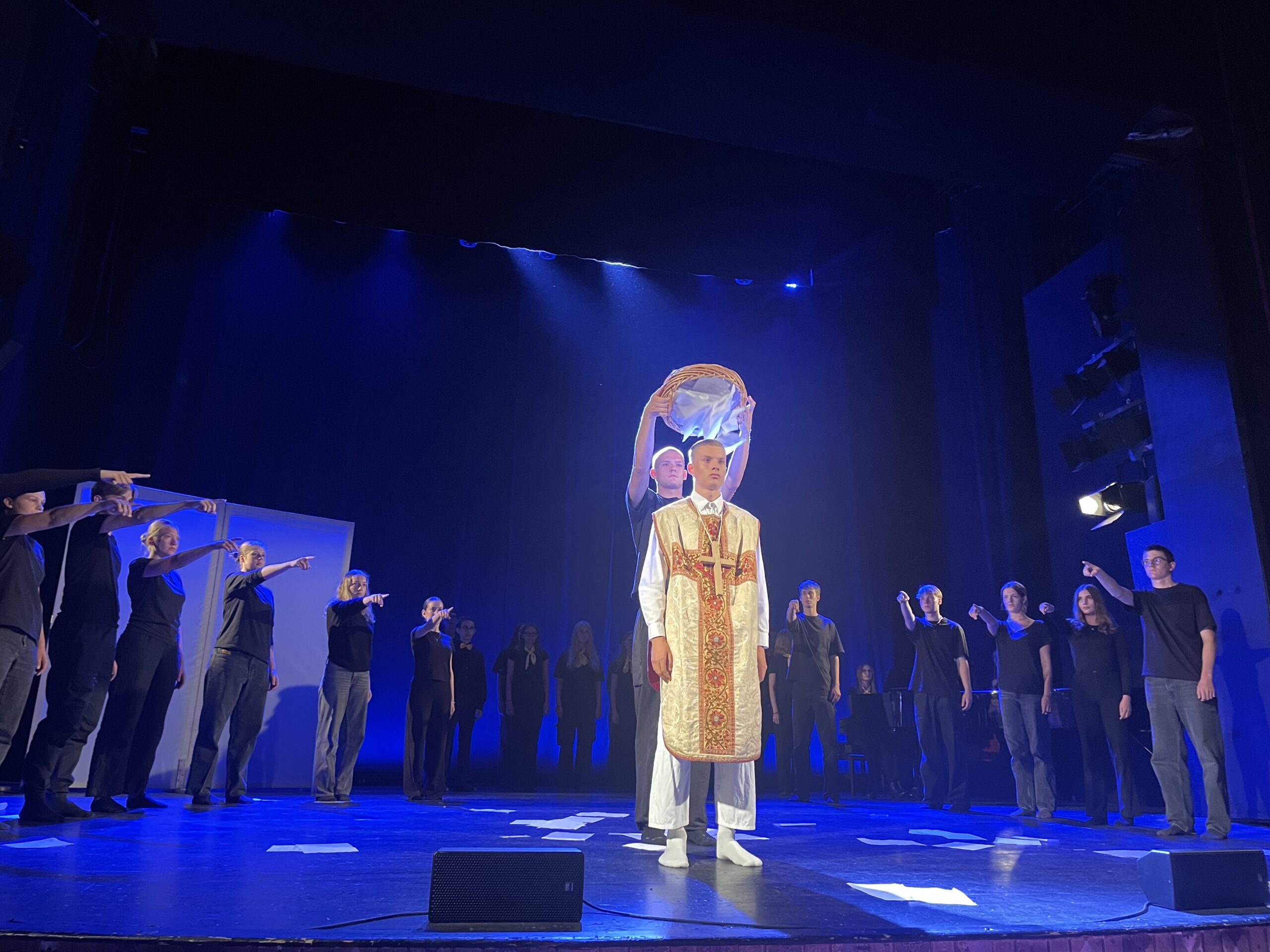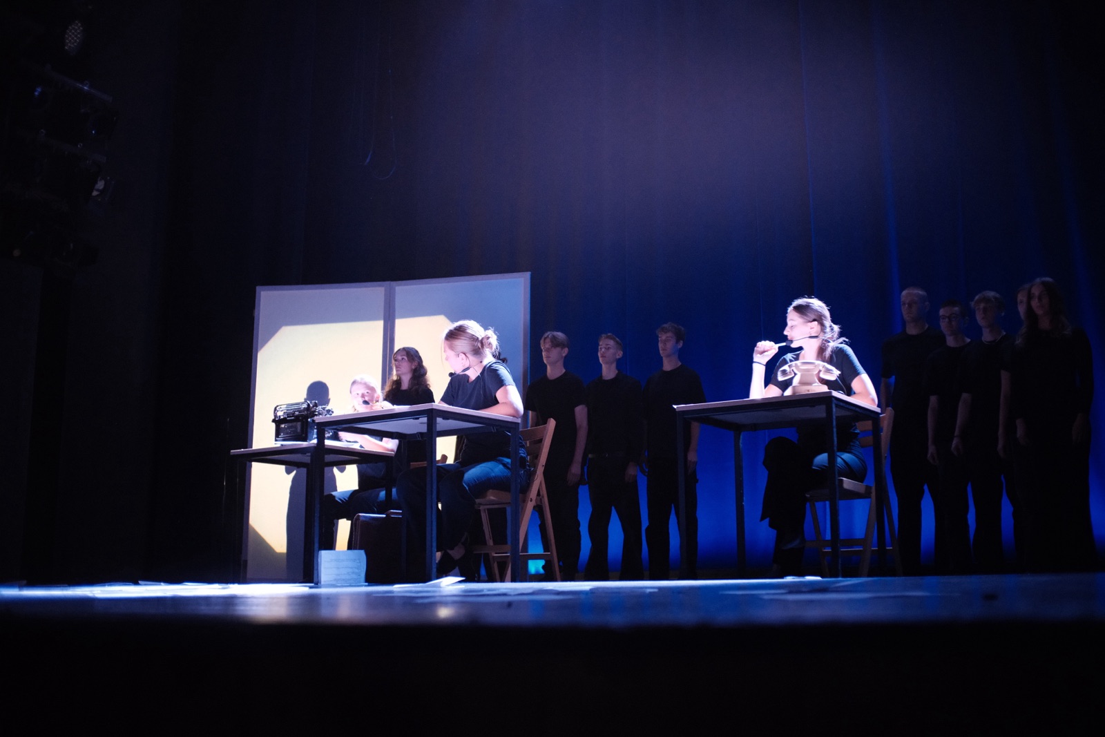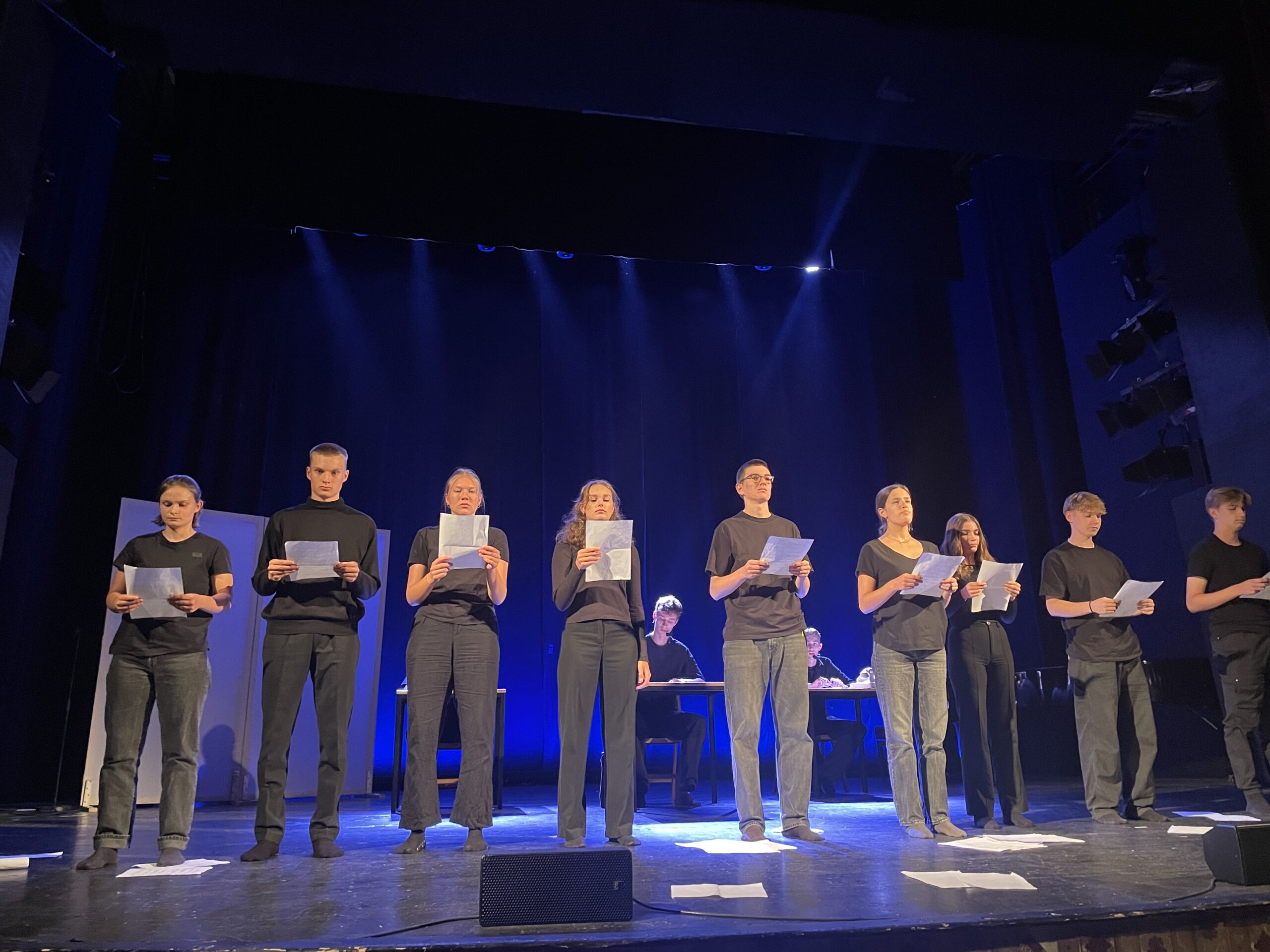 Volles Haus, stehende Ovationen und zahlreiche tränengefüllte Augen – das war das Resultat der gestrigen Aufführung von „Asking the Pope for Help“ in der Alten Oper Erfurt. Mit einer hoch emotionalen Gemeinschaftsleistung überzeugten die DuG Kurse, gemeinsam mit der DuG AG und dem Schulchor – in Leitung von Frau Reske, Herrn Dubiel und Frau Wollensak das Publikum und regten zu intensiven Gedanken und Gesprächen über unsere historische Schuld und Verantwortung an. Die Auseinandersetzung mit den Einzelschicksalen jüdischer Menschen während der Schoa im Rahmen des Theaterstücks, schaffte auch für die Schülerinnen und Schüler einen ganz anderen und weitaus emotionaleren Zugang zu einer Thematik, die im Unterricht oft nicht in dieser Intensität behandelt werden kann. Im an das Stück angeschlossenen Nachgespräch mit Jana Haack von der Uni Münster, welche an der Erforschung, Auswertung und Katalogisierung der Bittschriften an Pius XII. mitarbeitet, wurde noch einmal verdeutlicht, wie viel Potential in einer Verbindung aus wissenschaftlicher Arbeit und kreativer Auseinandersetzung mit selbiger steckt und wie wichtig es ist Themen wie diese in einen didaktischen Kontext zu setzen. Und so verließen alle Zuschauer und Beteiligten tief beeindruckt und voller intensiver Gedanken die Alte Oper. Wir danken allen die den gestrigen Abend ermöglicht haben, allem voran der katholischen Schulstiftung im Bistum Erfurt, welche die Finanzierung des Projekts übernommen hat.