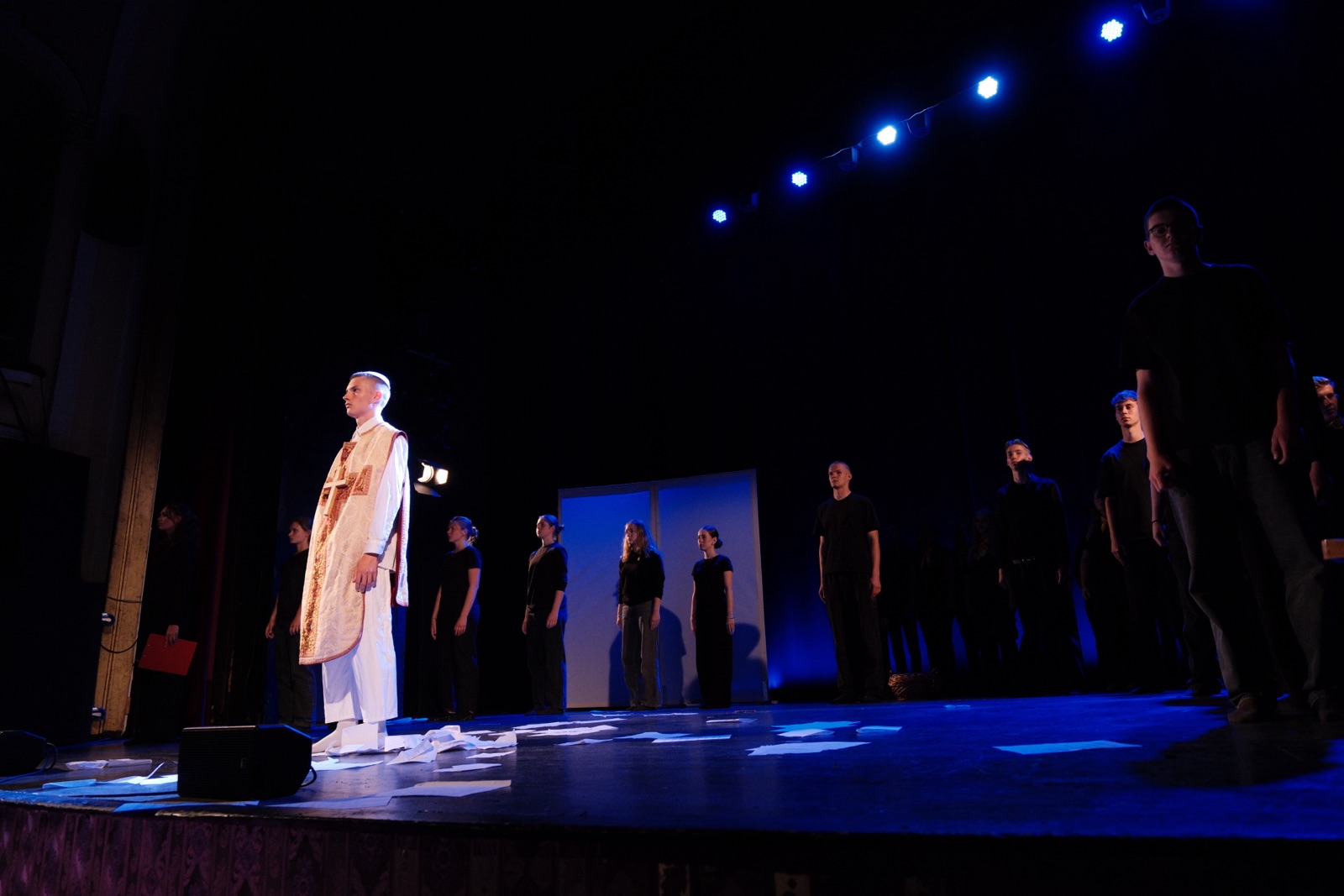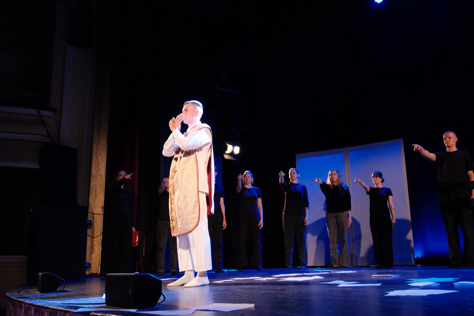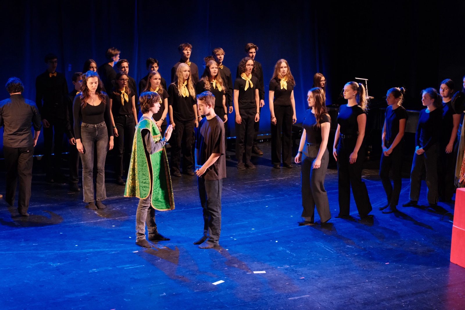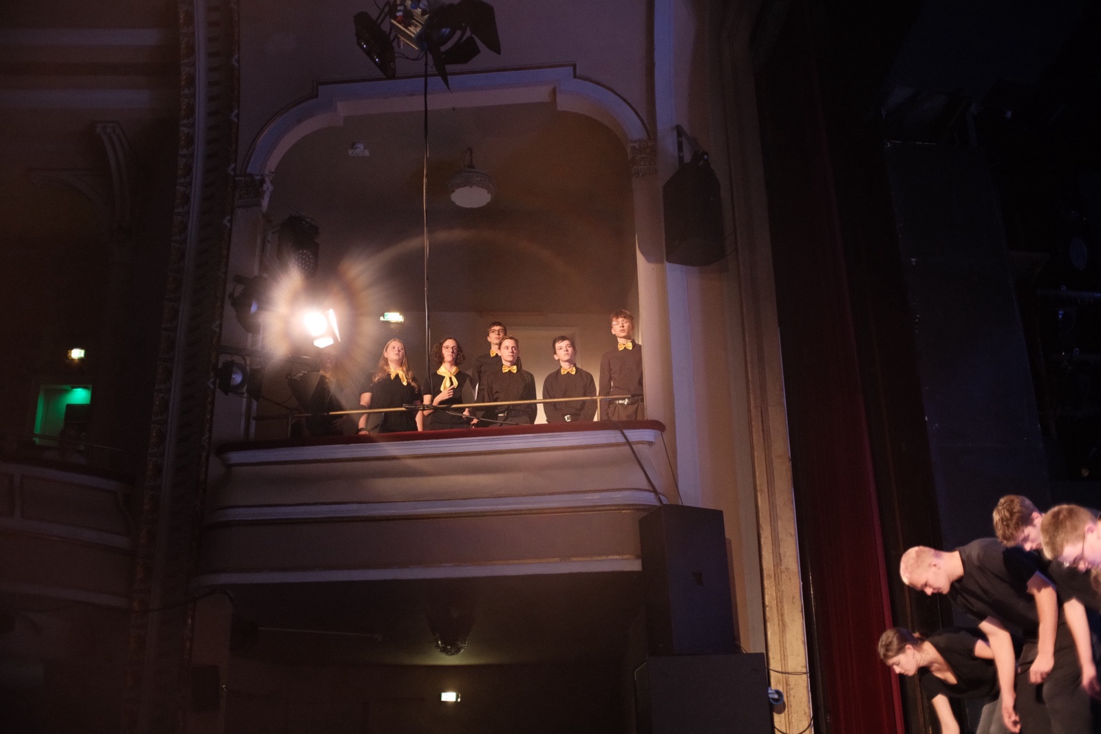 Volles Haus, stehende Ovationen und zahlreiche tränengefüllte Augen – das war das Resultat der gestrigen Aufführung von „Asking the Pope for Help“ in der Alten Oper Erfurt. Mit einer hoch emotionalen Gemeinschaftsleistung überzeugten die DuG Kurse, gemeinsam mit der DuG AG und dem Schulchor – in Leitung von Frau Reske, Herrn Dubiel und Frau Wollensak das Publikum und regten zu intensiven Gedanken und Gesprächen über unsere historische Schuld und Verantwortung an. Die Auseinandersetzung mit den Einzelschicksalen jüdischer Menschen während der Schoa im Rahmen des Theaterstücks, schaffte auch für die Schülerinnen und Schüler einen ganz anderen und weitaus emotionaleren Zugang zu einer Thematik, die im Unterricht oft nicht in dieser Intensität behandelt werden kann. Im an das Stück angeschlossenen Nachgespräch mit Jana Haack von der Uni Münster, welche an der Erforschung, Auswertung und Katalogisierung der Bittschriften an Pius XII. mitarbeitet, wurde noch einmal verdeutlicht, wie viel Potential in einer Verbindung aus wissenschaftlicher Arbeit und kreativer Auseinandersetzung mit selbiger steckt und wie wichtig es ist Themen wie diese in einen didaktischen Kontext zu setzen. Und so verließen alle Zuschauer und Beteiligten tief beeindruckt und voller intensiver Gedanken die Alte Oper. Wir danken allen die den gestrigen Abend ermöglicht haben, allem voran der katholischen Schulstiftung im Bistum Erfurt, welche die Finanzierung des Projekts übernommen hat.