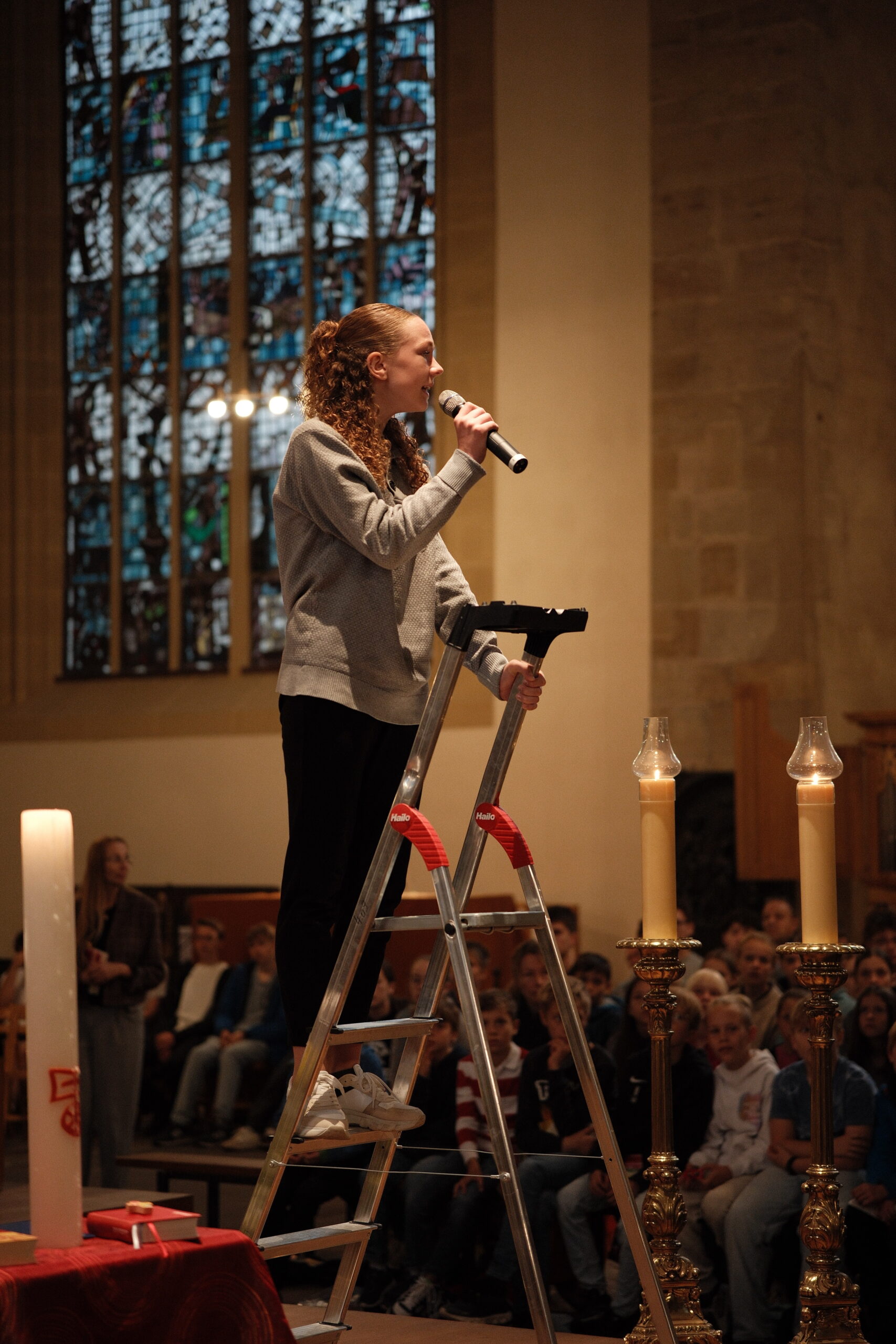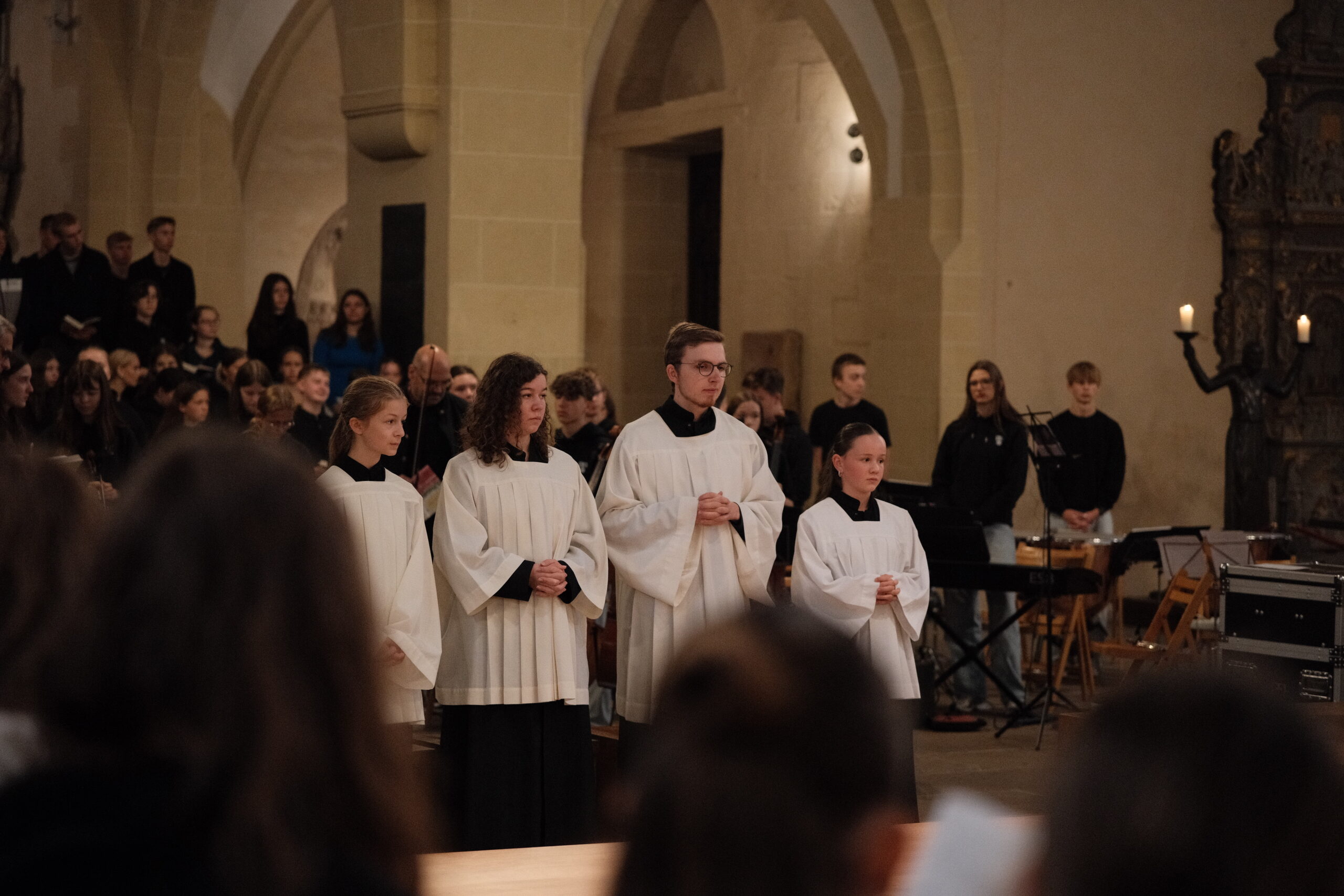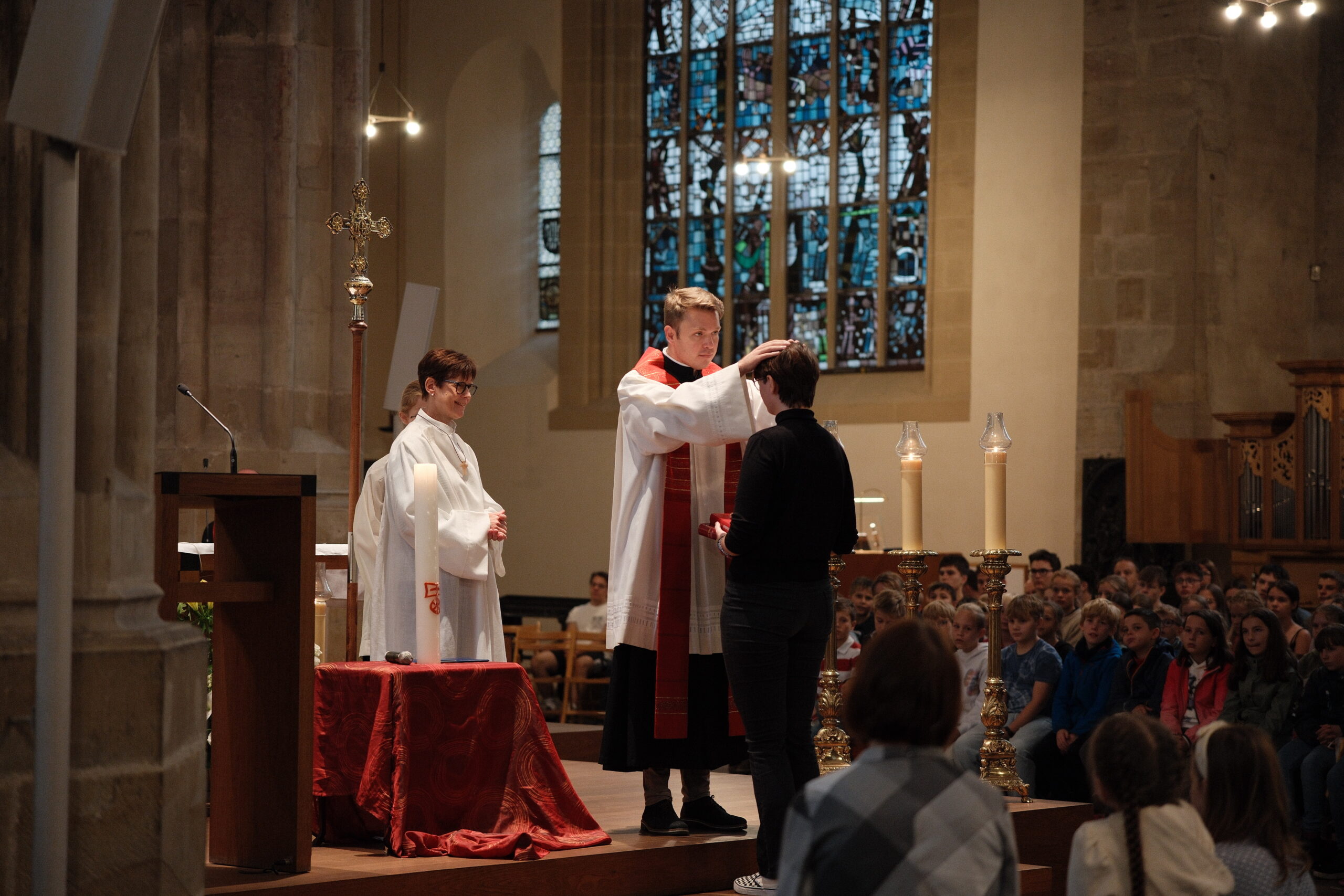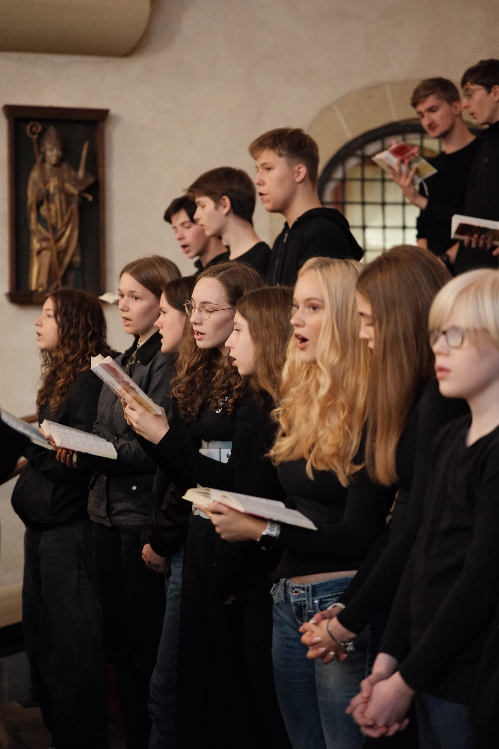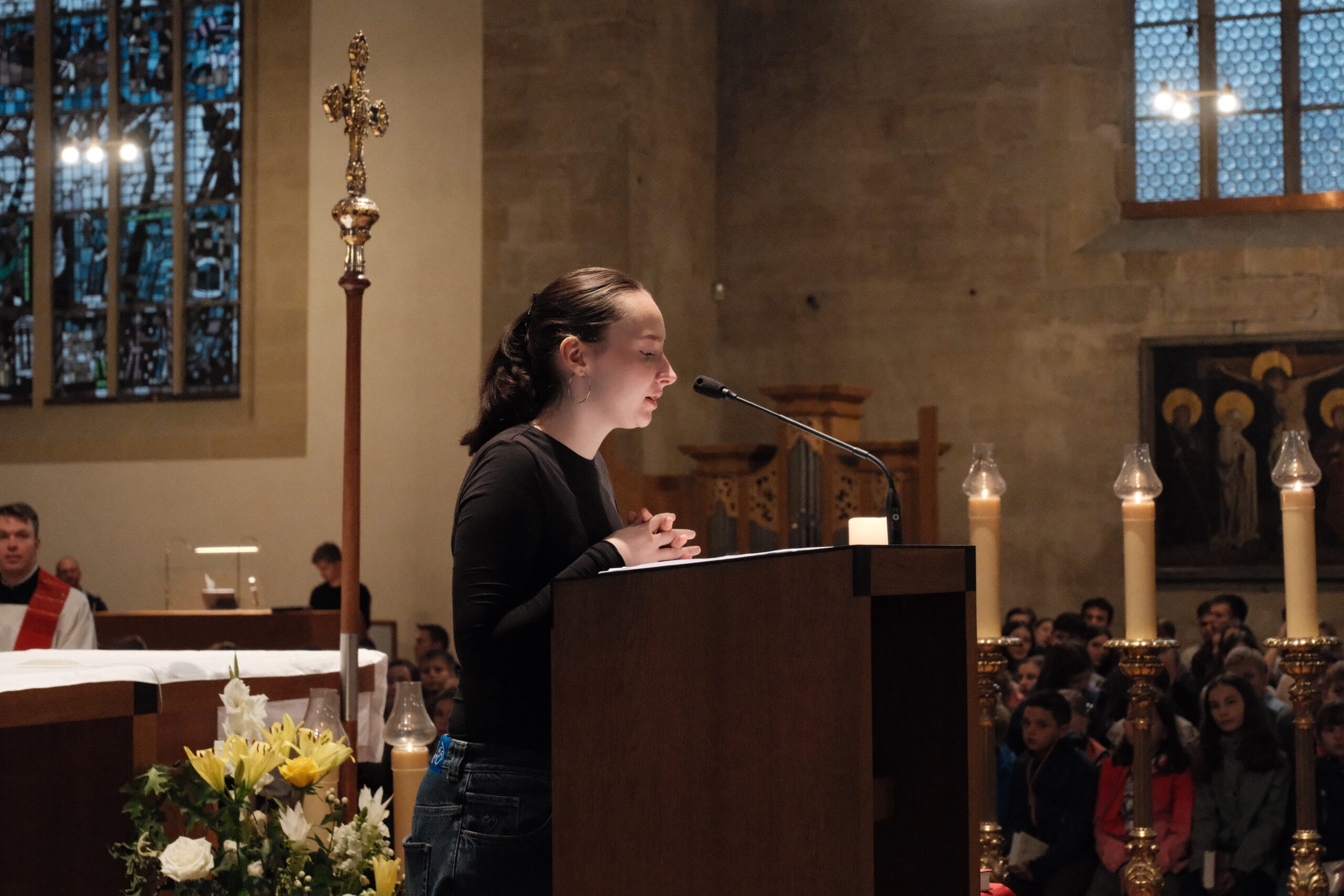 Trotz erneut widriger Wetterbedingungen fand, zum diesjährigen Patrozinium von Edith Stein, im Dom der traditionelle Gottesdienst mit der gesamten Schulgemeinschaft statt. Unter der Leitung von Generalvikar Dominik Trost, sowie unserer Schulseelsorgerin Christiane Henning-Schönemann wurde unserer Namenspatronin gedacht, wobei Passagen ihres Lebens und Wirkens vorgelesen oder durch die DuG AG vorgespielt wurden. Schüler- und Lehrerchor sowie Orchester sorgten für die passende musikalische Untermalung des Gottesdienstes.